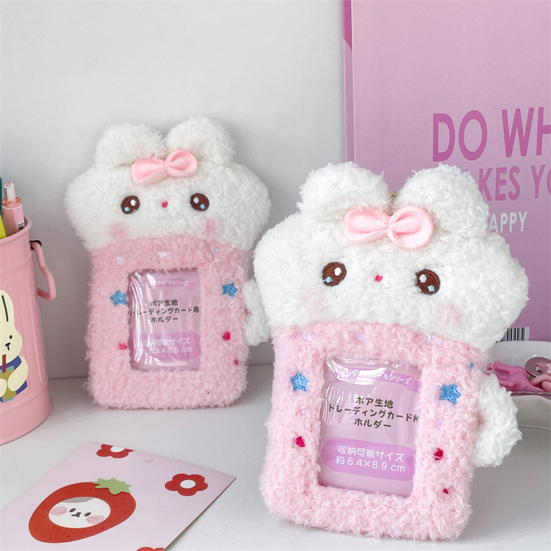 可爱毛绒茶杯兔卡套追星卡片套爱豆小卡保护套学生饭卡校园卡卡包
