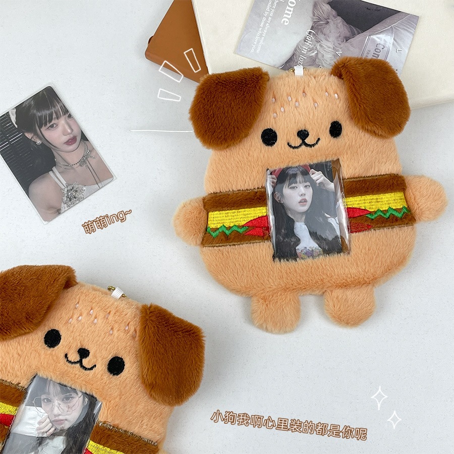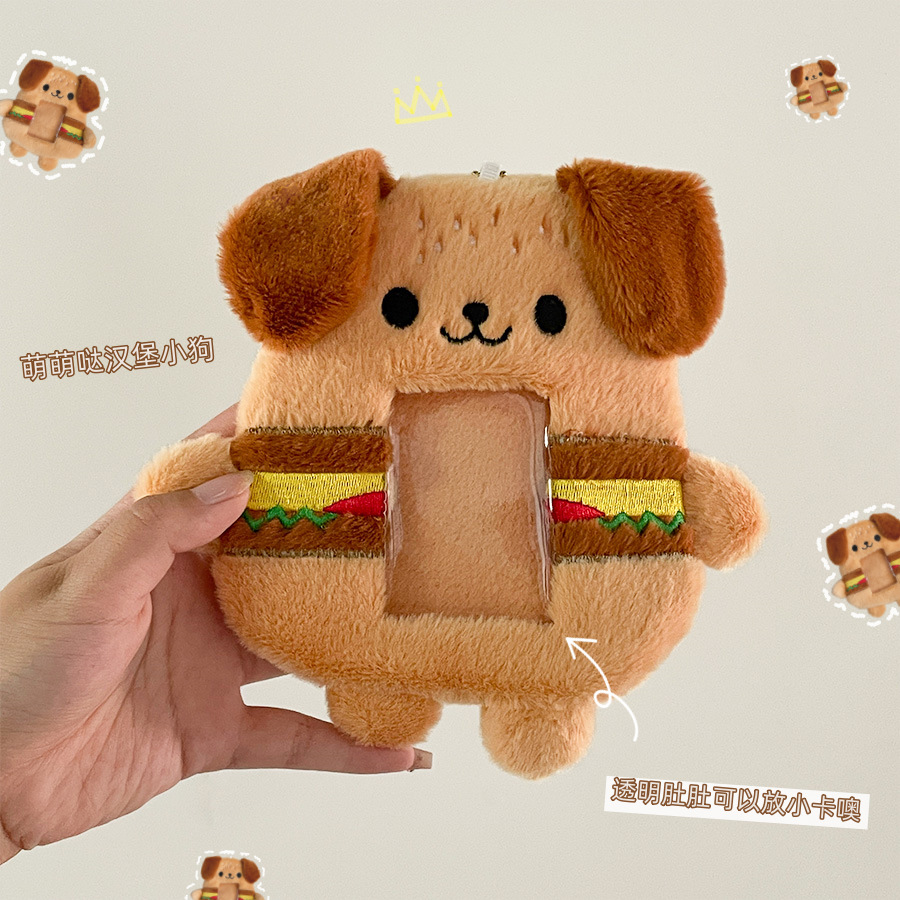 可爱风汉堡小狗毛绒卡套玩偶学生校园卡饭卡公交卡收纳保护套