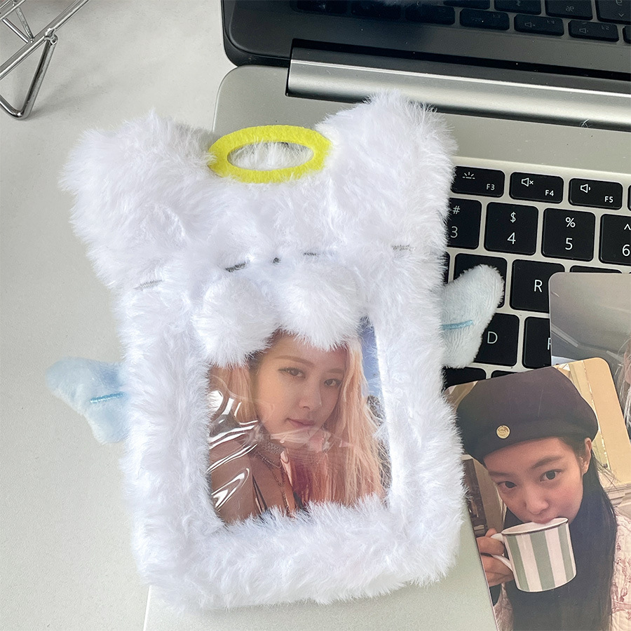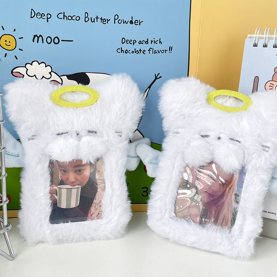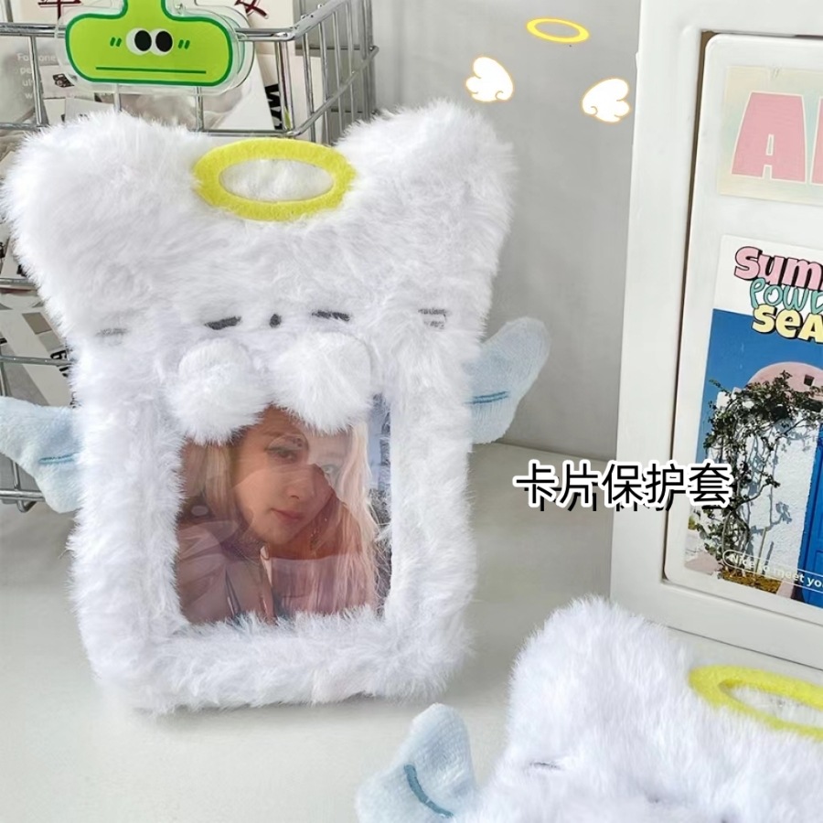 甜美风 天使毛绒卡套3寸证件卡套可爱动物校园饭卡爱豆保护套挂件