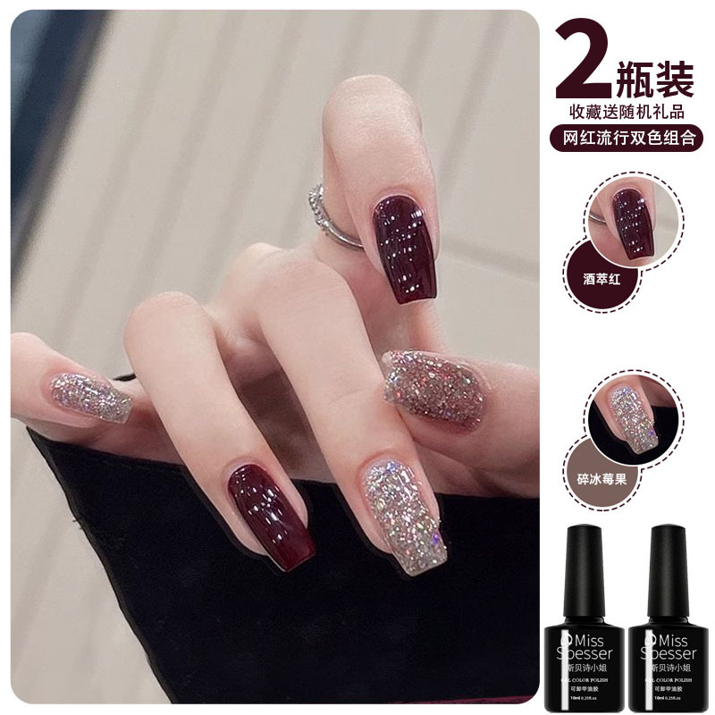 指甲油胶新款显白红色车厘子爆闪亮片双色套装