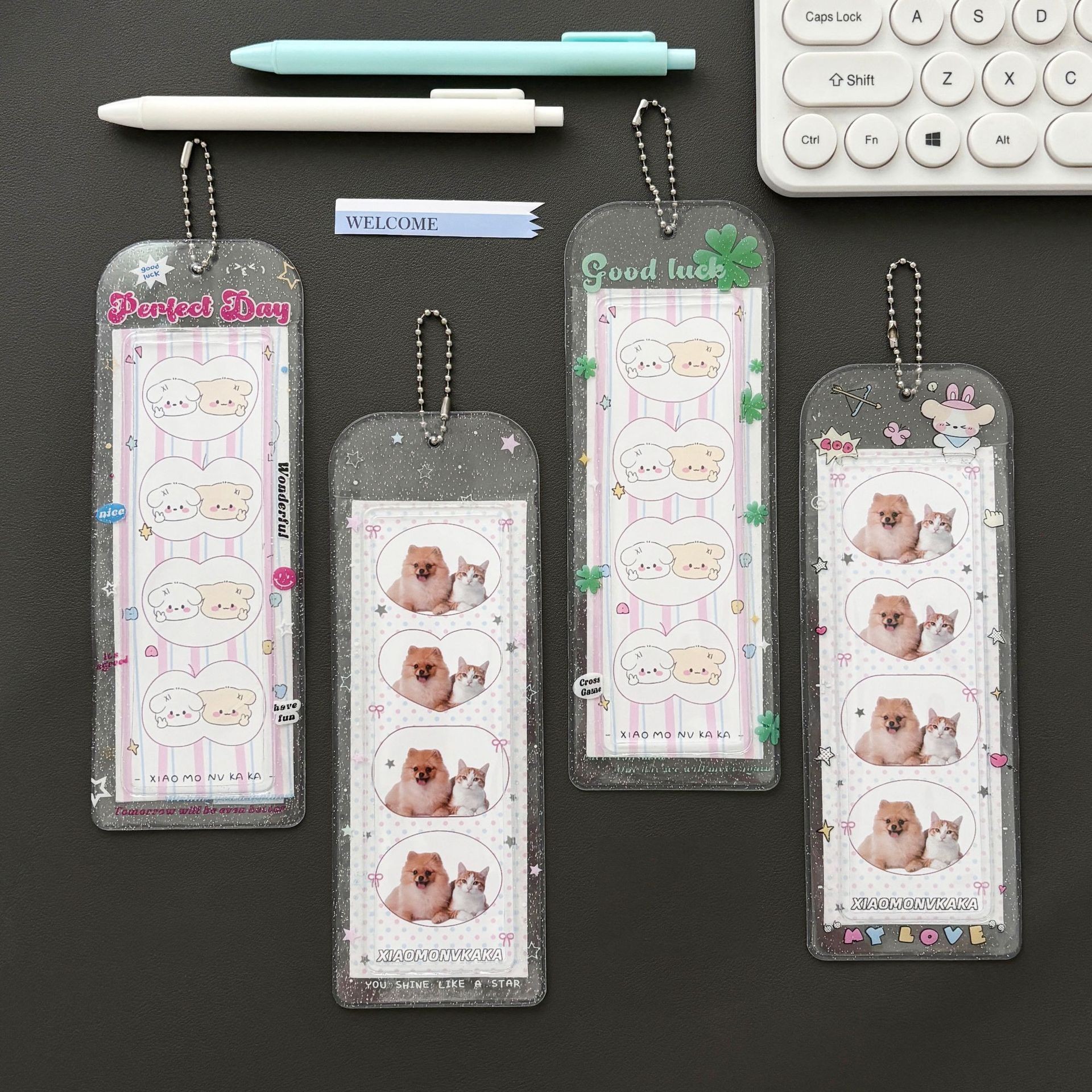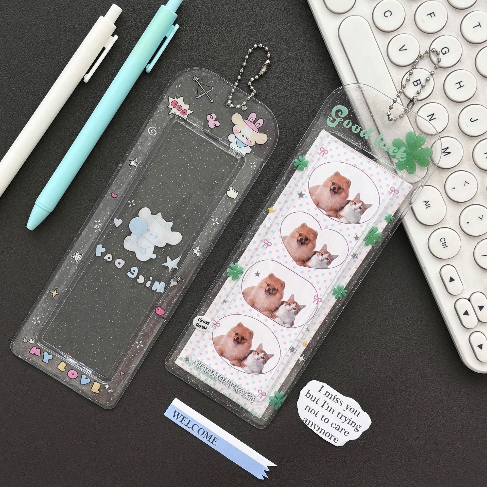 原创ins透明闪粉四叶草卡通人生四格卡套爱豆小卡卡套收纳卡套