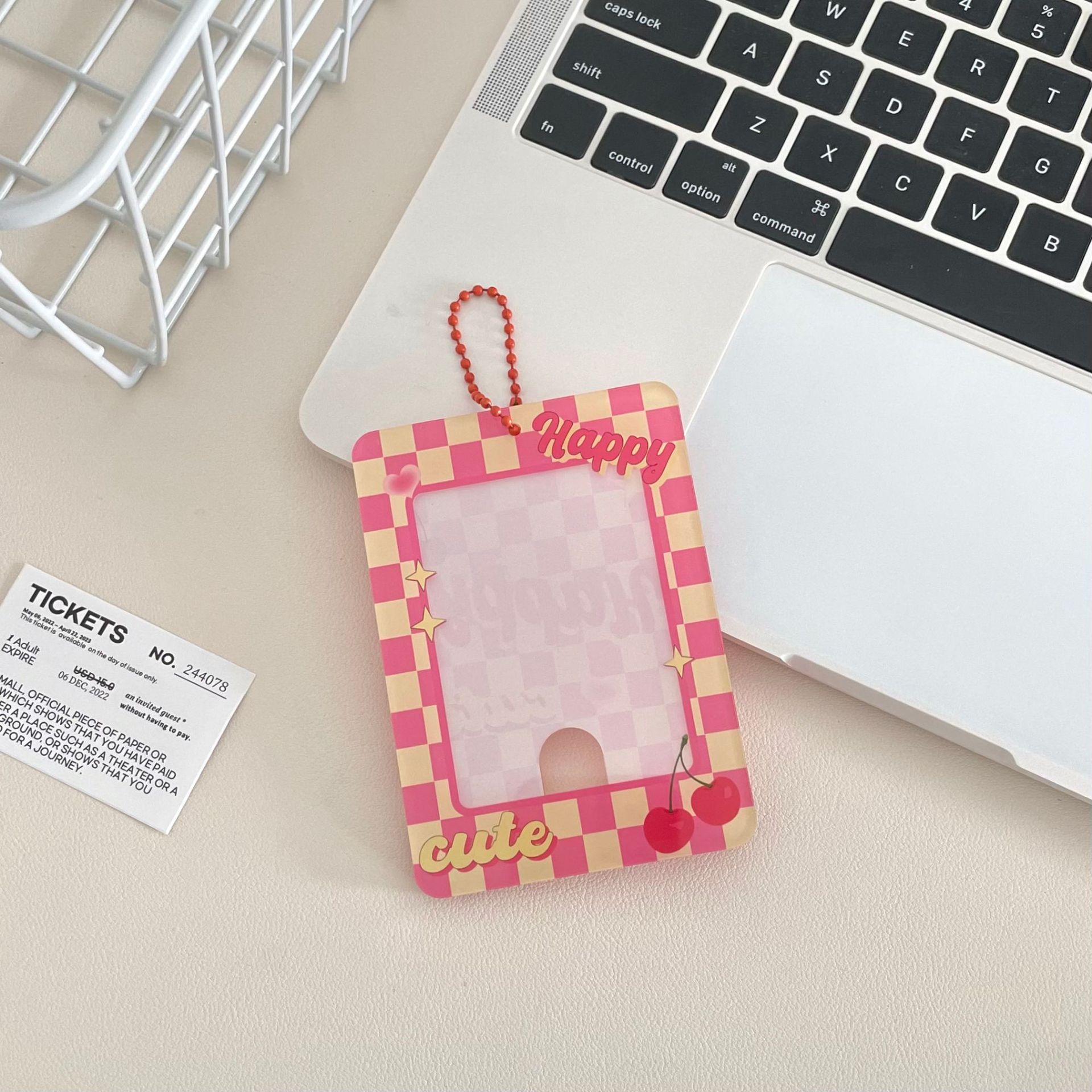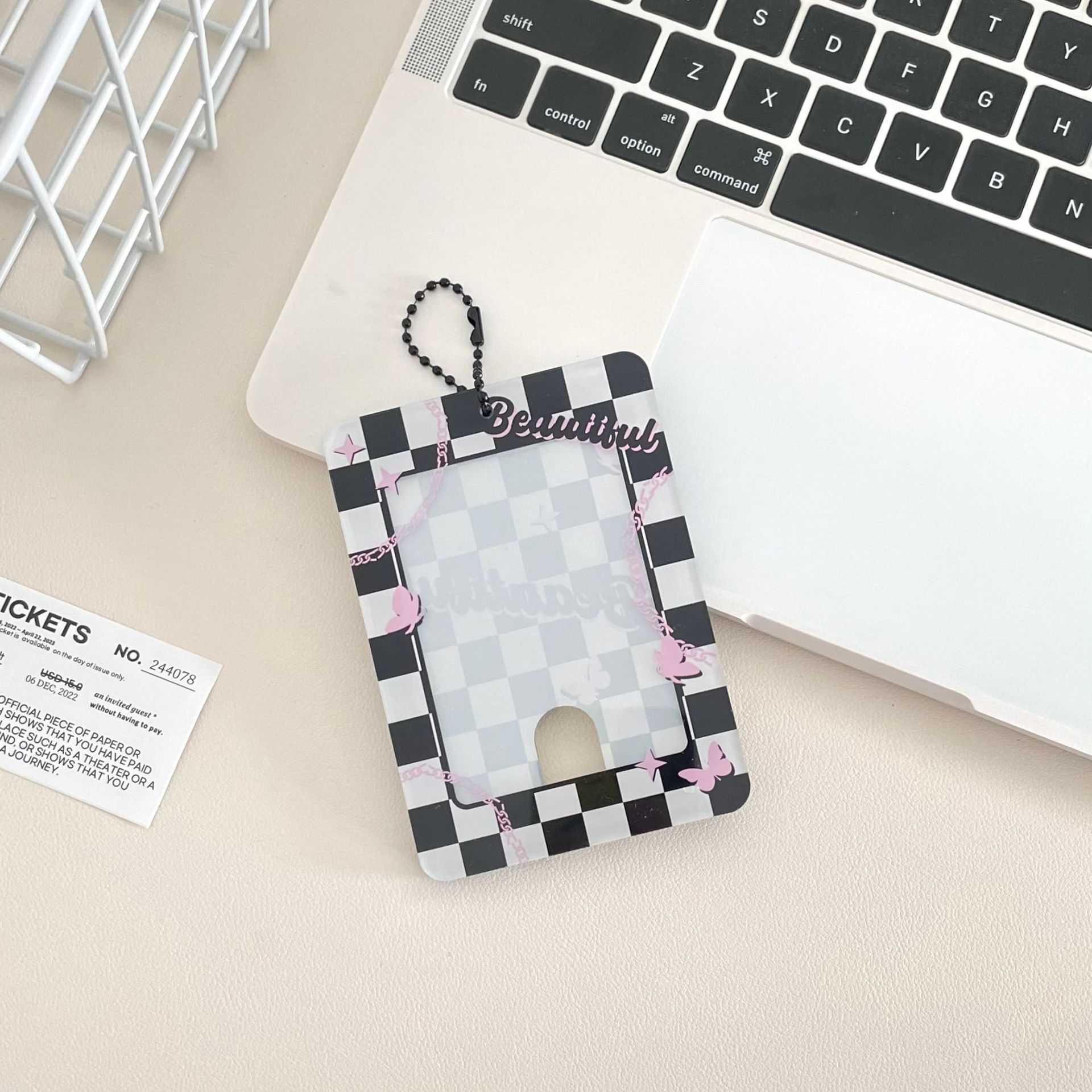 新款ins风棋盘格卡套亚克力硬卡套面卡套小卡保护套