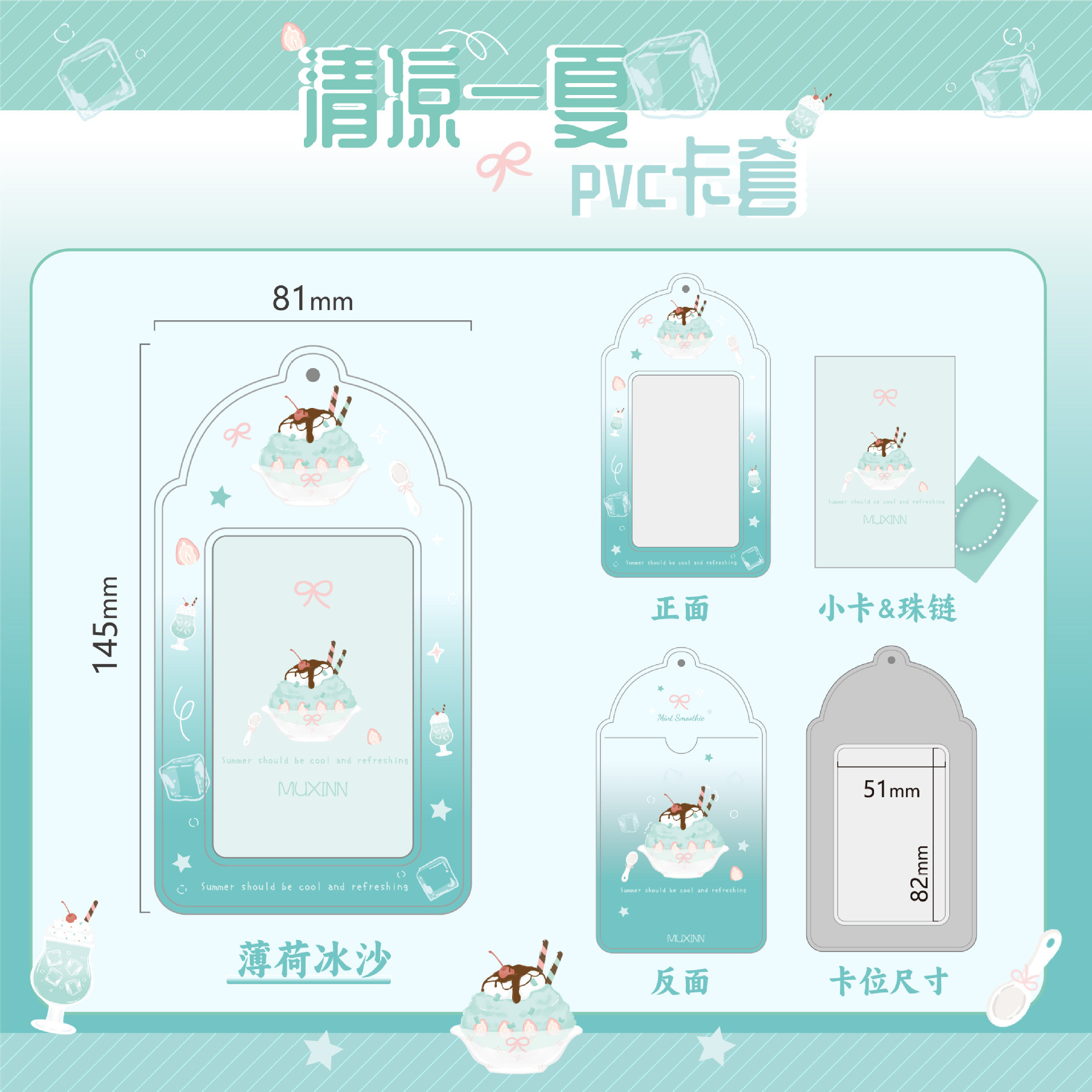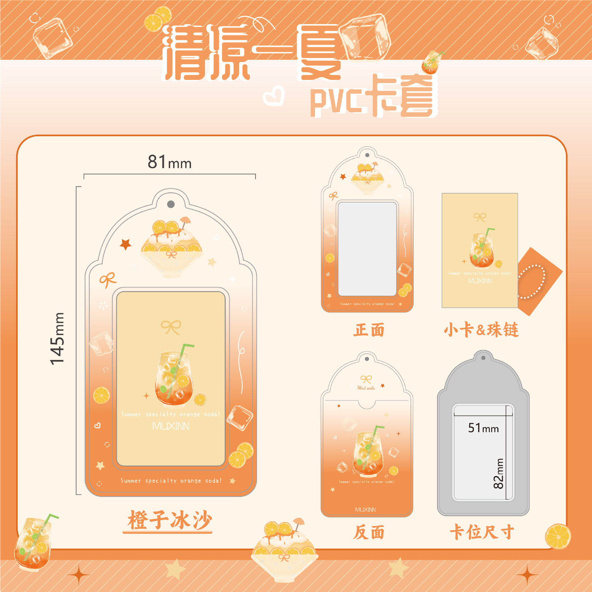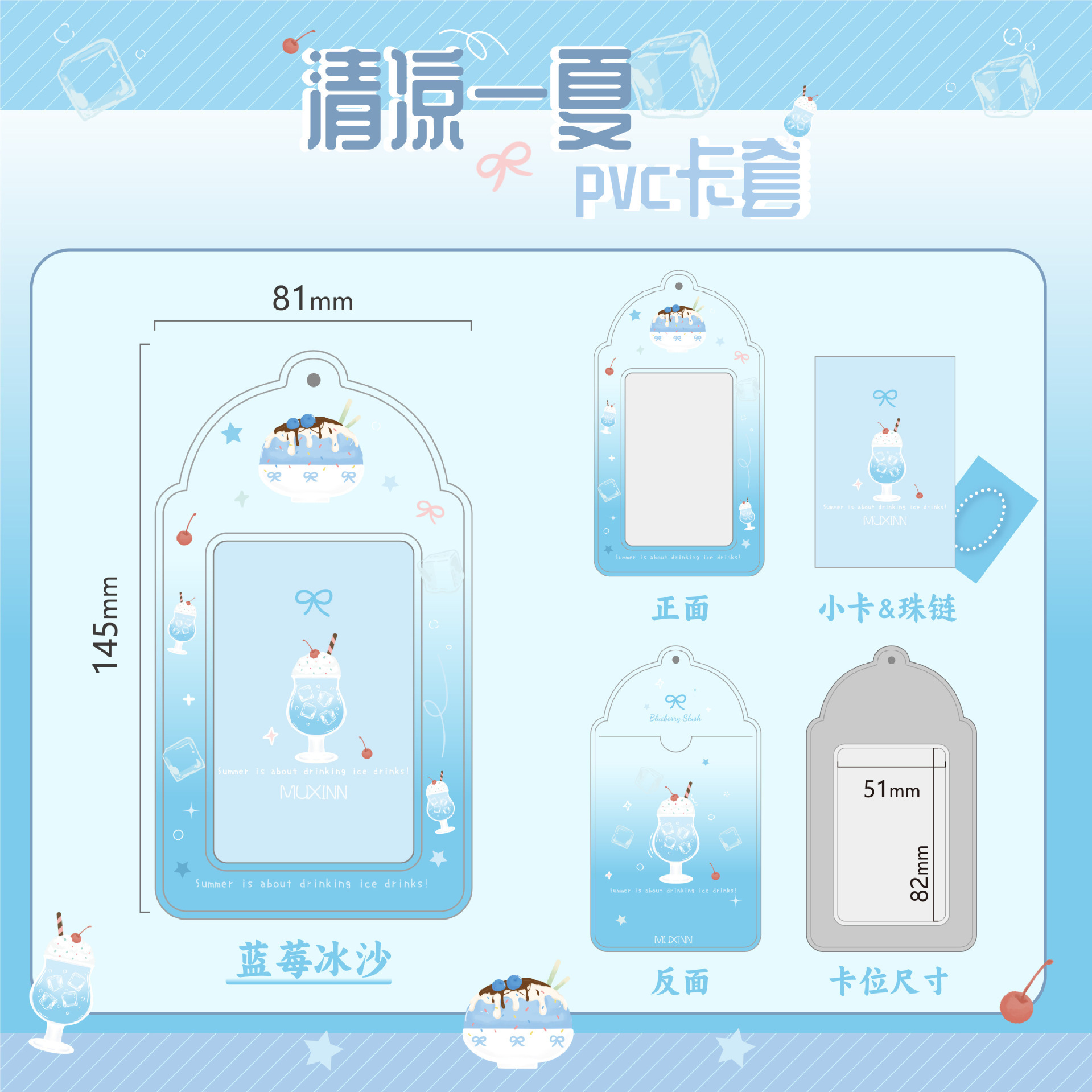 Muxinn清凉一夏pvc渐变卡套公交卡套饭卡3寸小卡追星可放硬卡套包