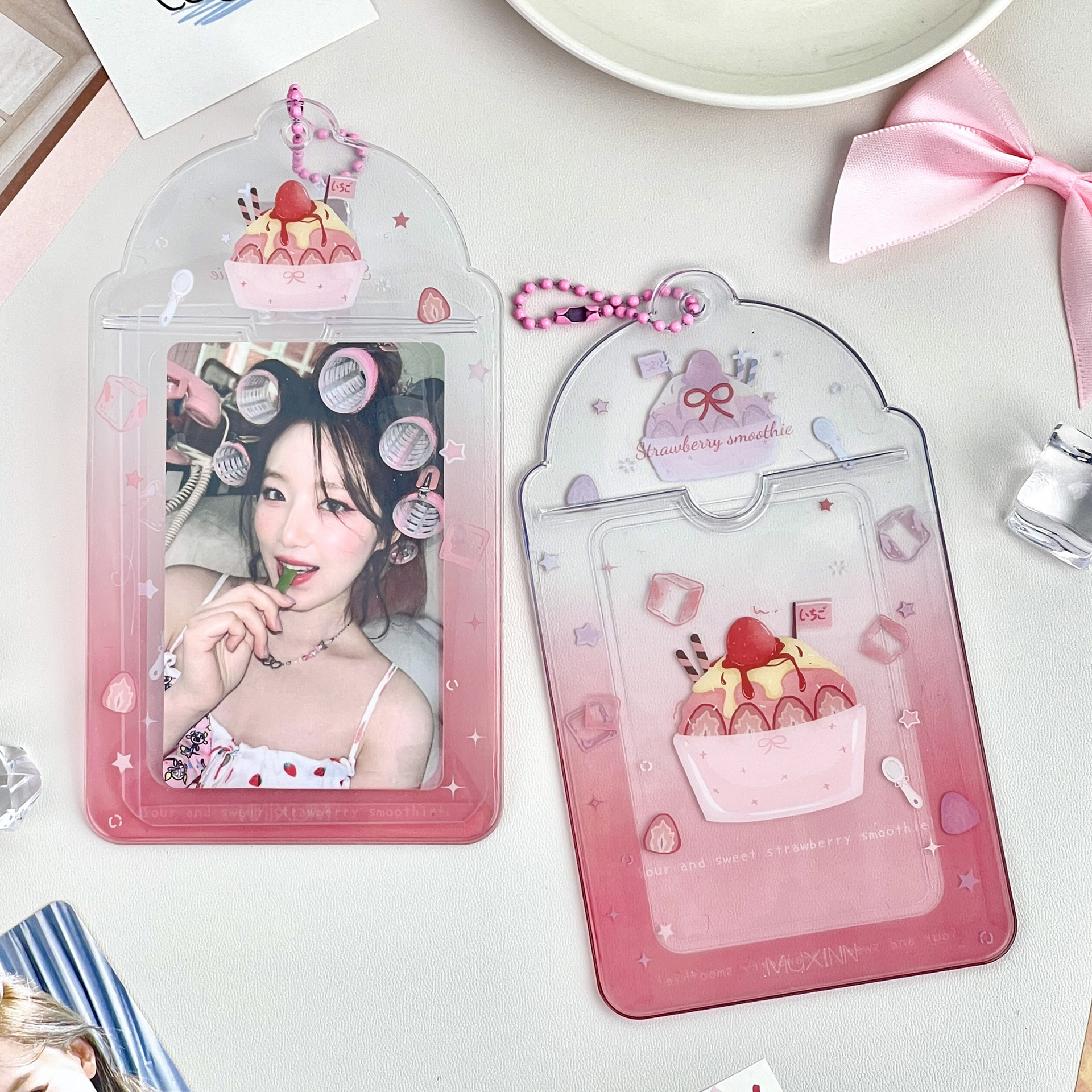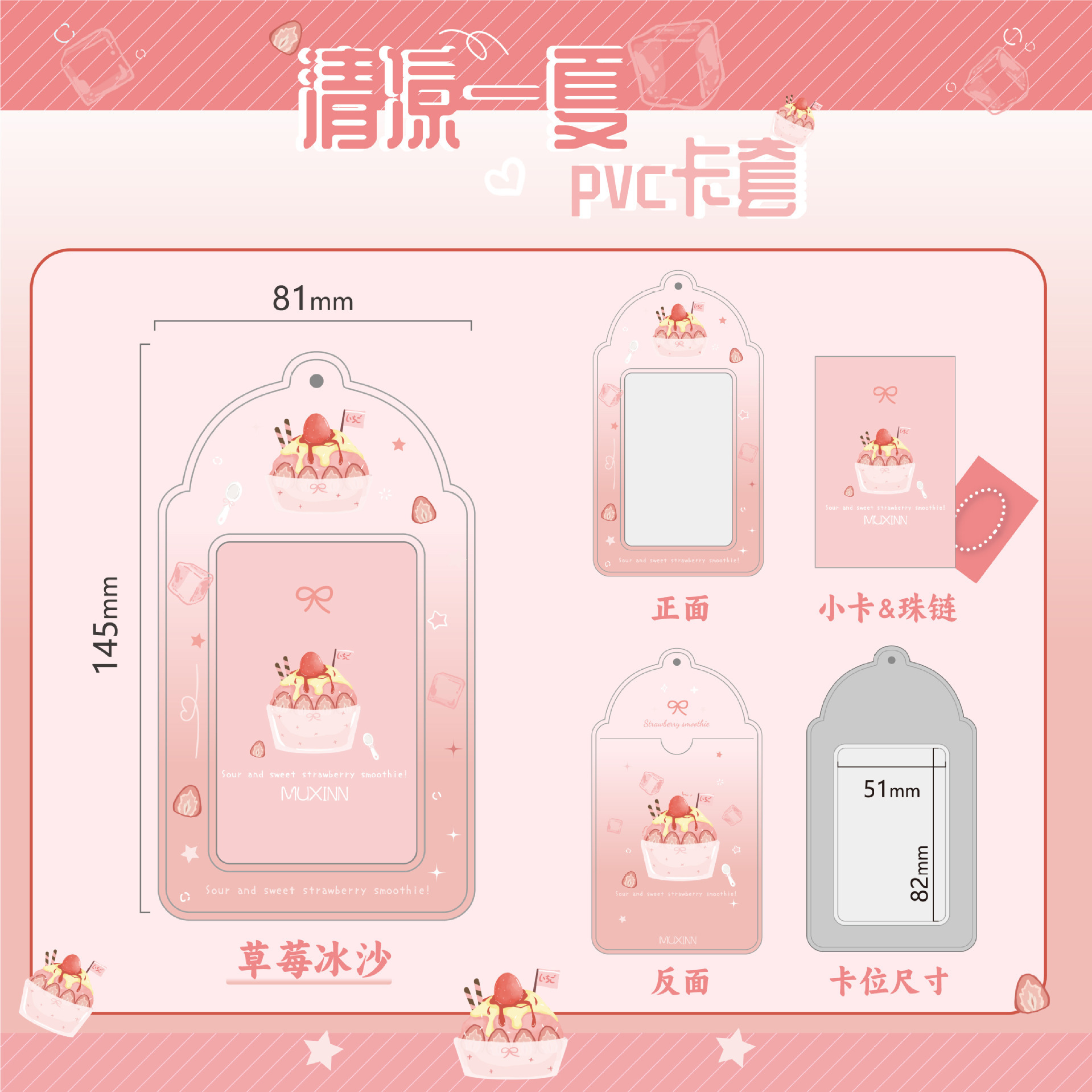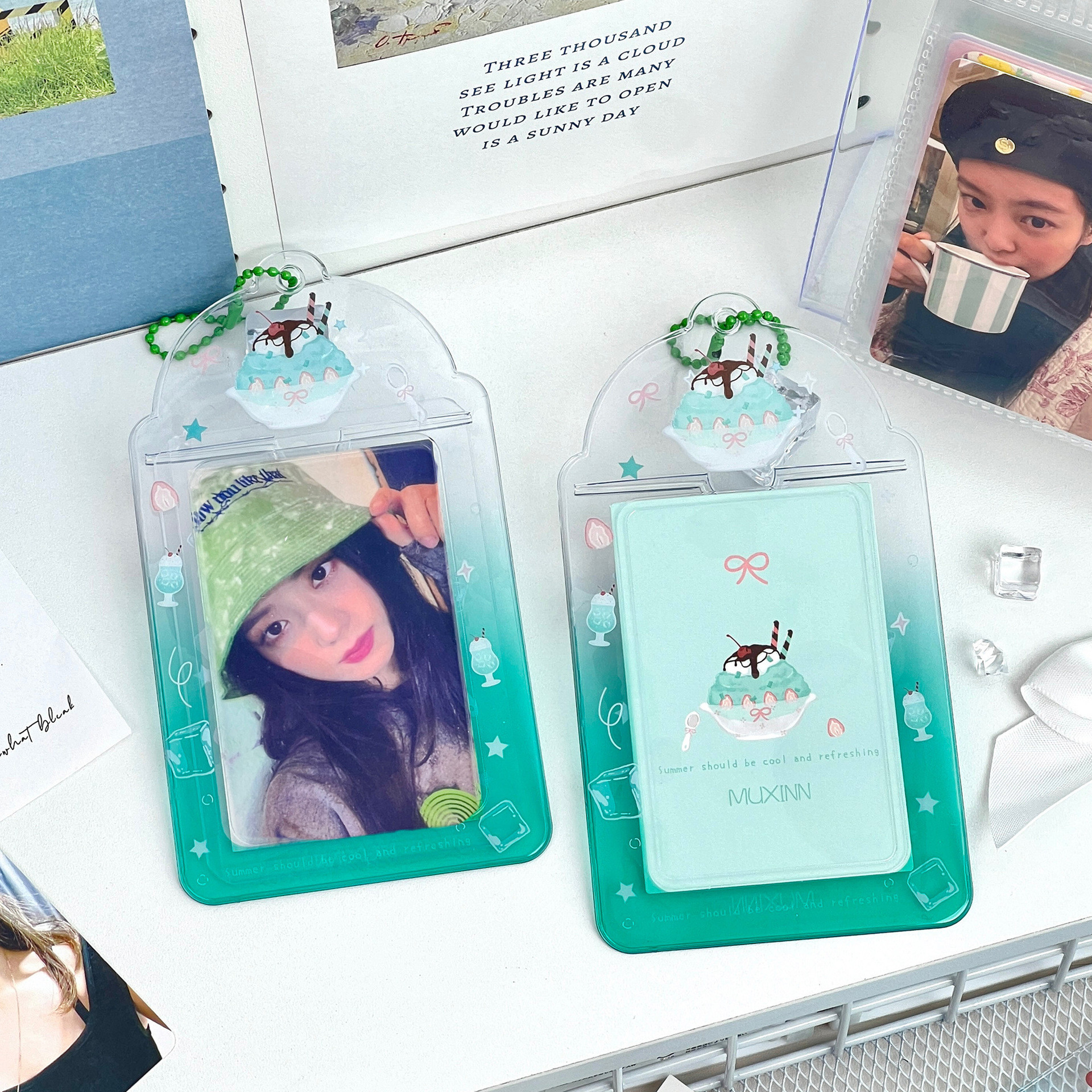 Muxinn清凉一夏pvc渐变卡套公交卡套饭卡3寸小卡追星可放硬卡套包
