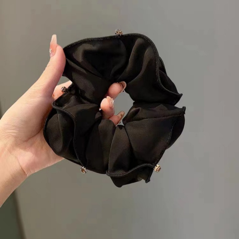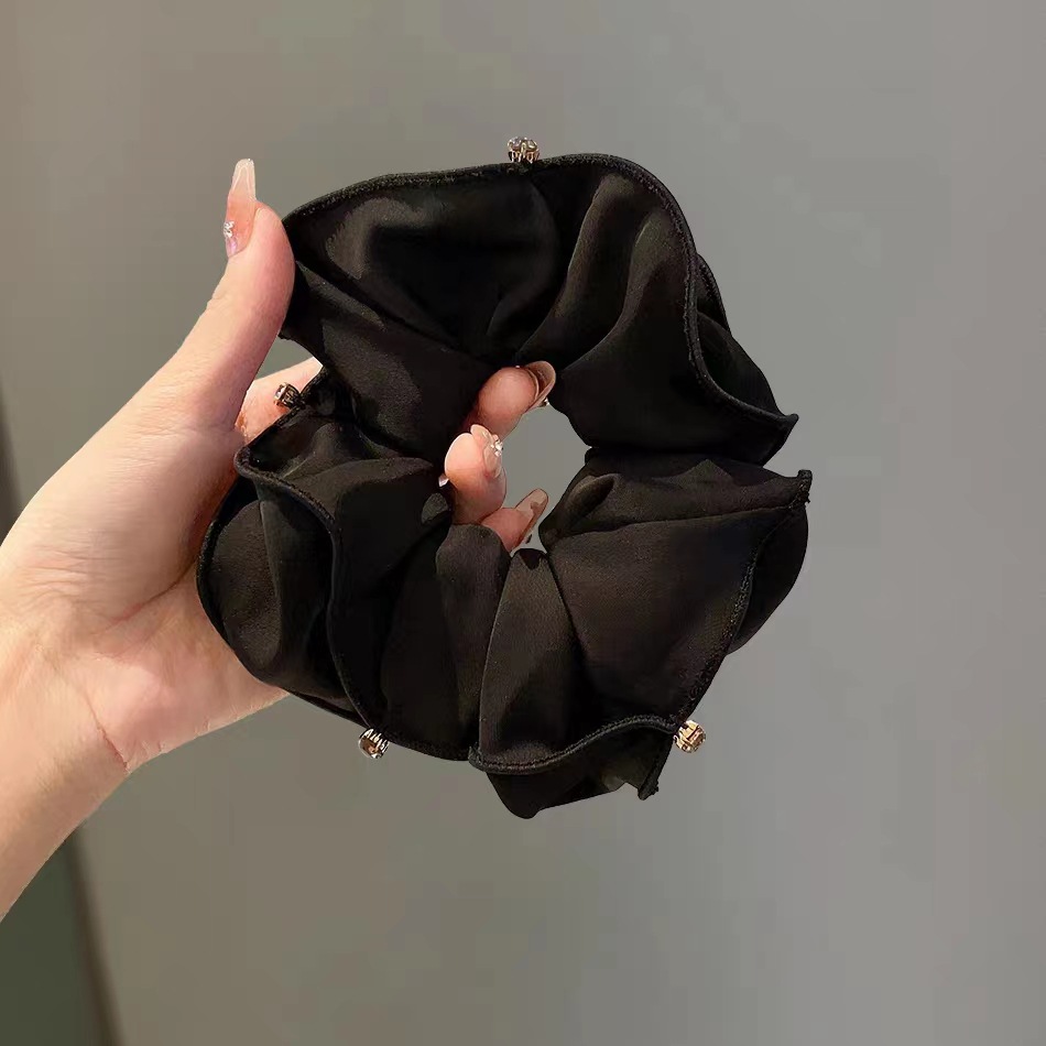 质感缎面新款高级水钻大肠发圈头绳扎头马尾发绳气质网红简约头饰