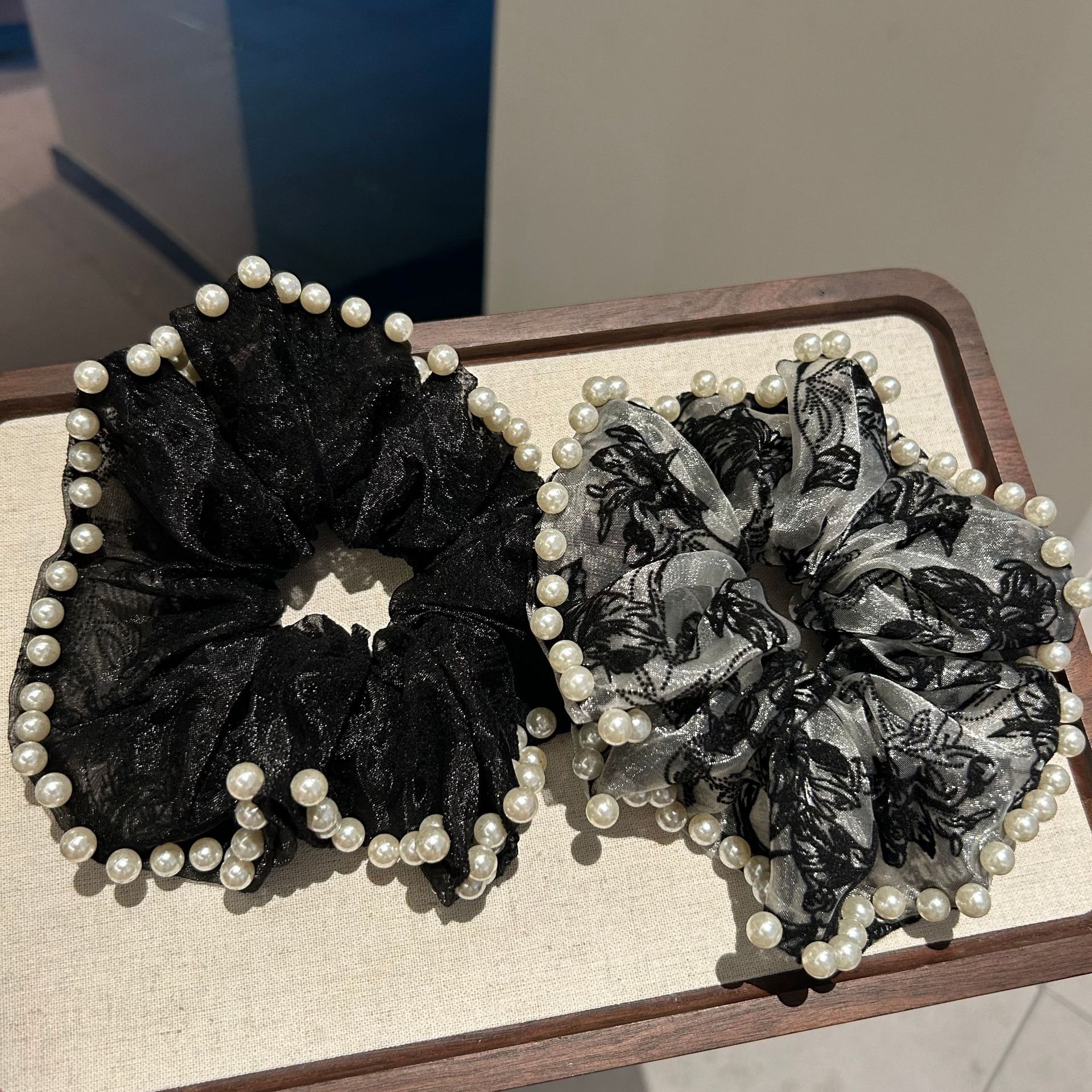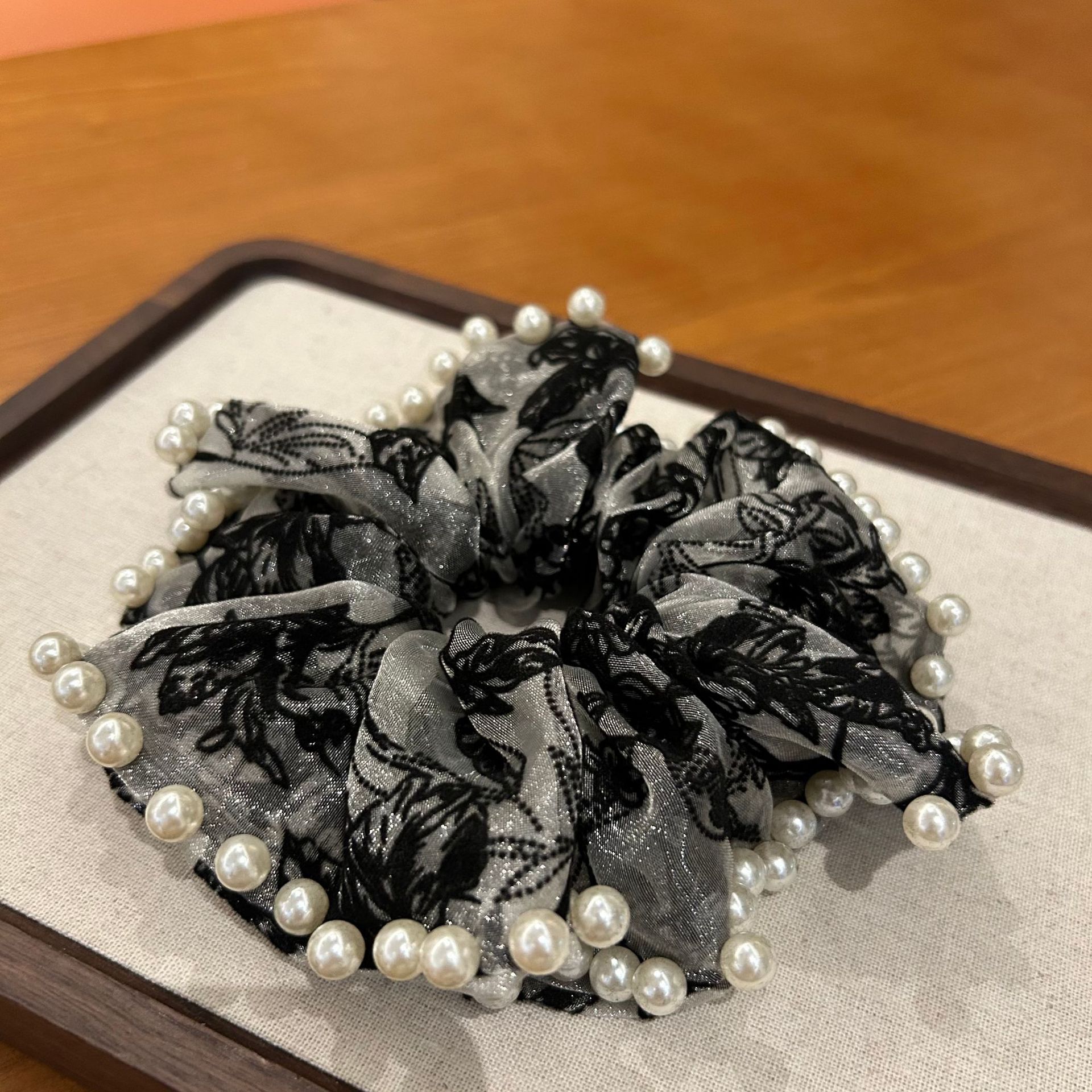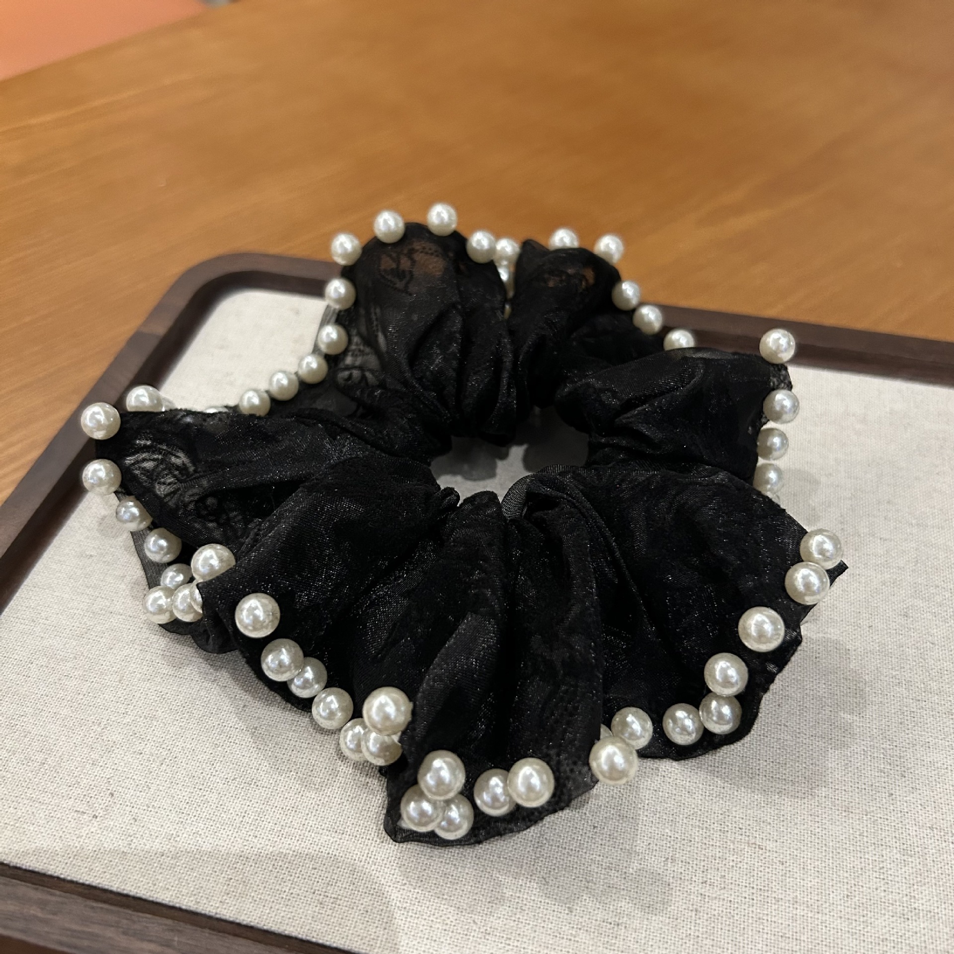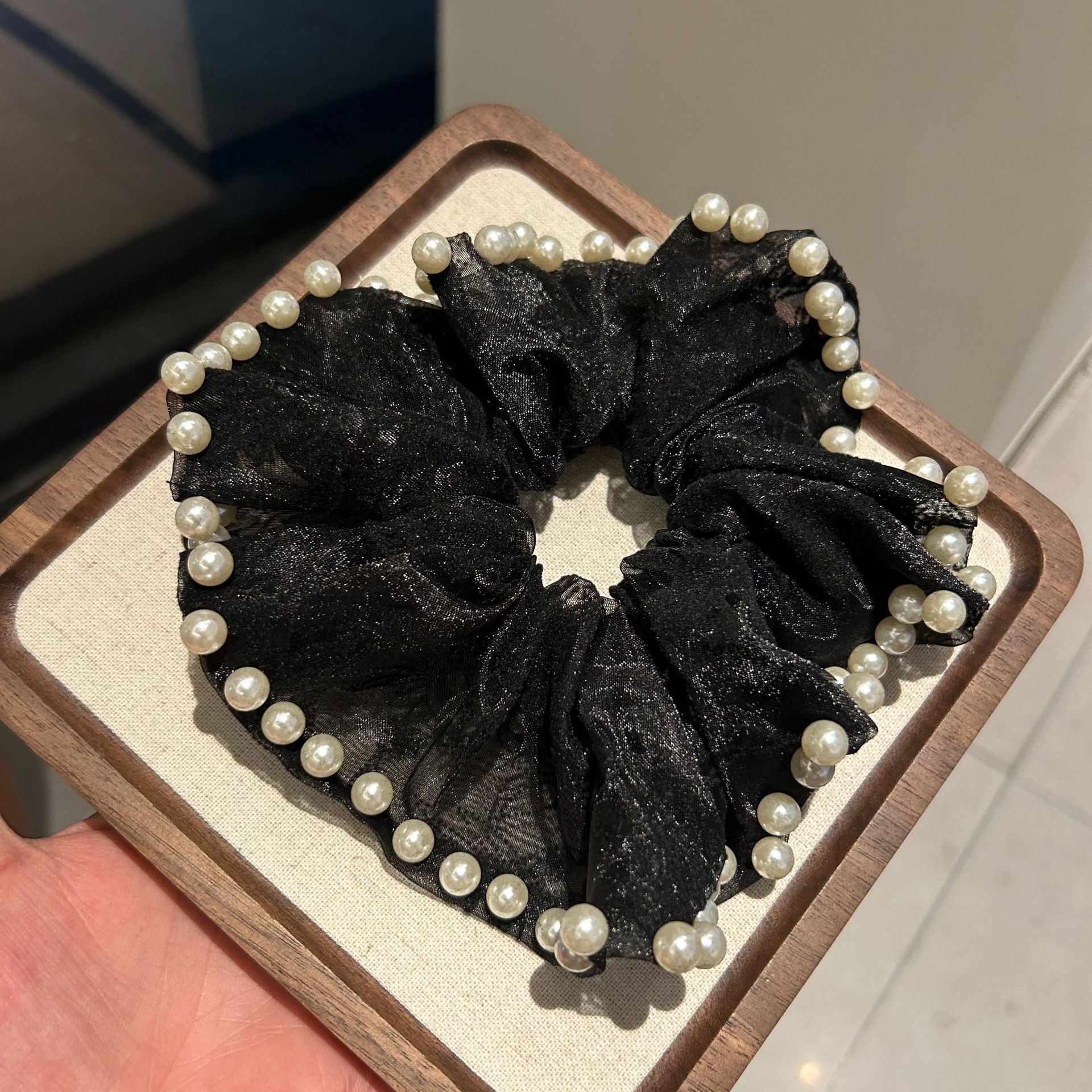 网纱珍珠头绳发饰女高级感新款气质法式复古扎发马尾大肠发圈
