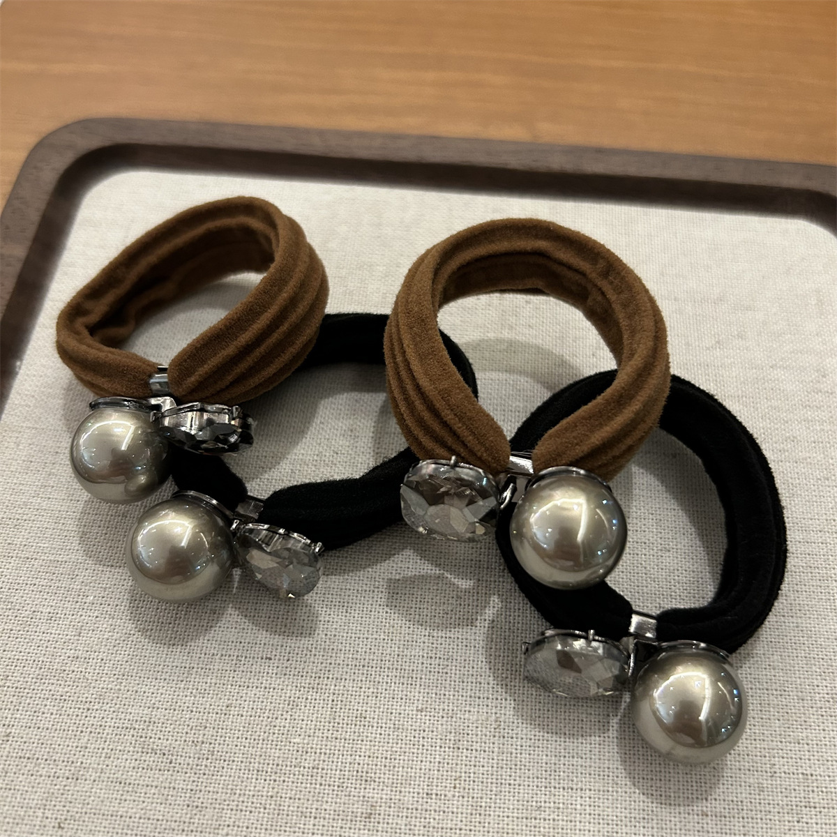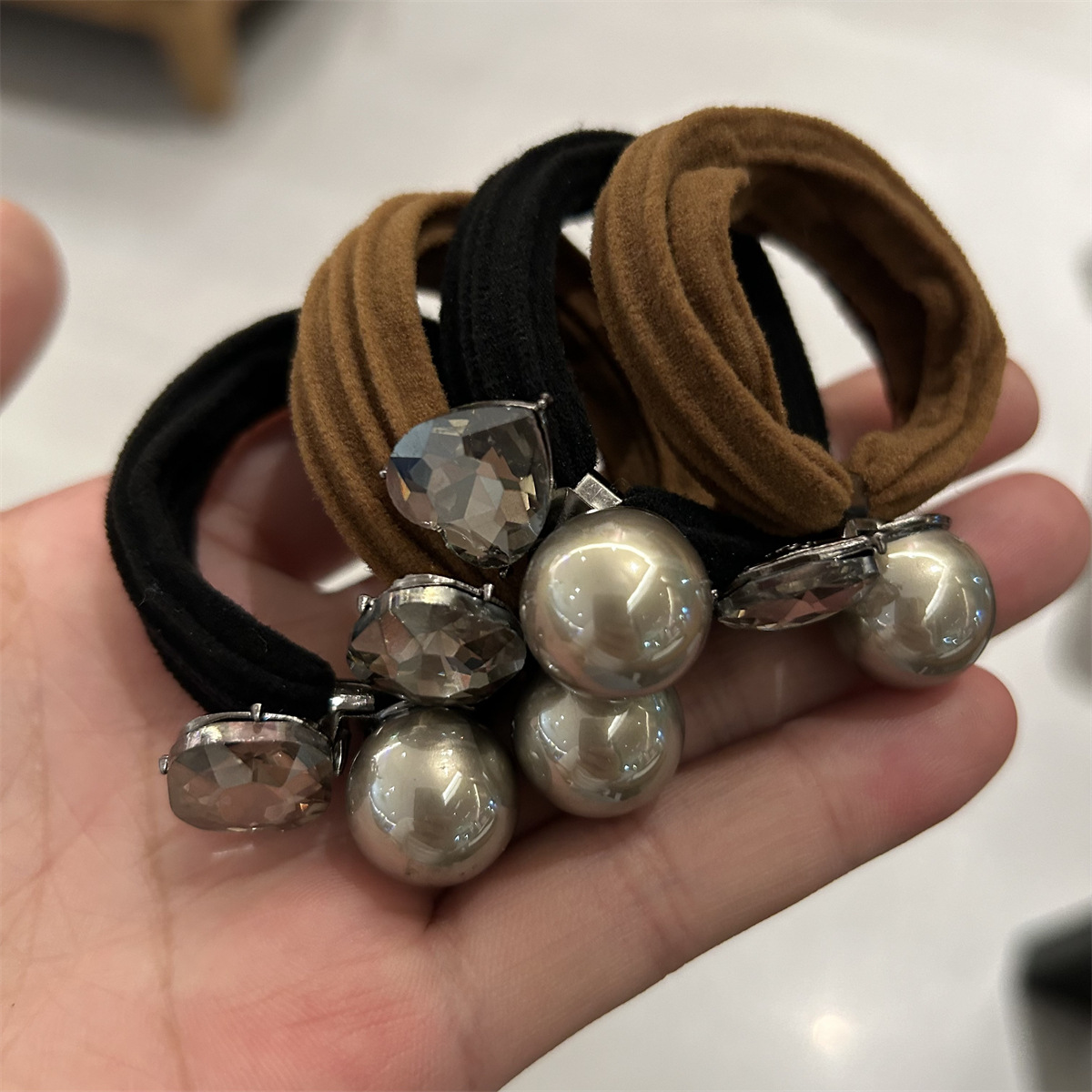 高弹力爱心水晶珍珠发圈高马尾扎头绳简约百搭丸子头发绳新款发饰