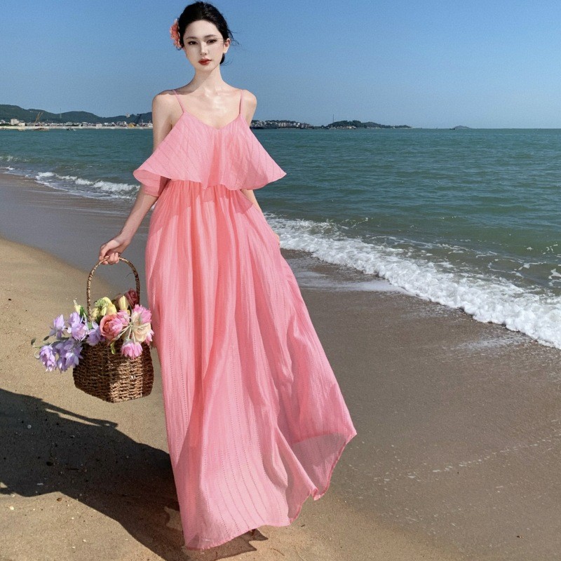 粉色吊带度假连衣裙女夏泰国旅行海边出游穿搭多巴胺海滩长裙裙子