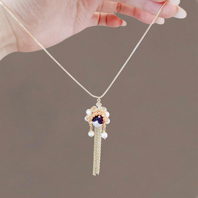 国潮京剧脸谱项链女新中式珍珠刀马旦流苏衣链新款锁骨链
