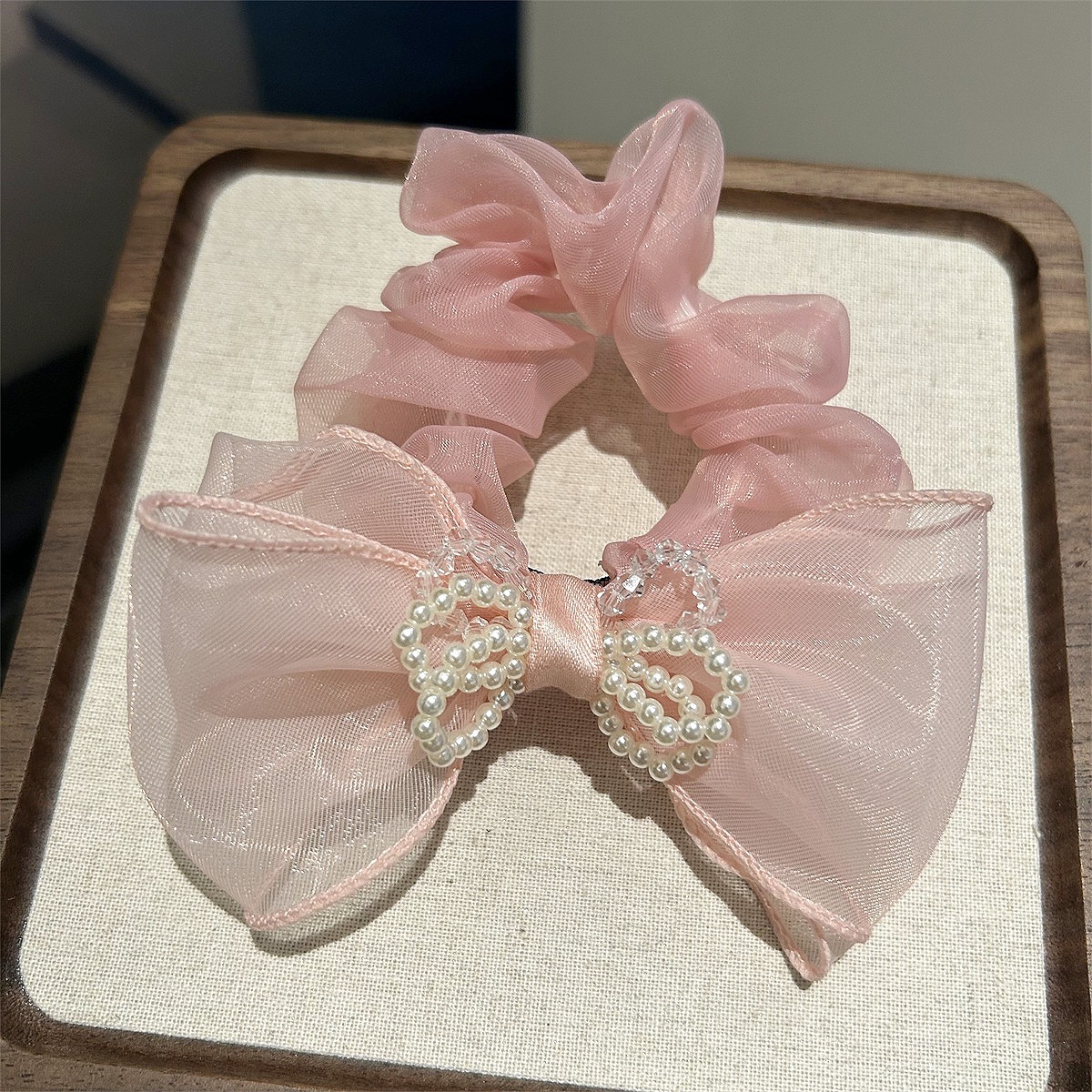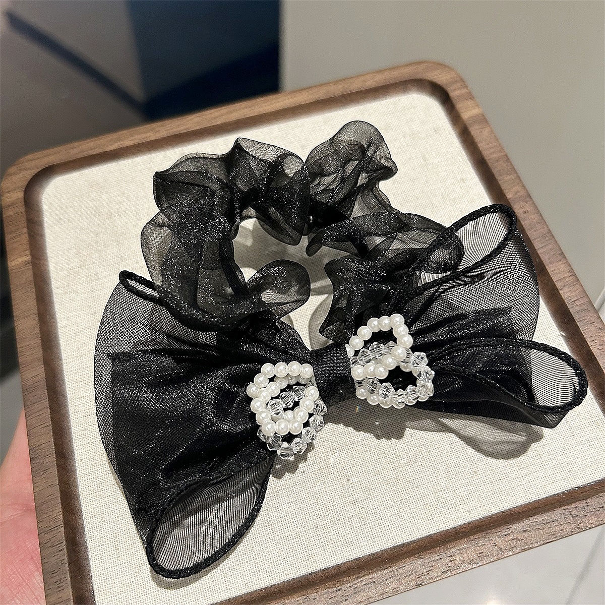 蝴蝶结网纱珍珠大肠发圈韩系甜美扎马尾发绳小清新百搭皮筋发饰女