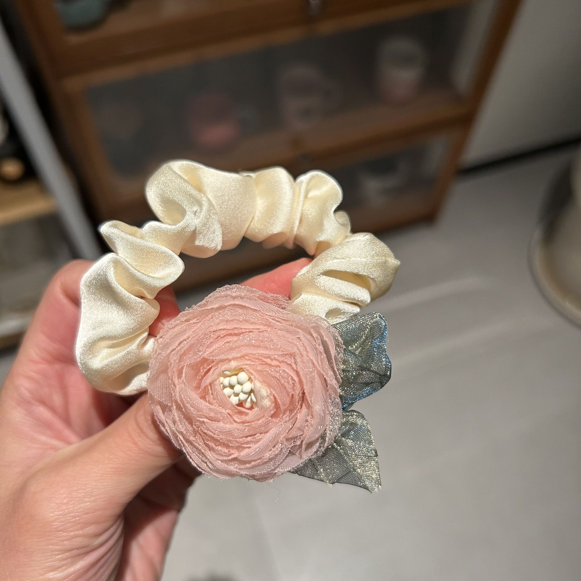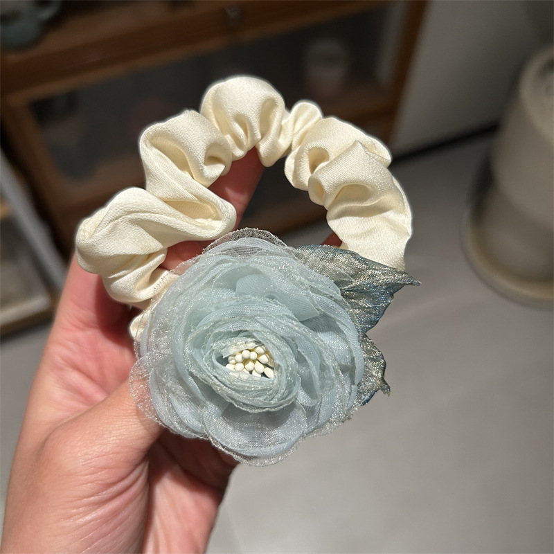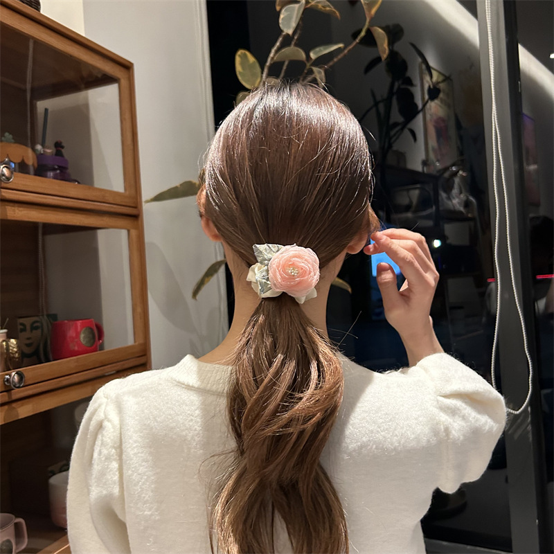 缎面山茶花发圈~超仙温柔大肠圈原创法式高级感春季新款发绳头绳