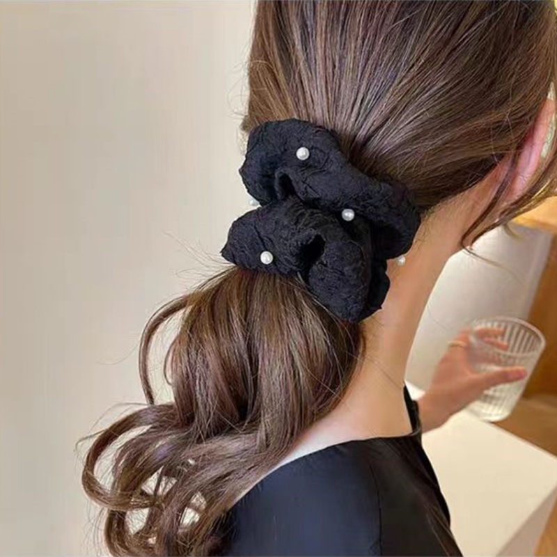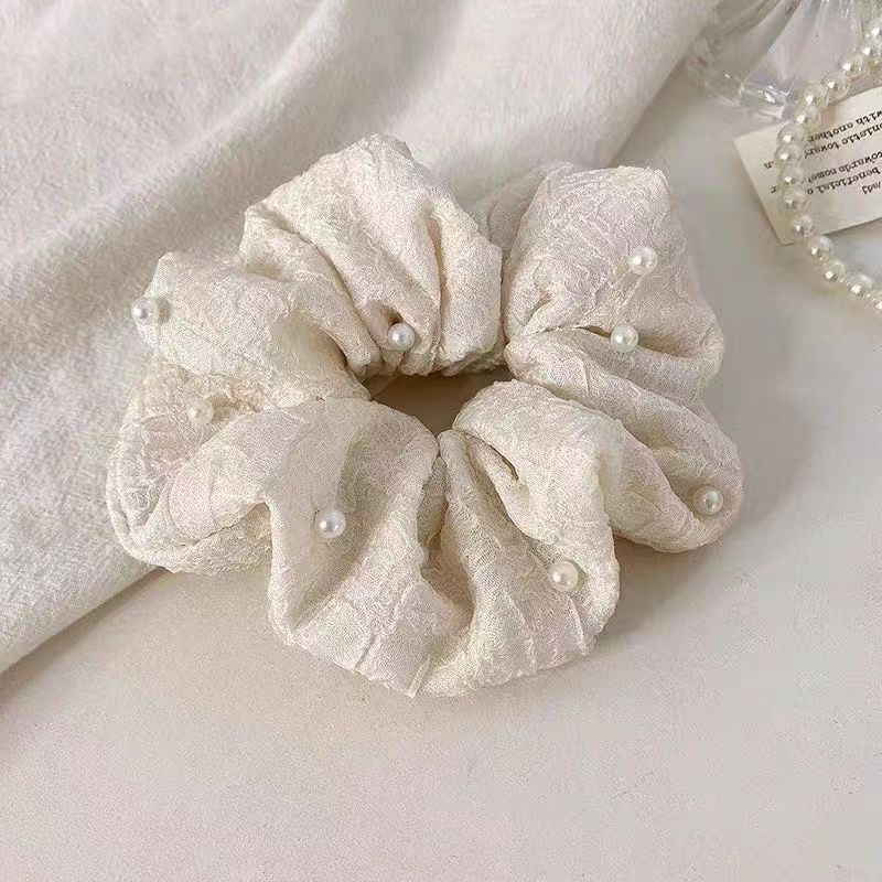 韩式新款珍珠大肠发圈钉珠褶皱发绳高级感网红时尚头绳头饰