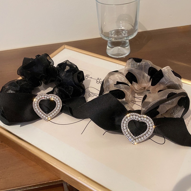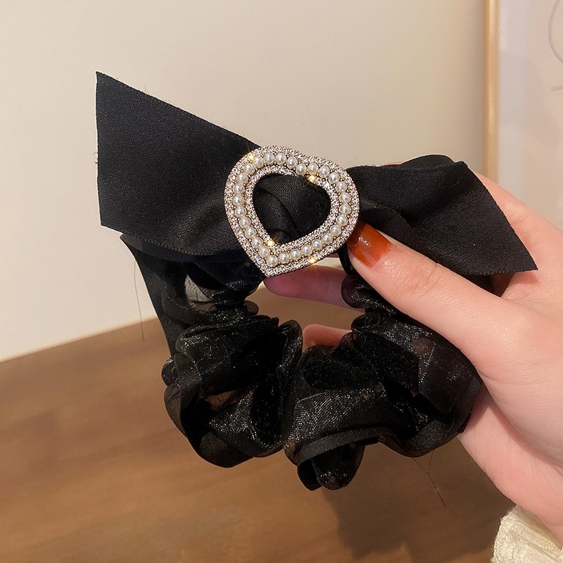 镶钻珍珠爱心蝴蝶结大肠发圈韩国复古百搭扎头发绳新款时尚发饰女