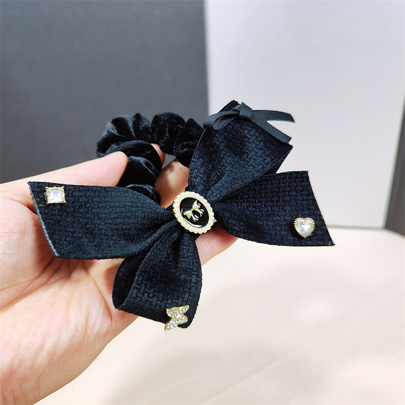 法式新款气质高定黑色蝴蝶结发圈优雅简约小香风发绳女大肠圈发饰