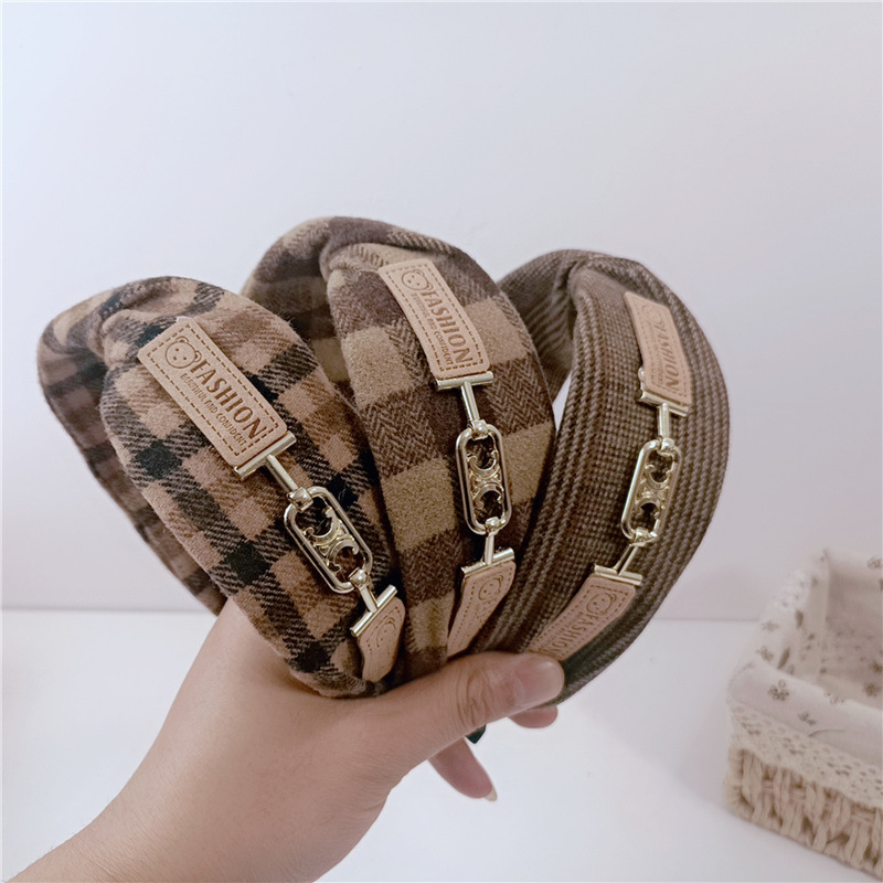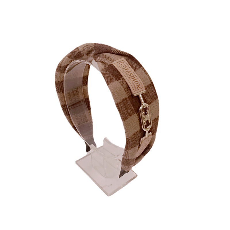 韩国简约格子发箍布艺发圈宽边压发发卡气质金属扣头箍女洗脸发卡