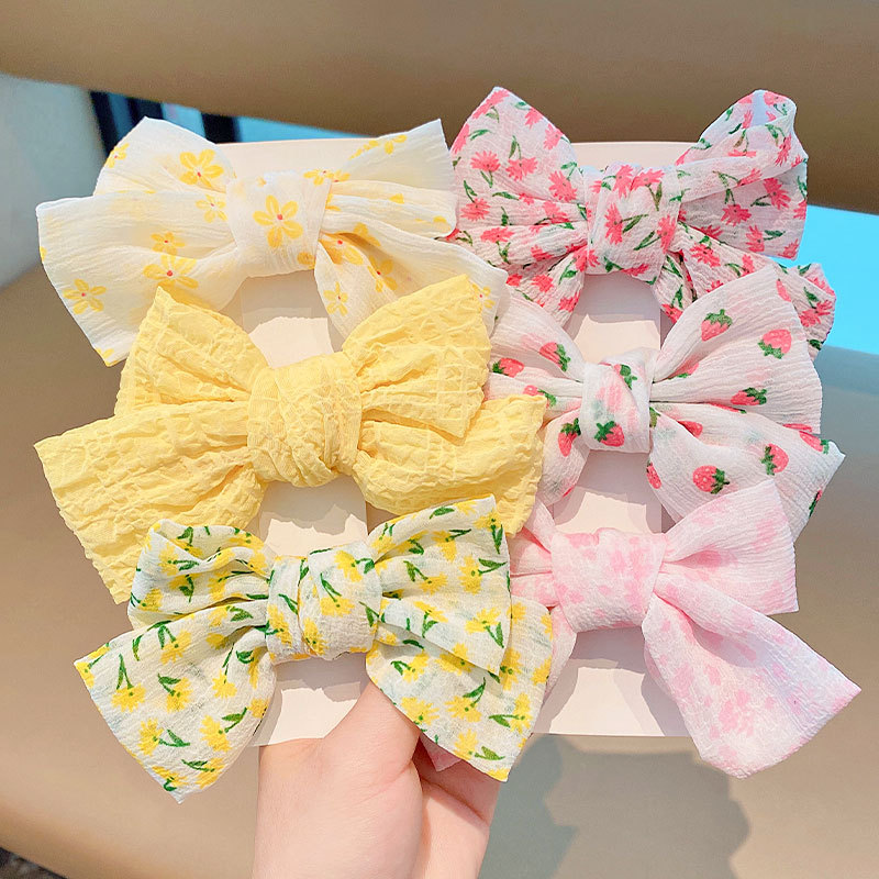 儿童蝴蝶结发夹甜美可爱女童后脑勺发饰侧边夹子女孩碎花头饰发卡