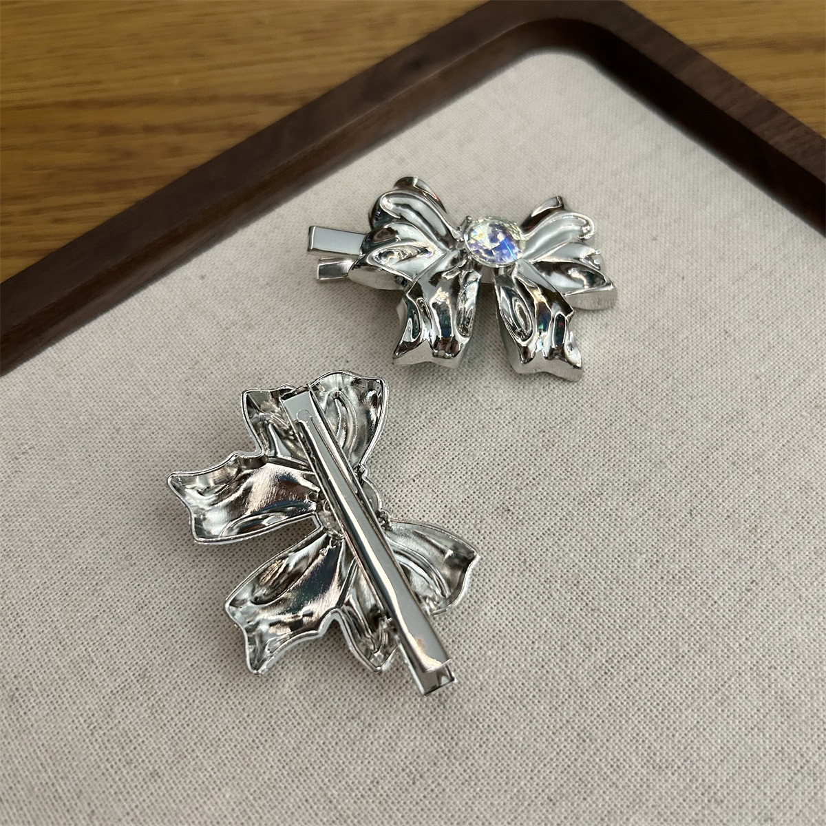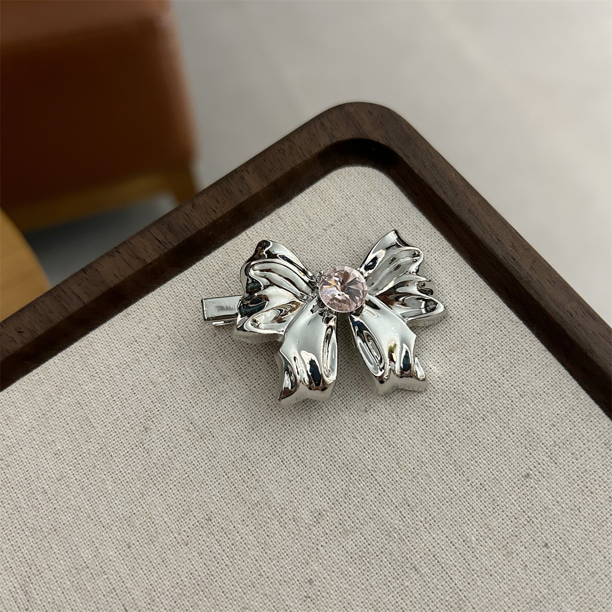 甜酷ins冷淡风发夹金属爱心光面蝴蝶结个性小众设计感边夹发饰女