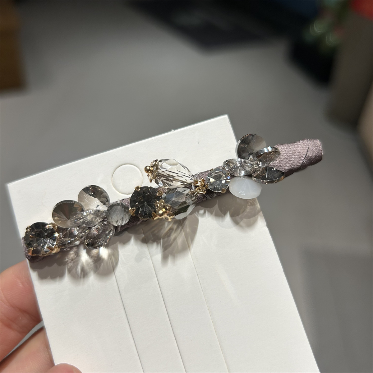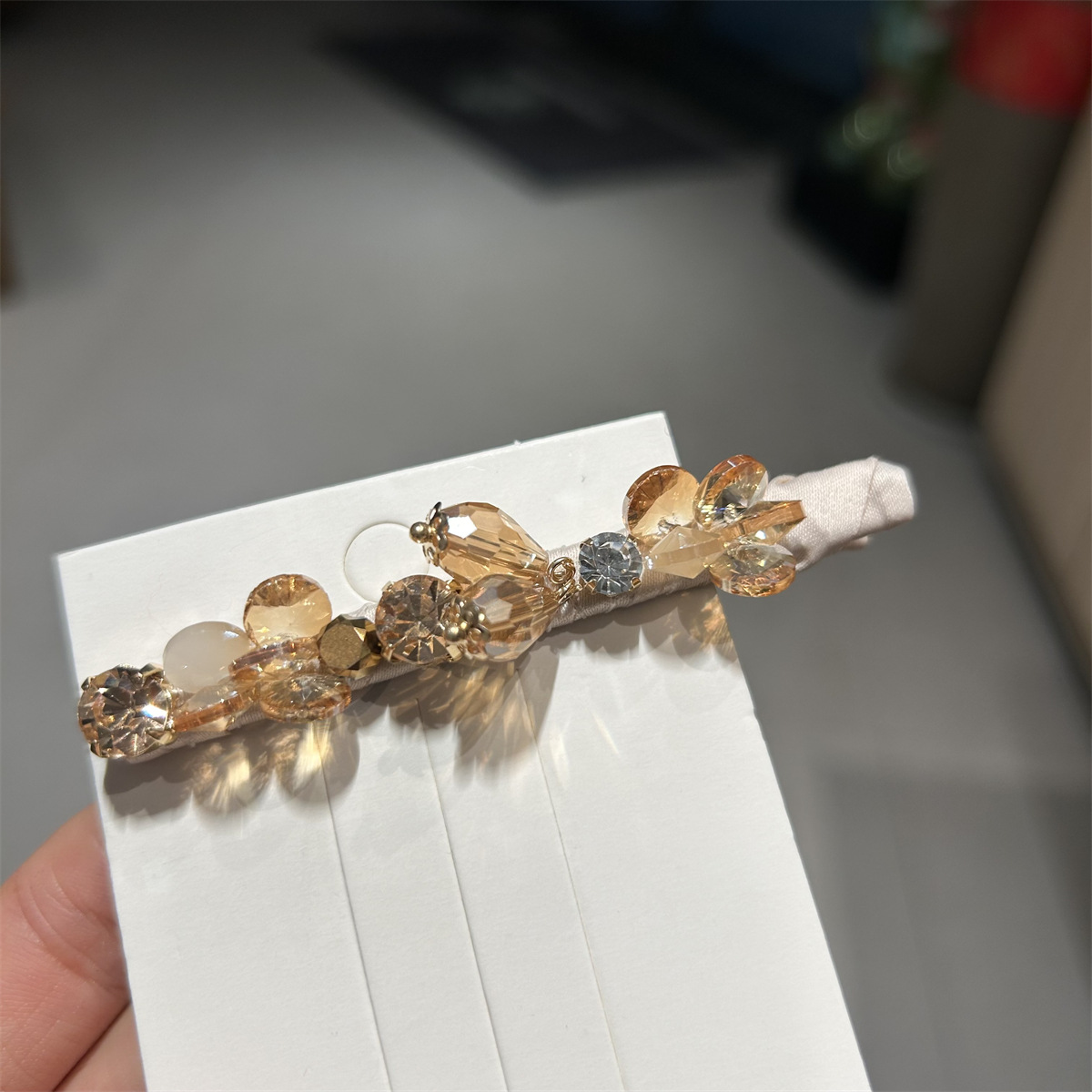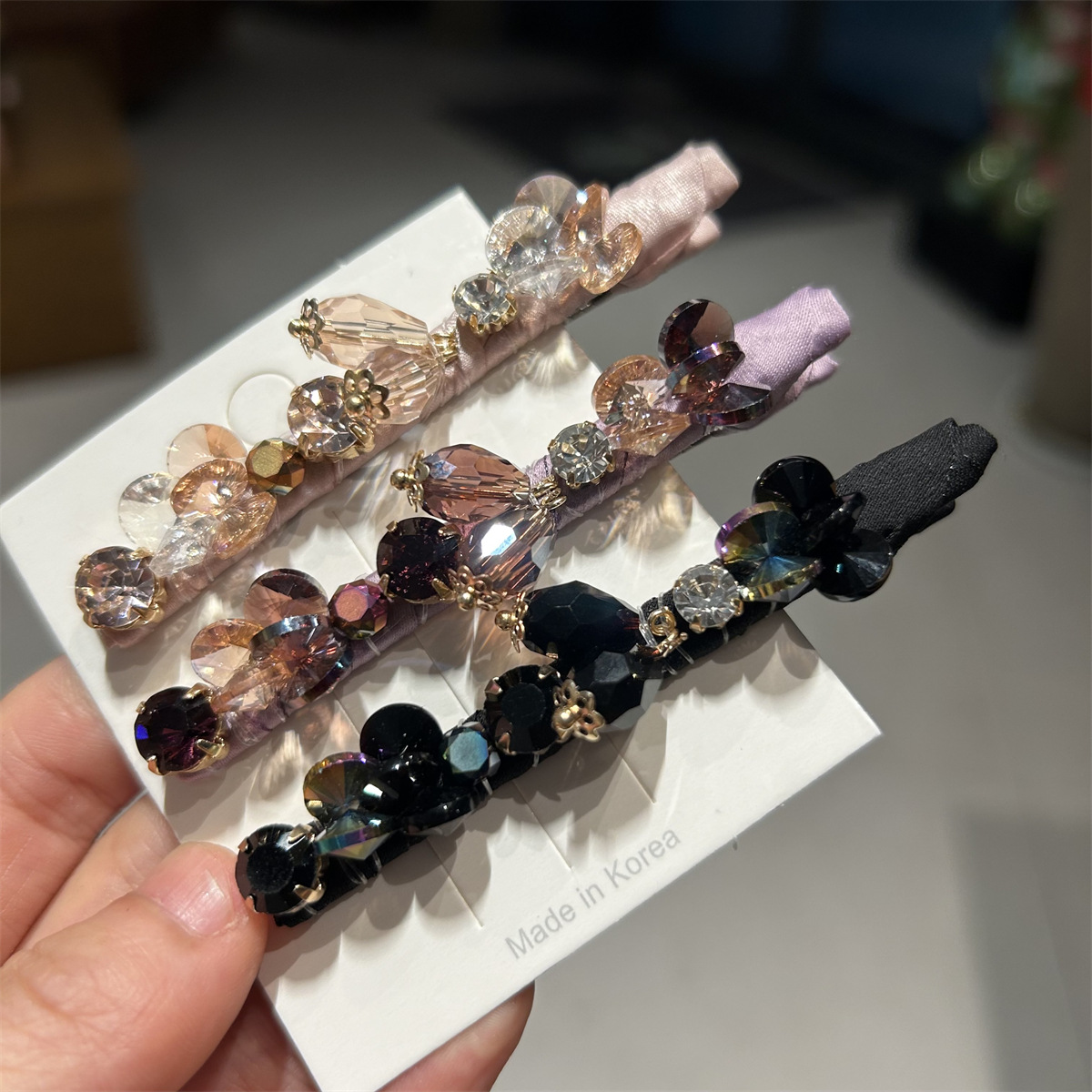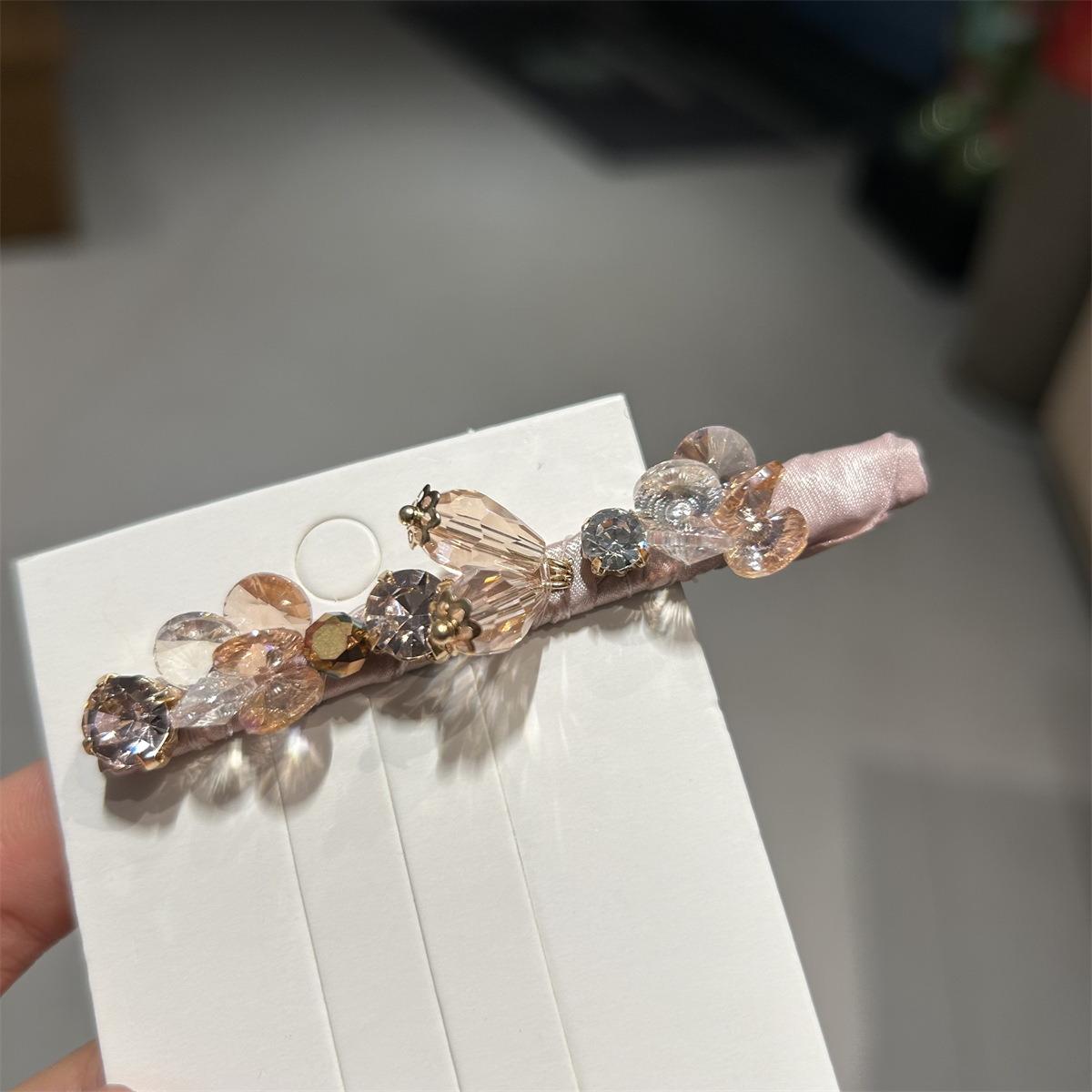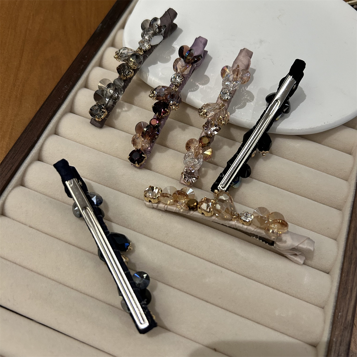 韩国东大门水晶布艺发卡头饰碎花镶钻边夹刘海夹碎发夹鸭嘴夹头饰