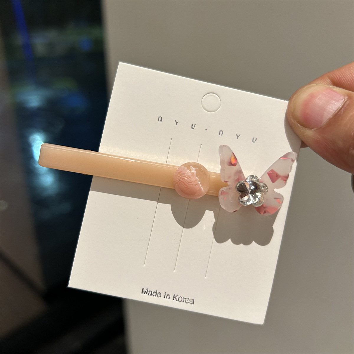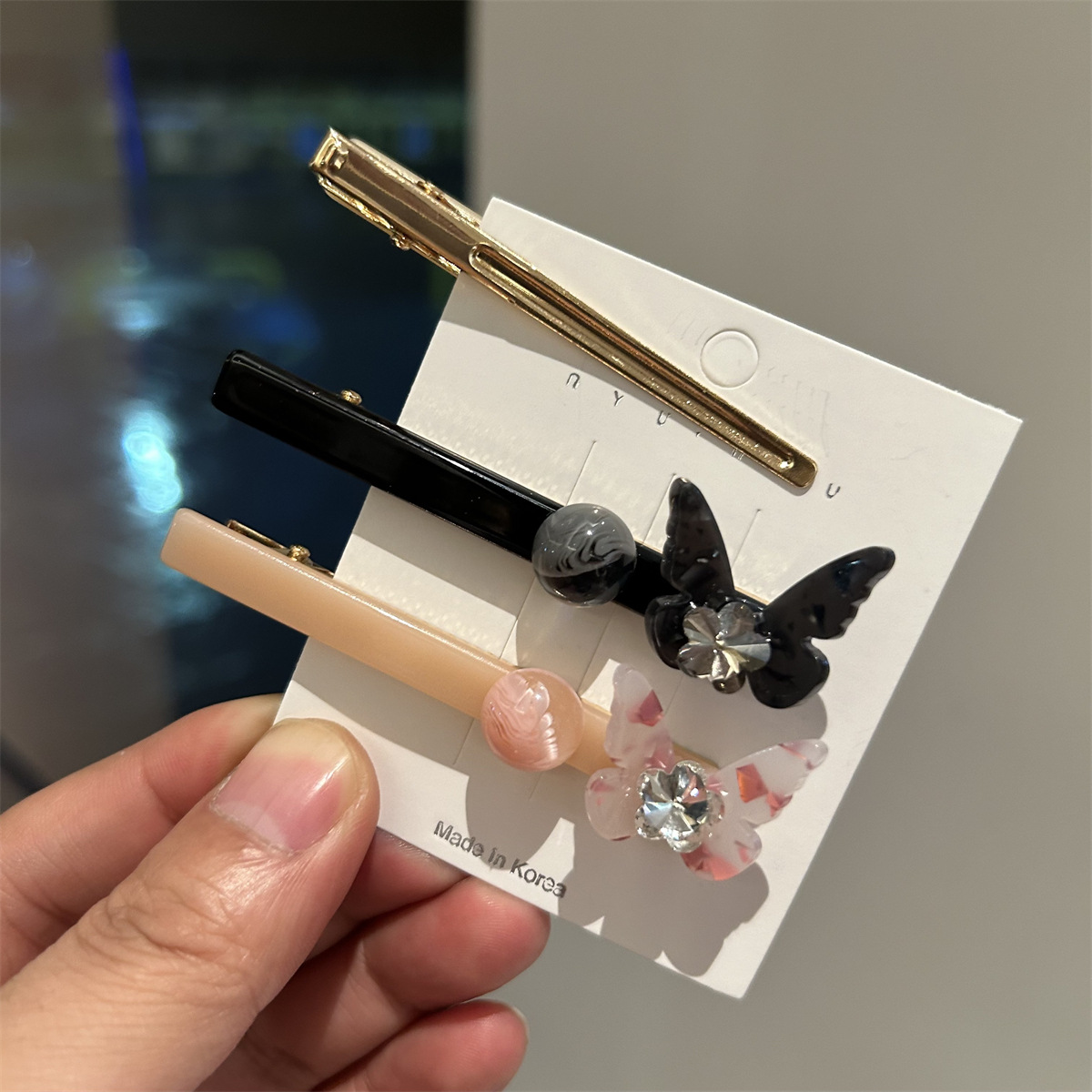 韩式新款复古蝴蝶一字夹高级感水钻镶嵌发夹发卡百搭鸭嘴夹刘海夹