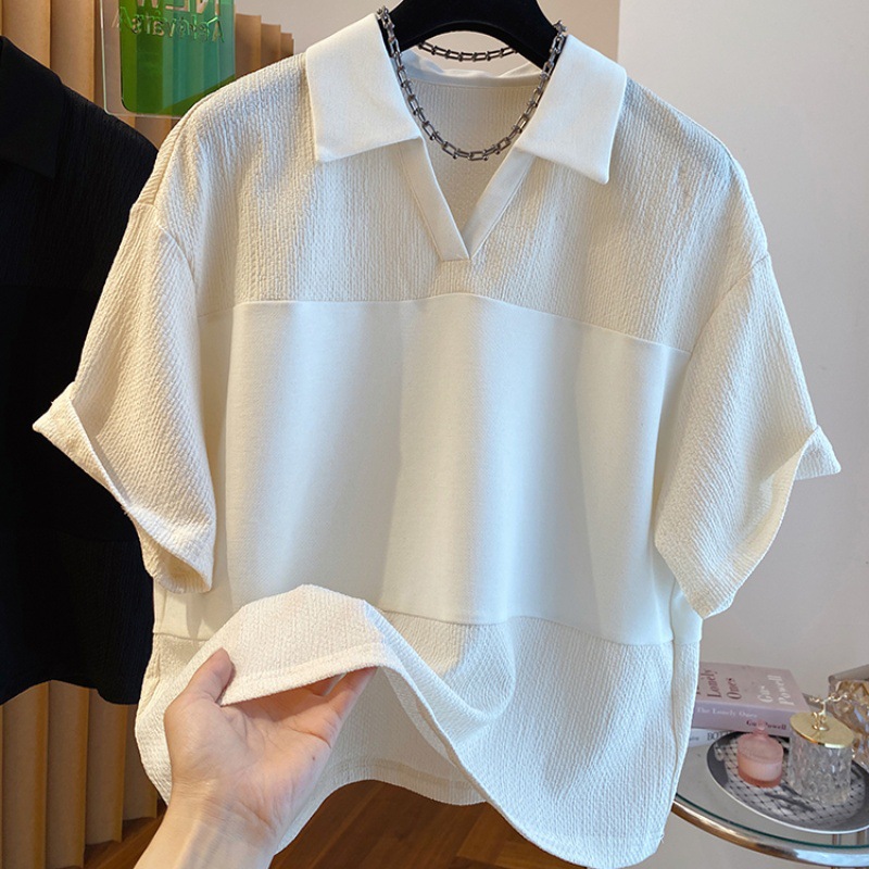 特大码300斤肌理感拼接V领POLO衫短袖男装夏季百搭翻领T恤上衣
