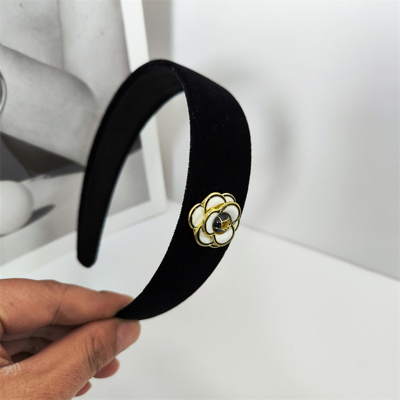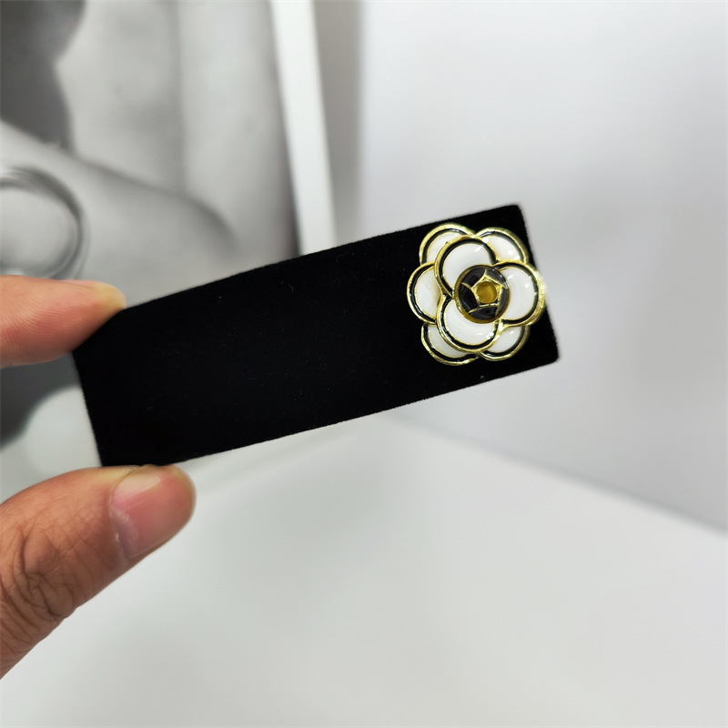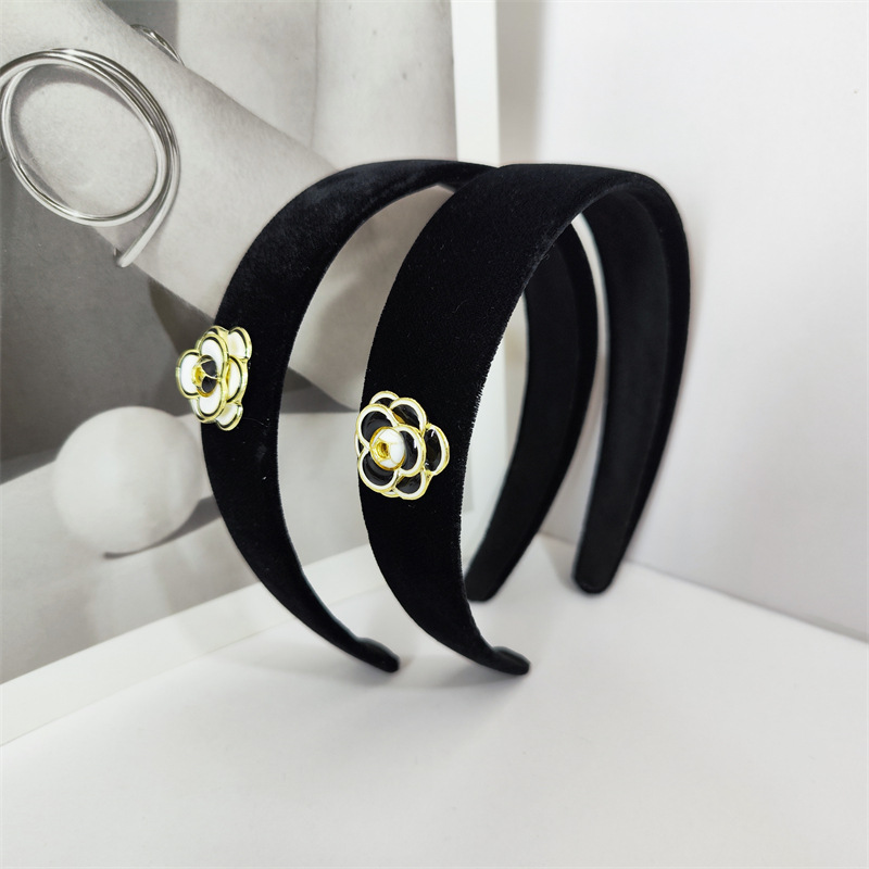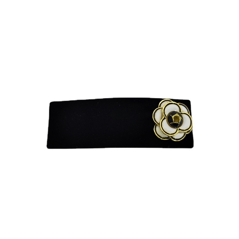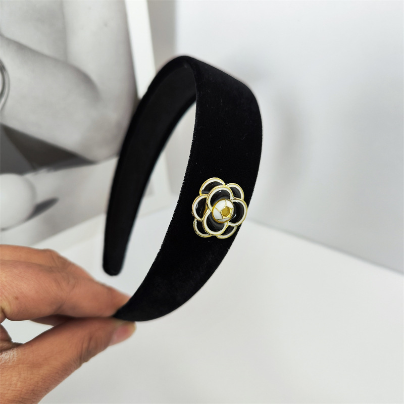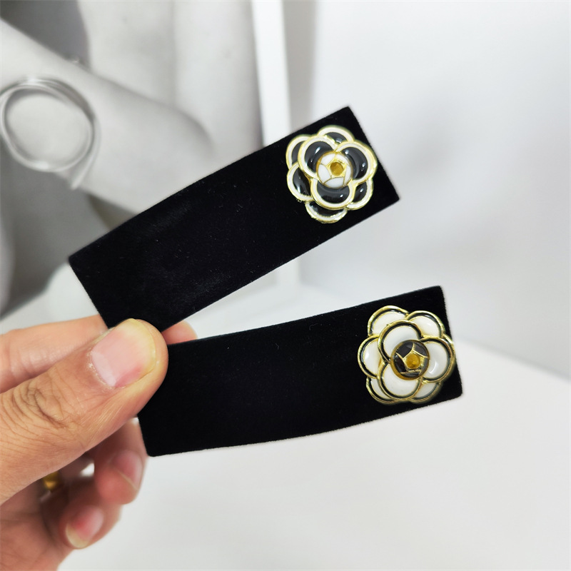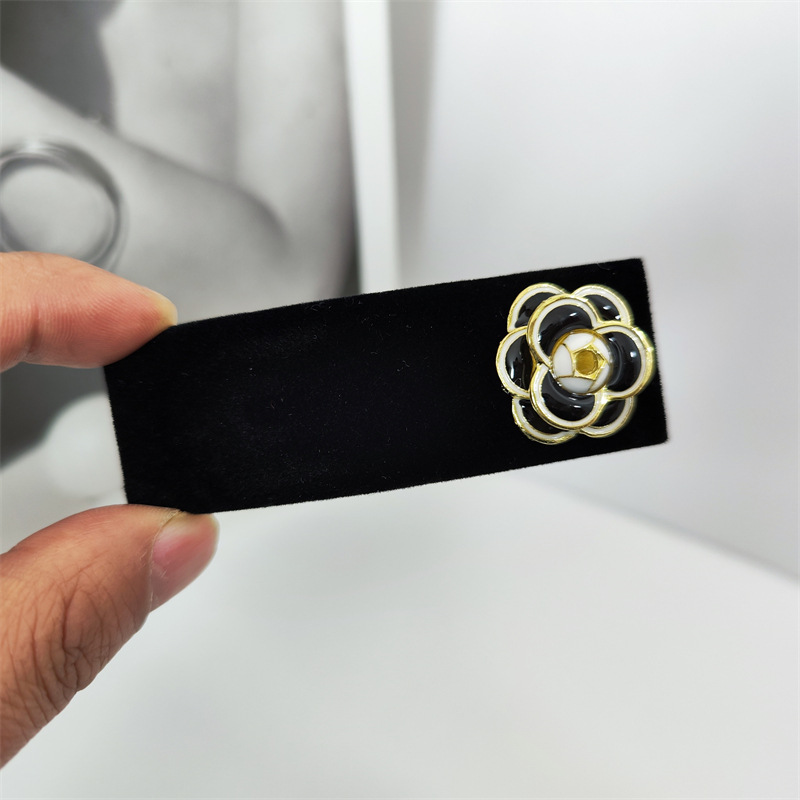 韩国新款黑色金丝绒小香风山茶花发箍简约百搭发夹BB夹碎发侧边夹