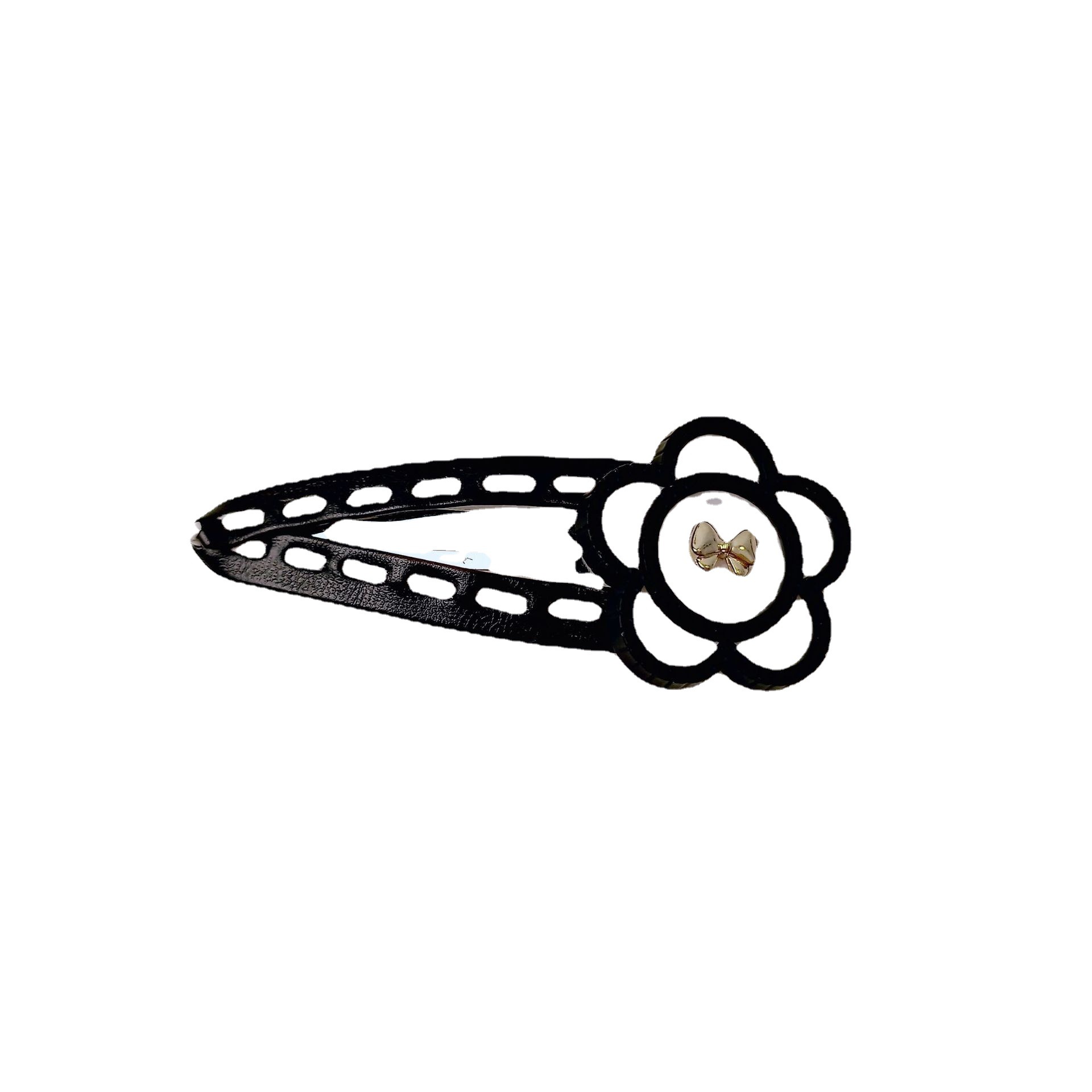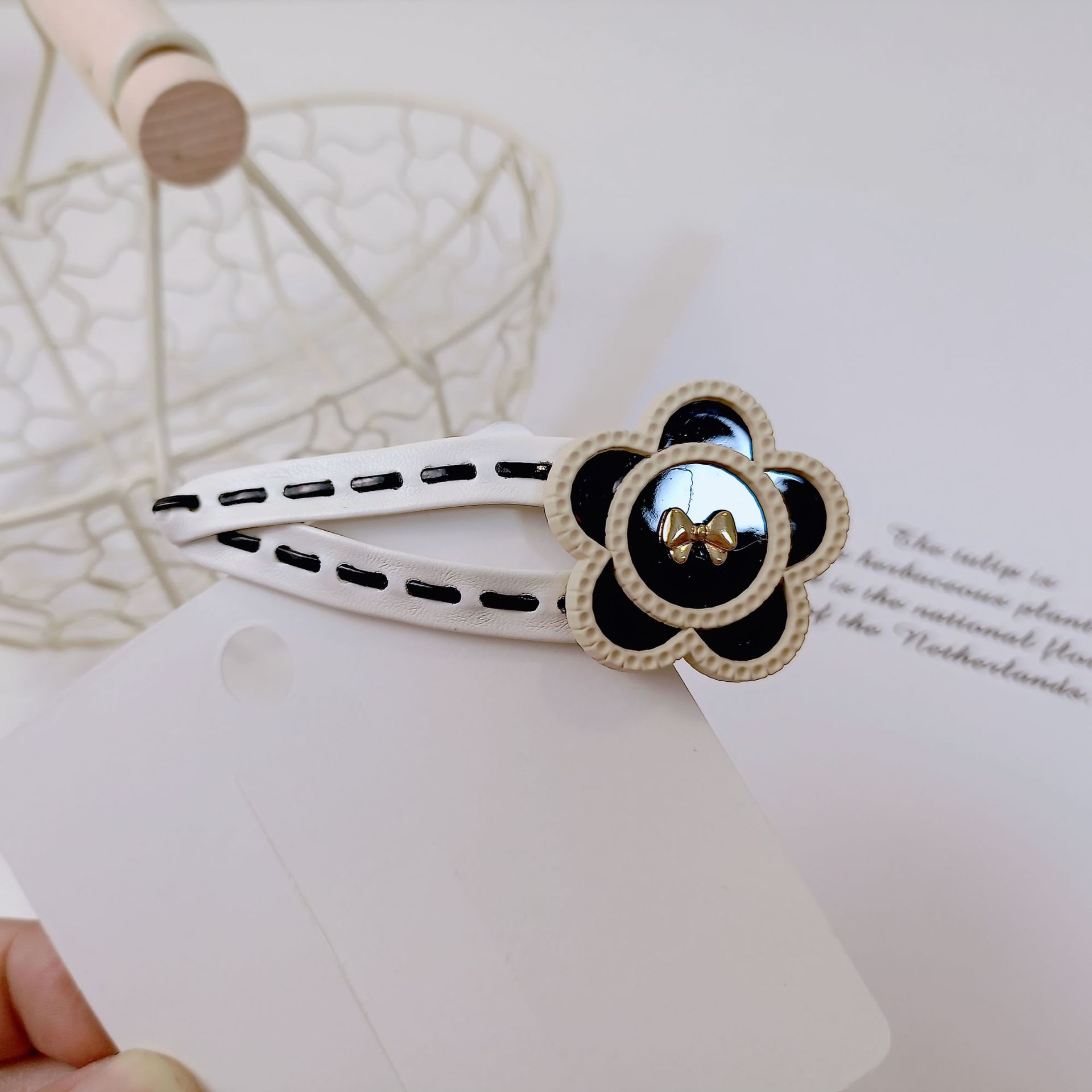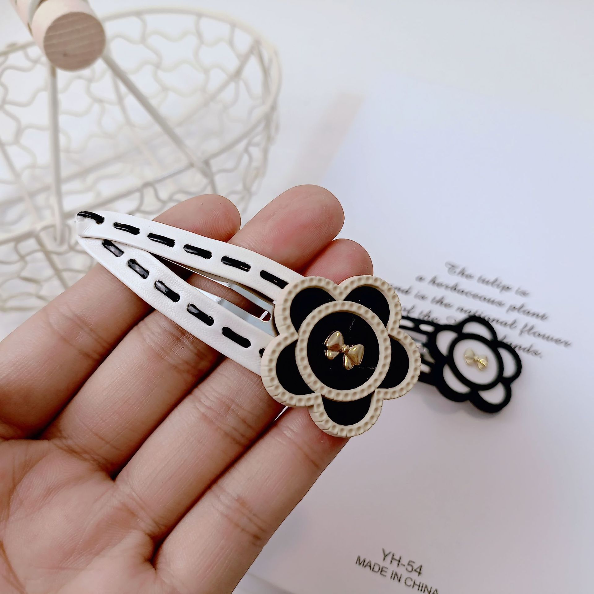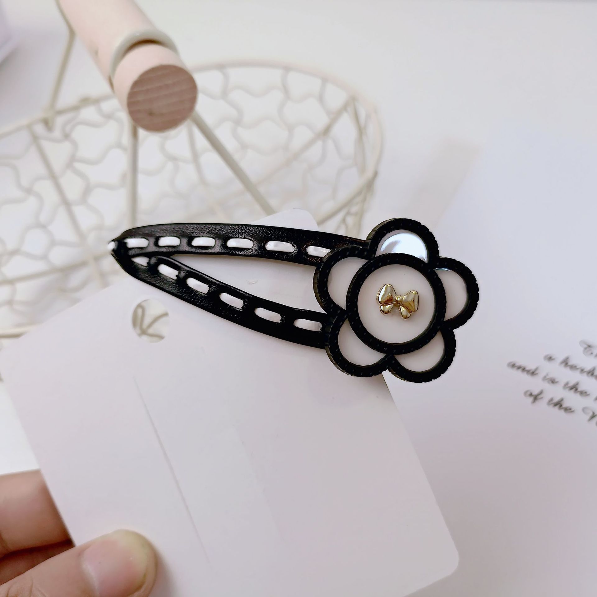 韩版女黑白系皮边夹小香风花朵BB夹碎发刘海侧边夹甜美后脑勺顶夹