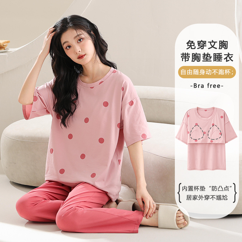 带胸垫睡衣女夏季薄款莫代尔短袖长裤可外穿简约家居服新款