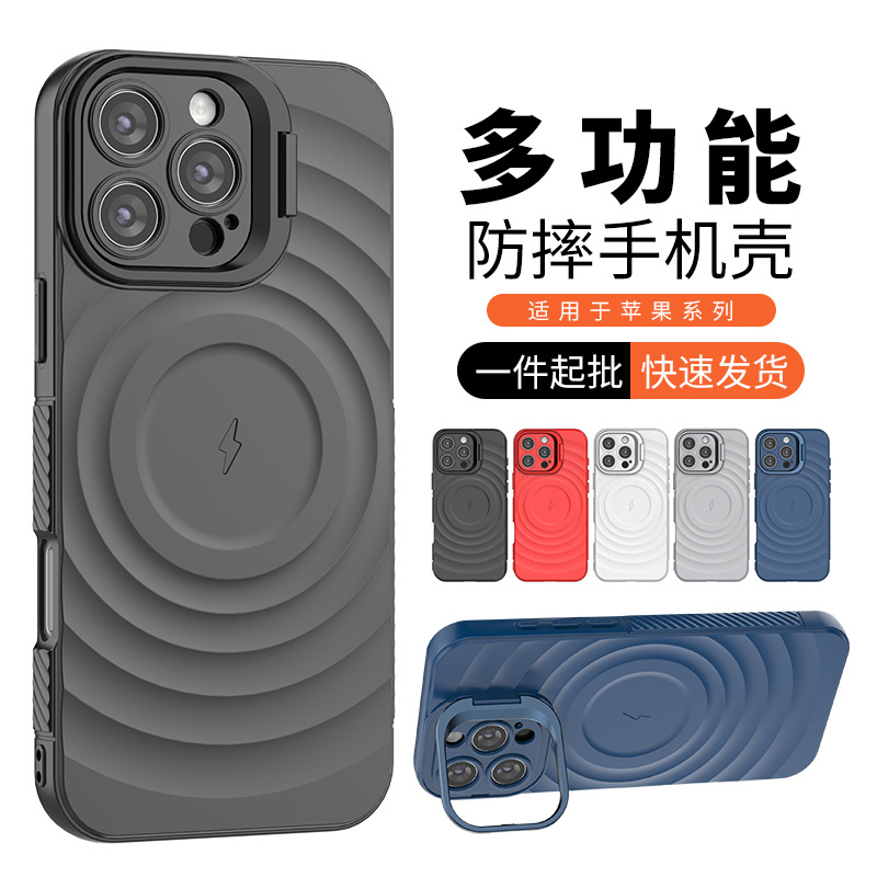 适用iPhone16PROMAX手机壳波纹防摔隐形支架磁吸苹果15手机壳