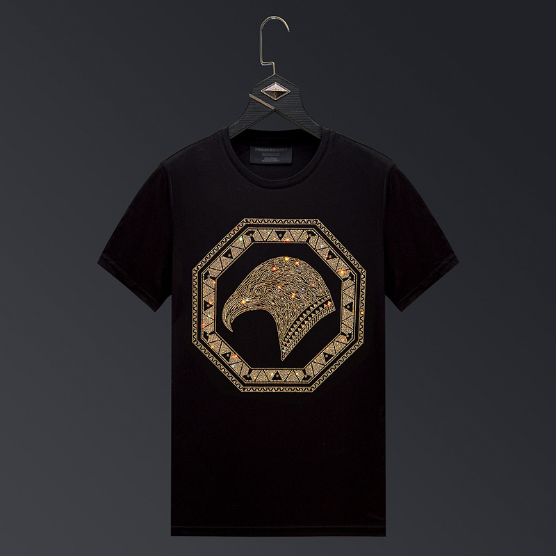 烫钻老鹰潮牌男士夏季短袖t恤男冰感半袖丝光棉体恤男装新款
