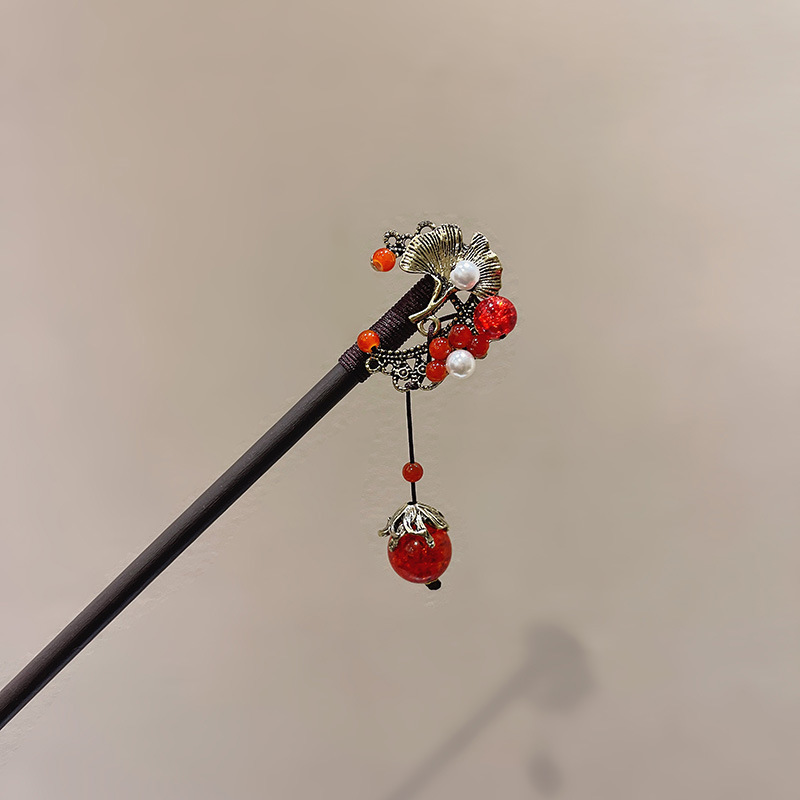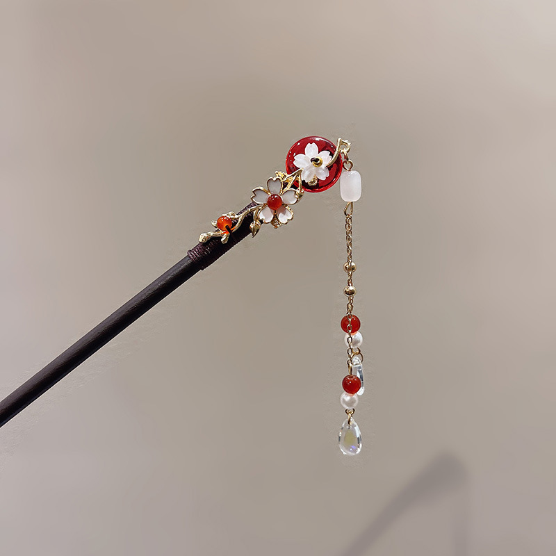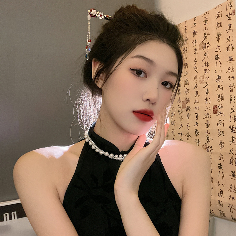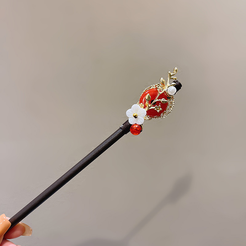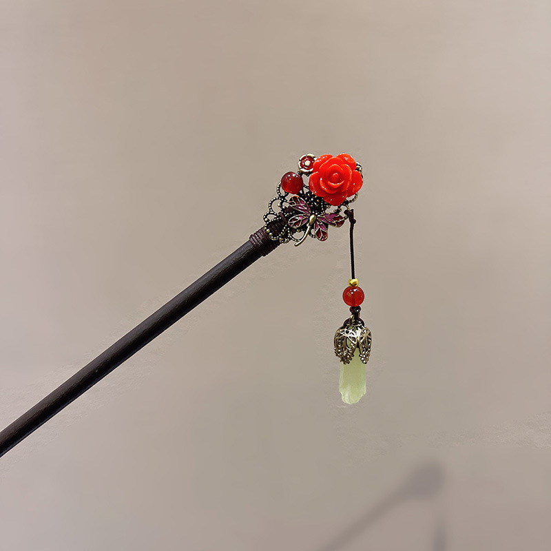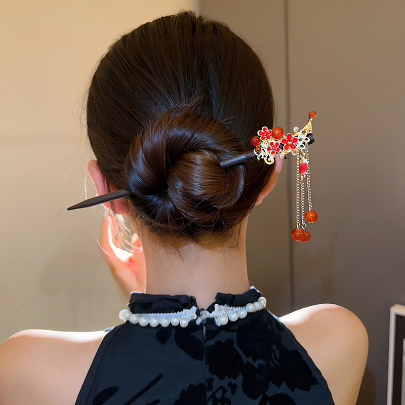 新中式发簪古风檀木簪高级感手工流苏发钗盘发簪子汉服旗袍发饰女