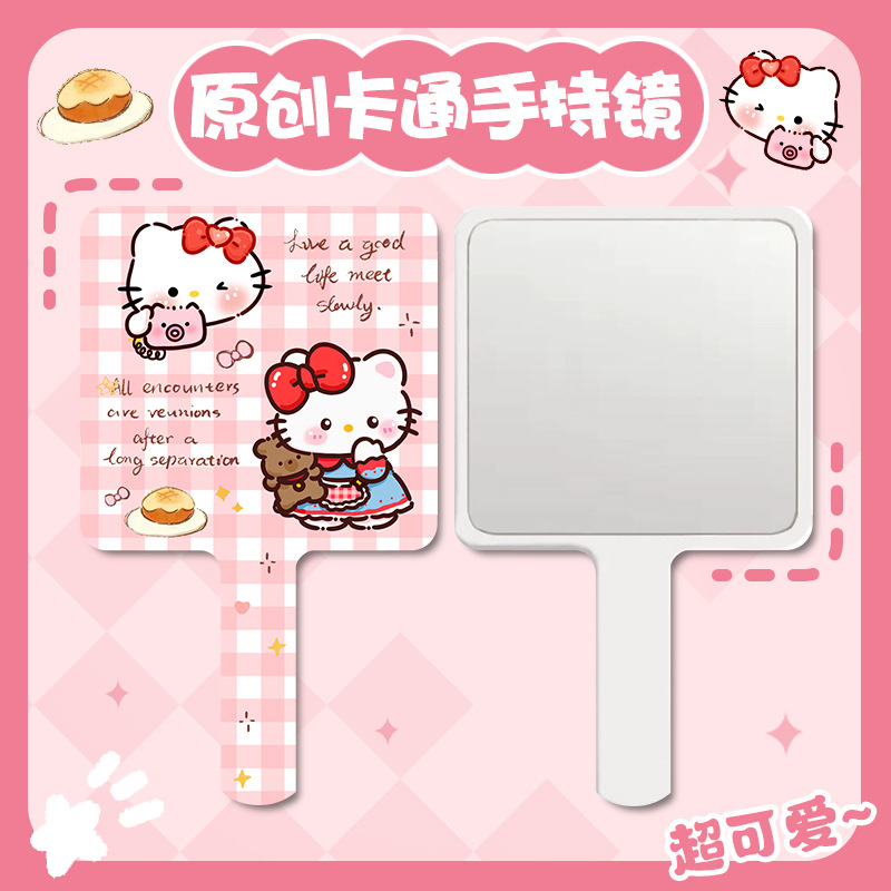 搞怪个性kitty猫小镜子学生手持化妆镜便携式随身折叠镜双面镜子