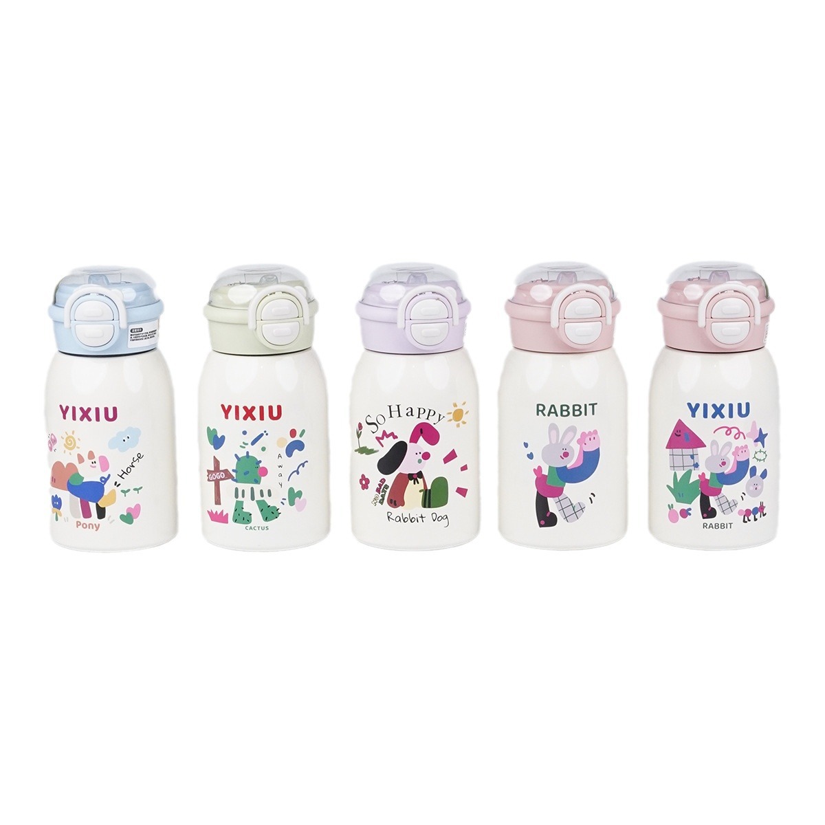 新款大容量水杯316不锈钢学生上学专用高颜值吸管可爱卡通弹跳杯