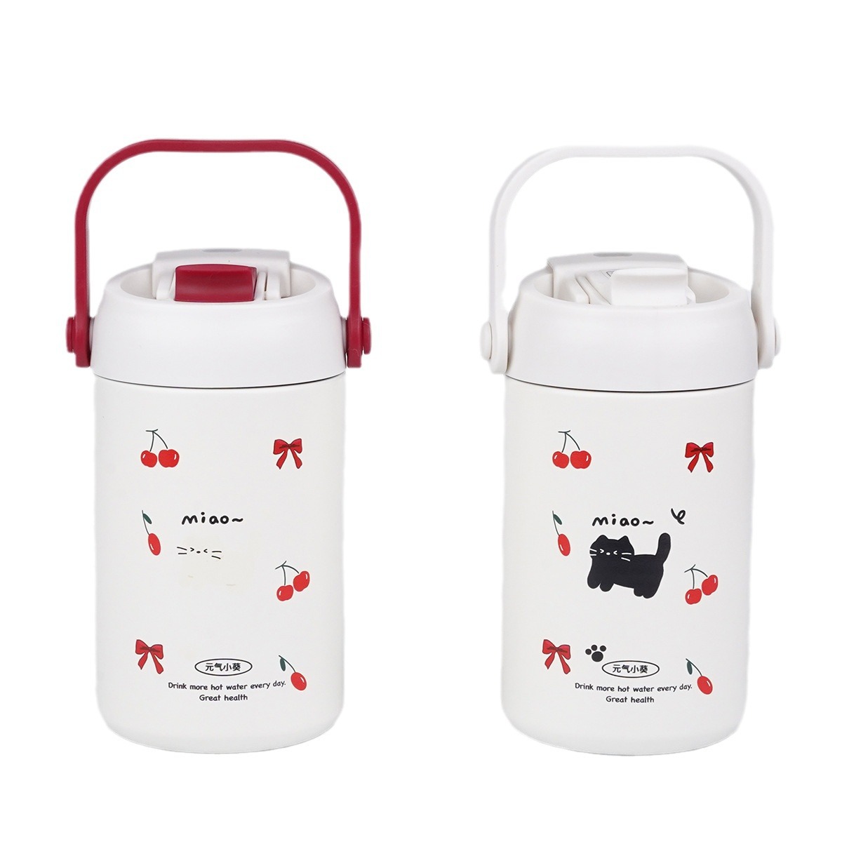 新款卡通304不锈钢真空保温杯儿童大提手便携大容量双饮水杯子