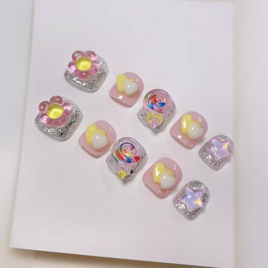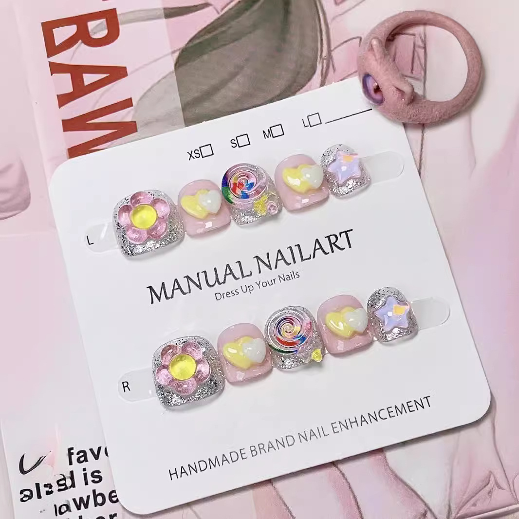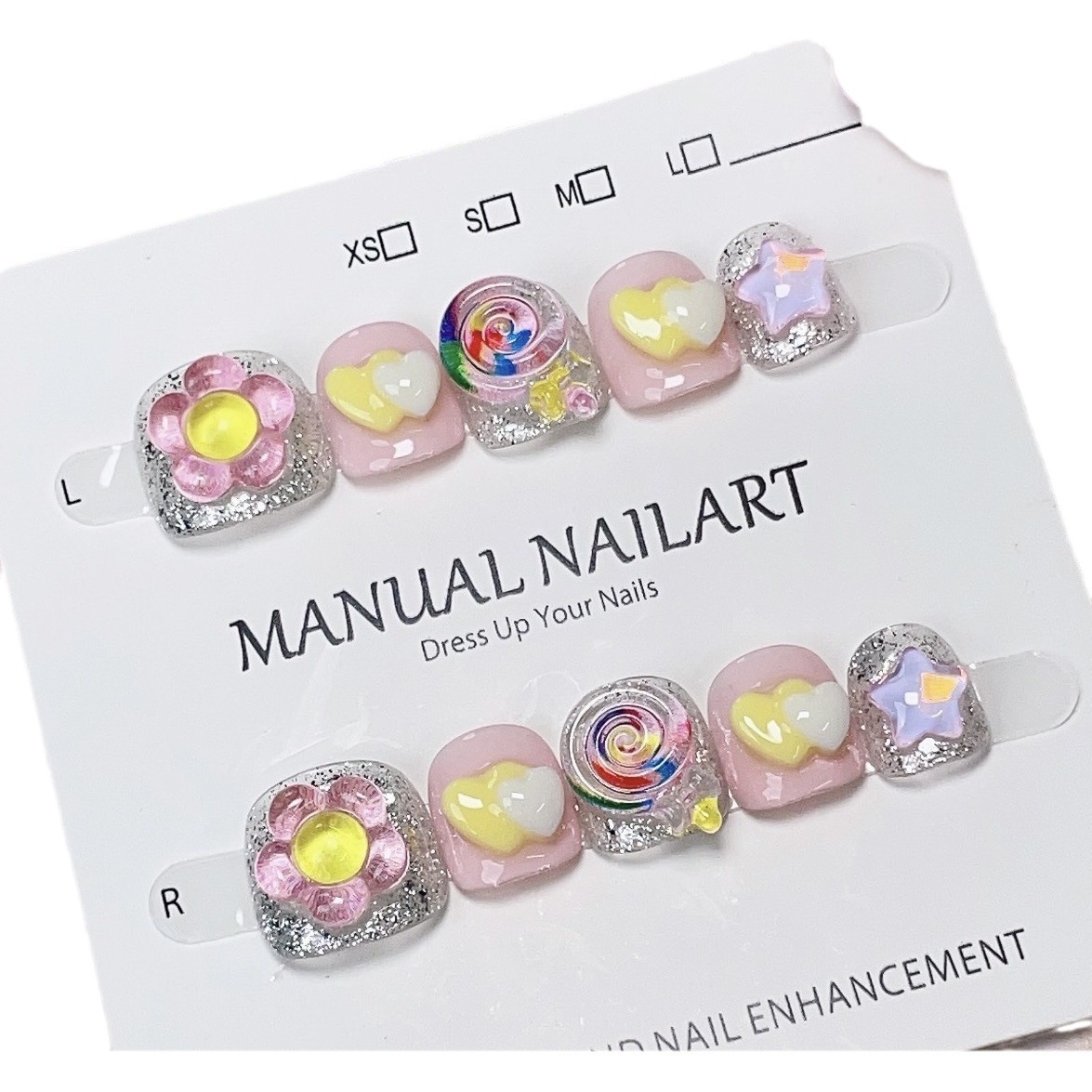 纯手工儿童专用穿戴甲无毒3-12岁女童小朋友短款可爱卡通美甲贴片