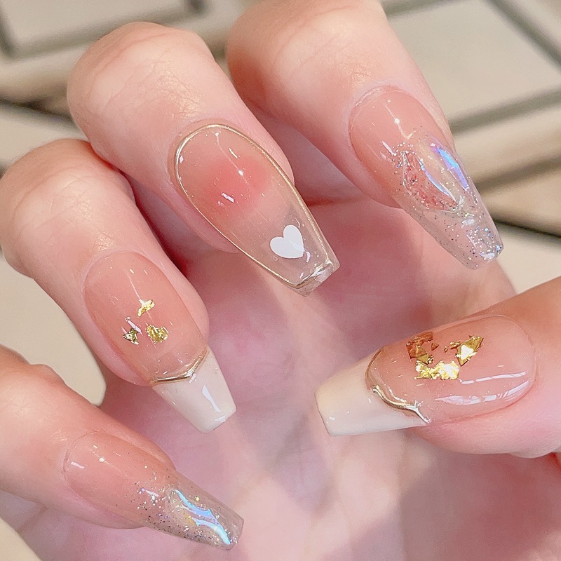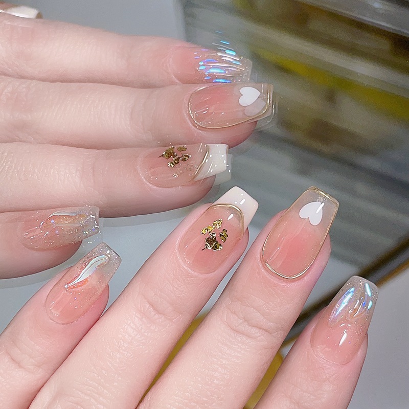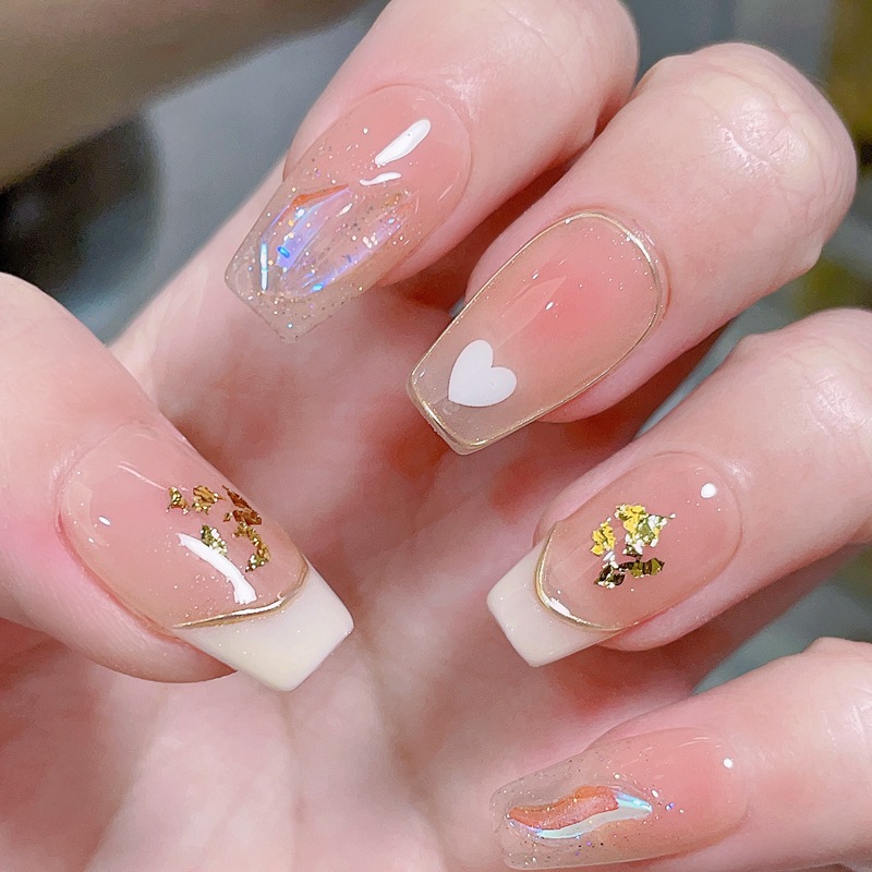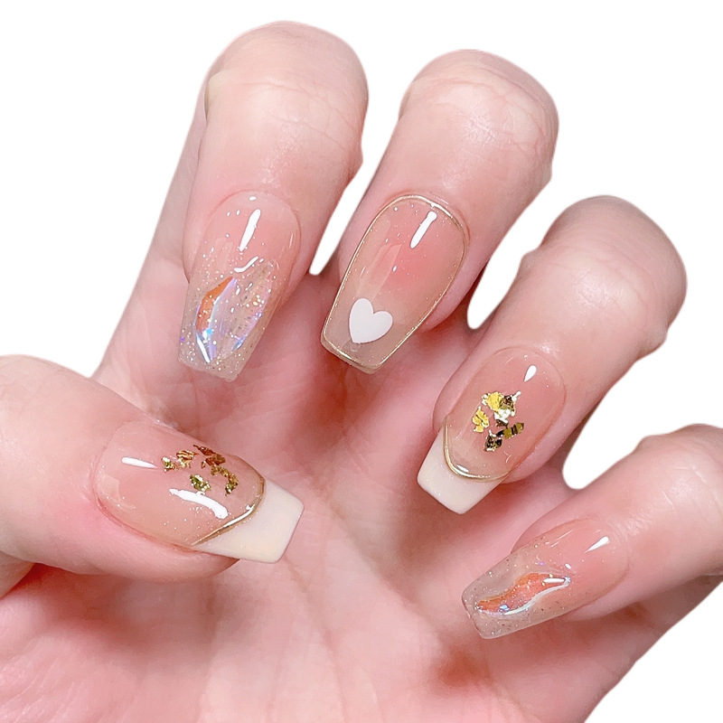 纯手工光疗美甲秋冬穿戴甲秋冬新款指甲贴法式云母片爱心轻奢短款