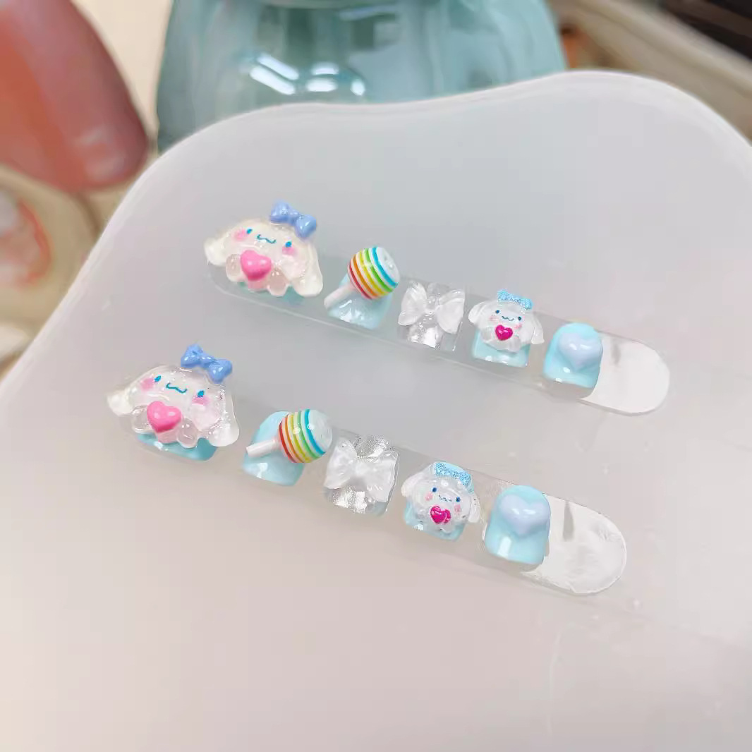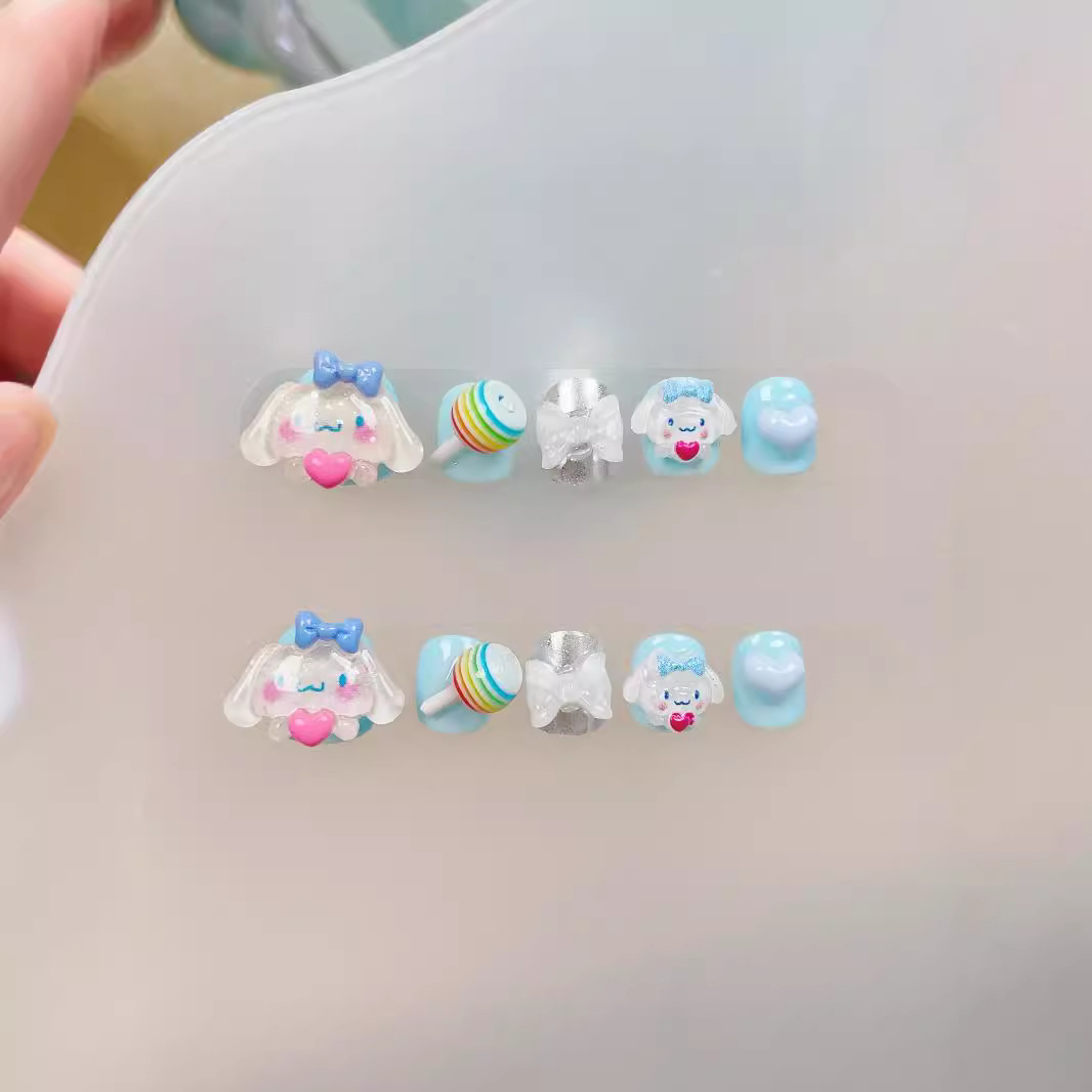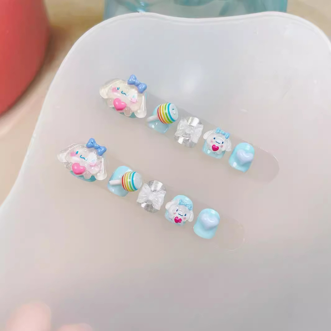 儿童款纯手工穿戴甲可爱卡通玉桂狗云朵萌趣日常蝴蝶无毒美甲贴片