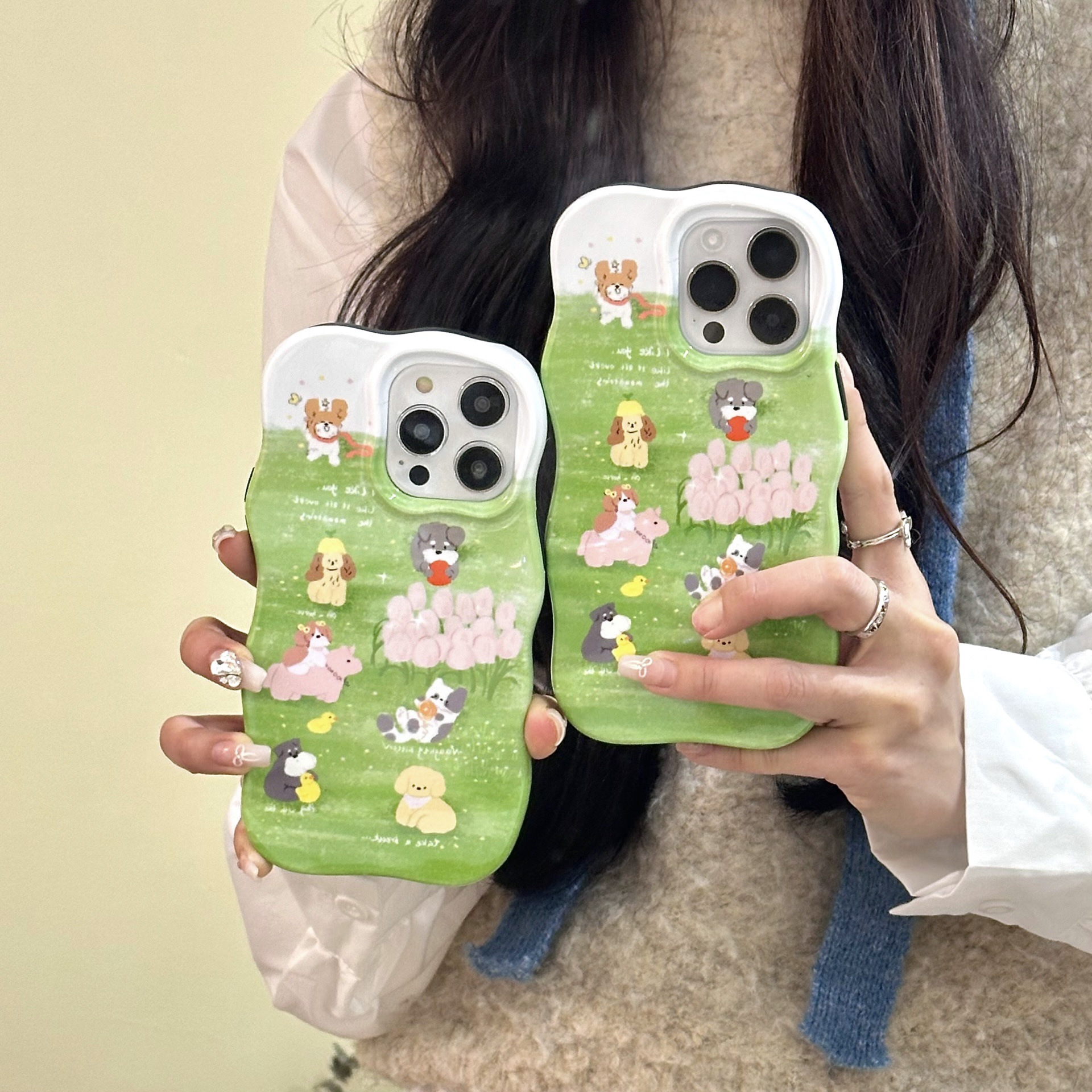 ins草地花朵狗狗适用15/14promax手机壳13pro防摔苹果12/11全包边