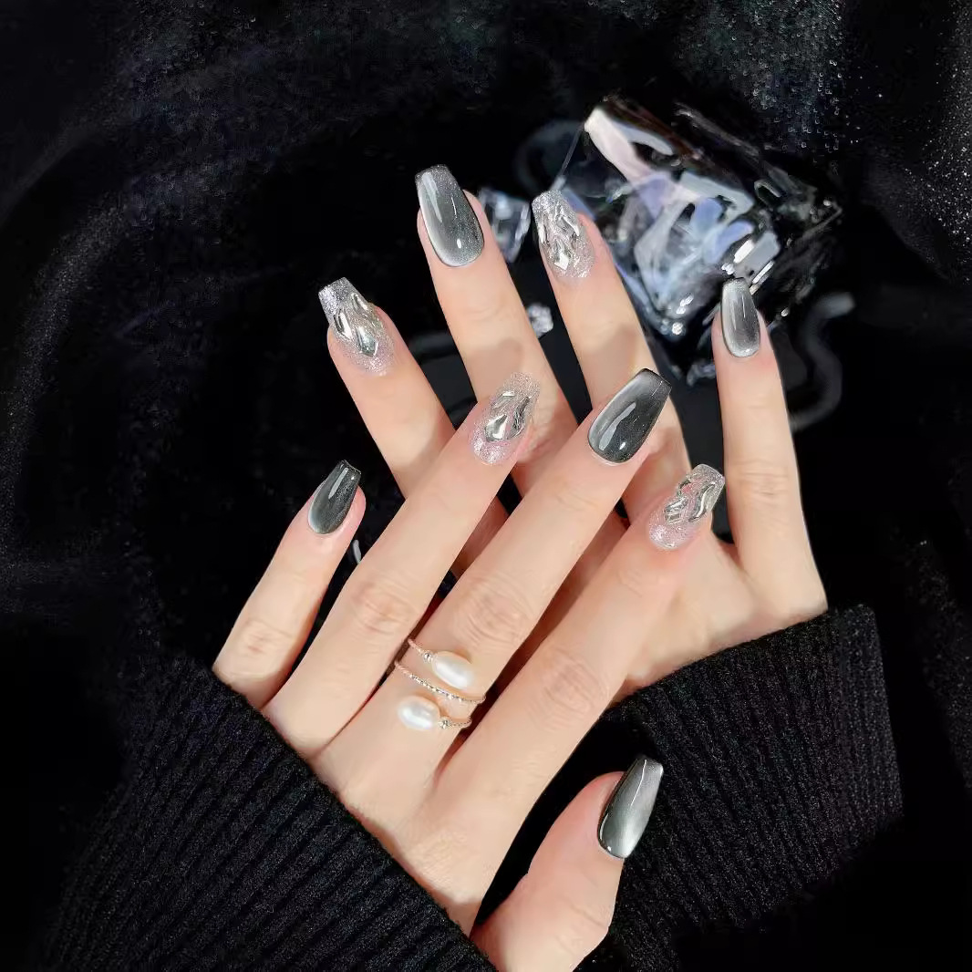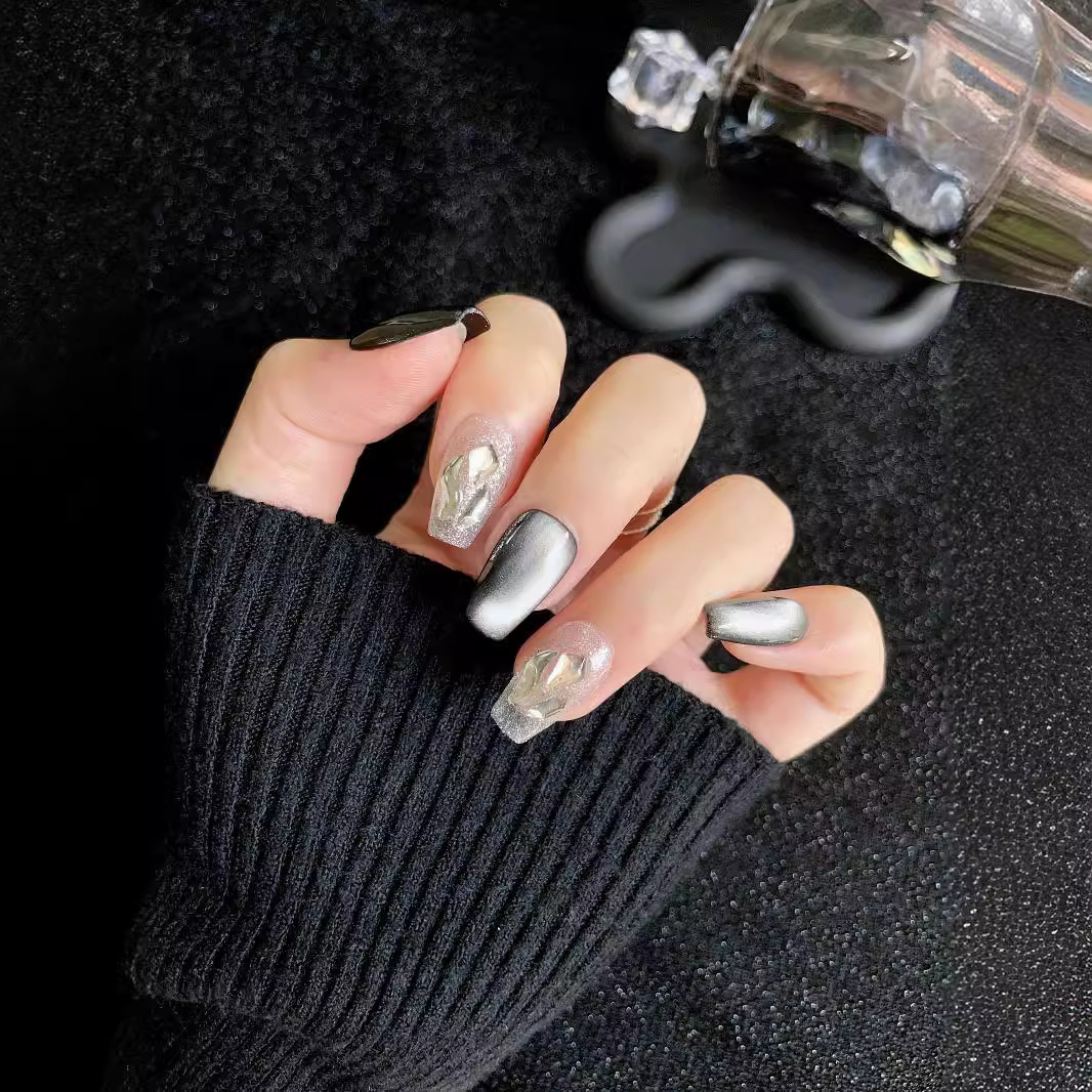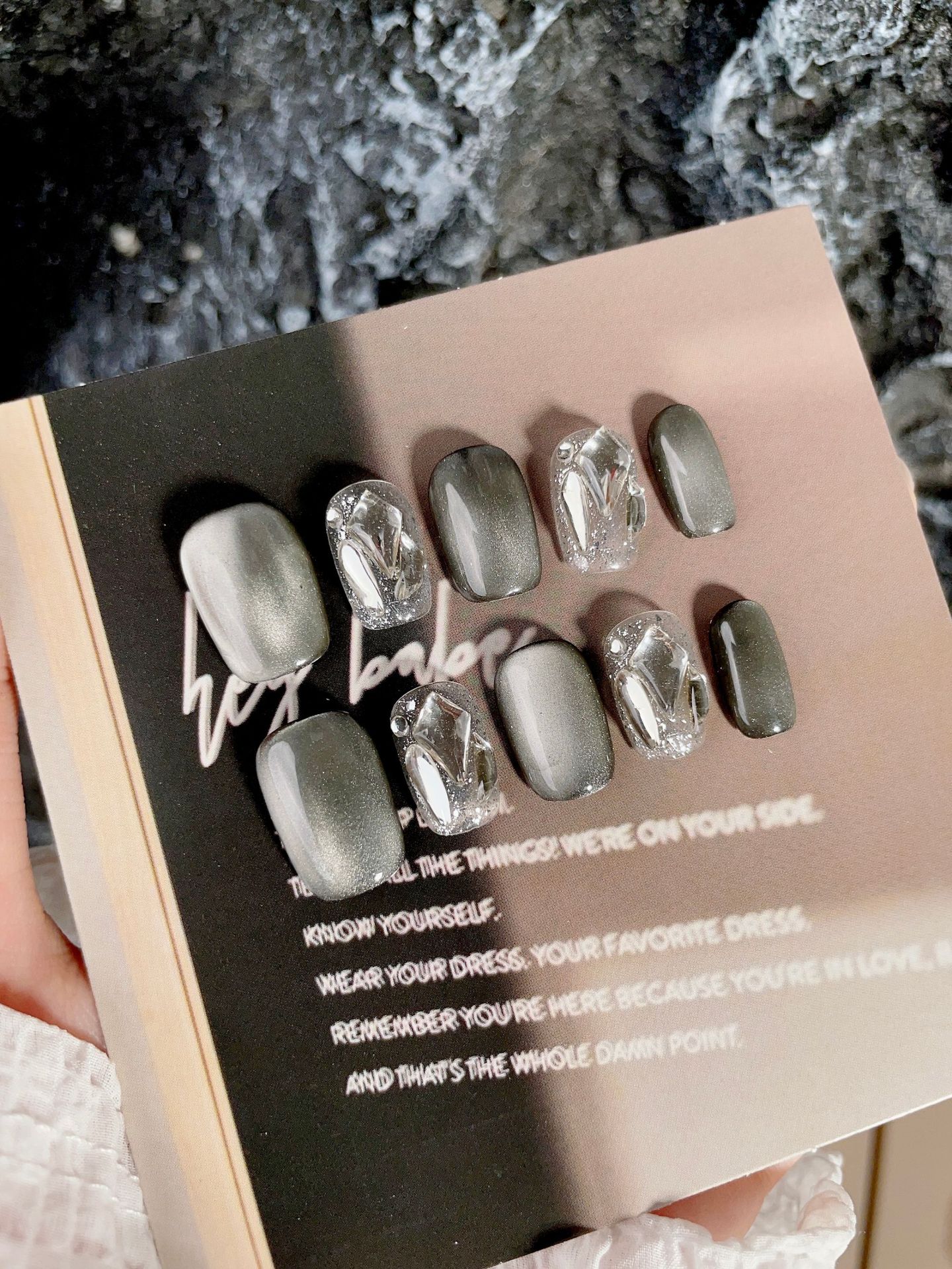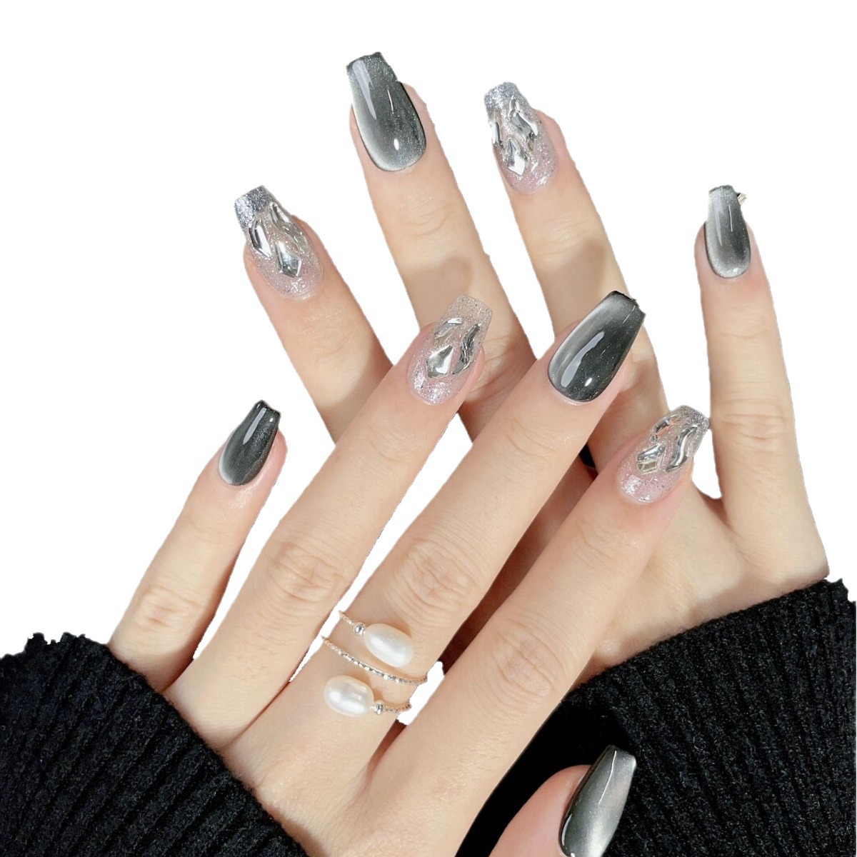 纯手工穿戴甲爆闪晶石猫眼光疗美甲贴片满钻假指甲可拆卸