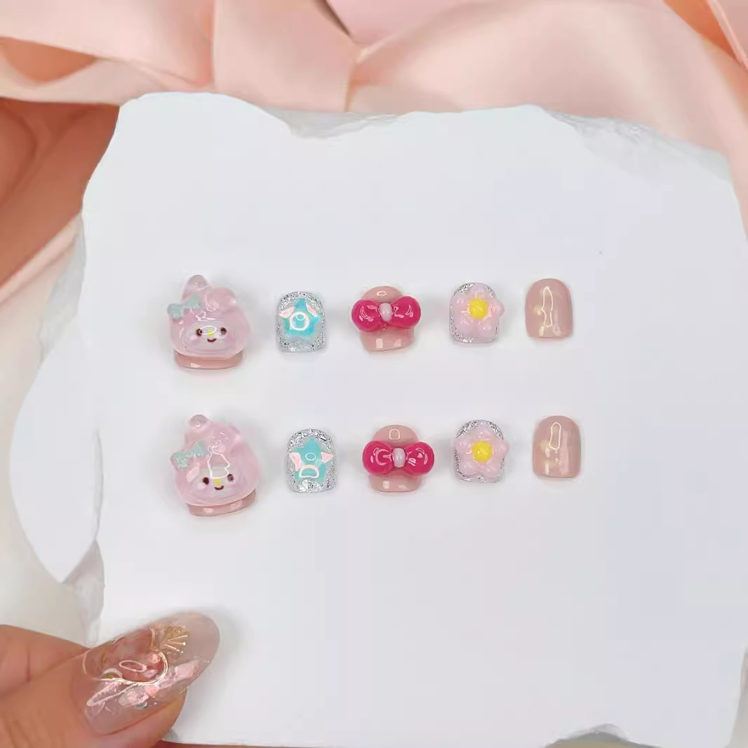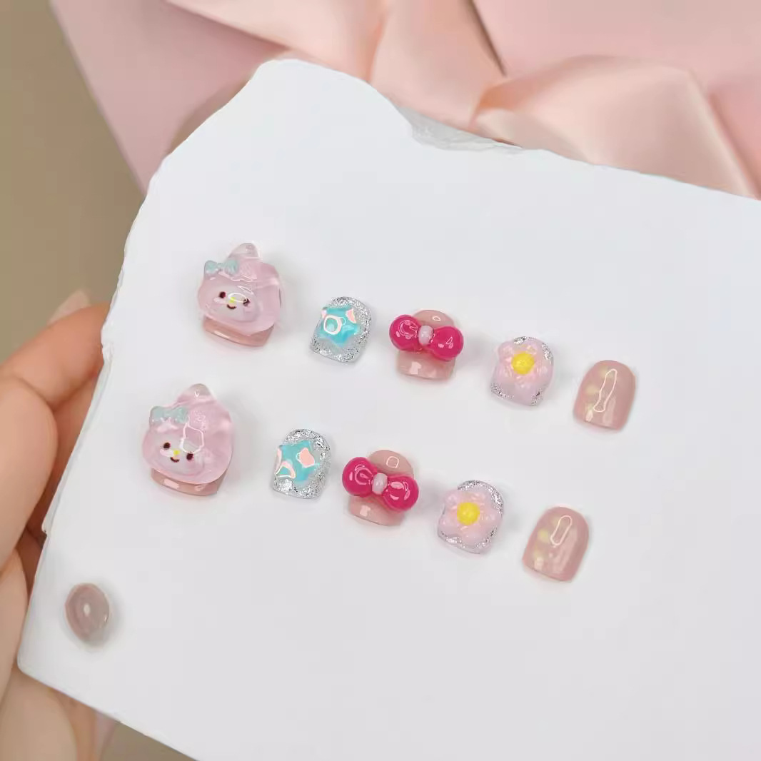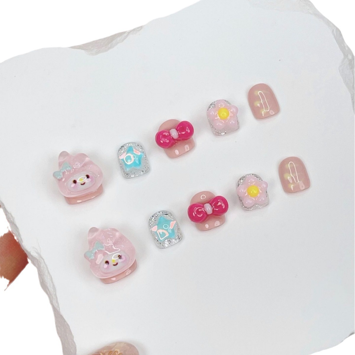 儿童款纯手工穿戴甲可爱卡通小朋友假指甲无毒不伤手美甲贴可拆卸