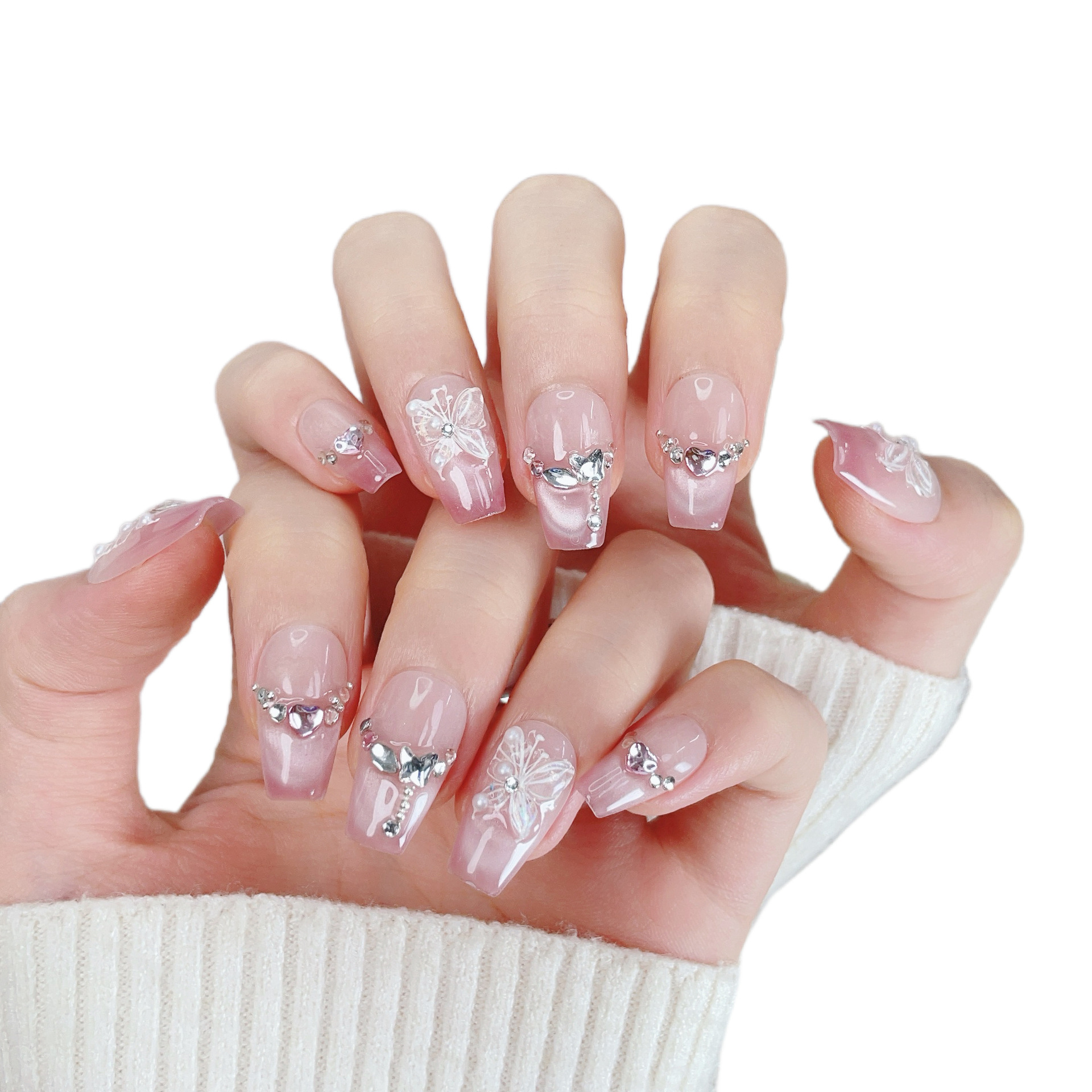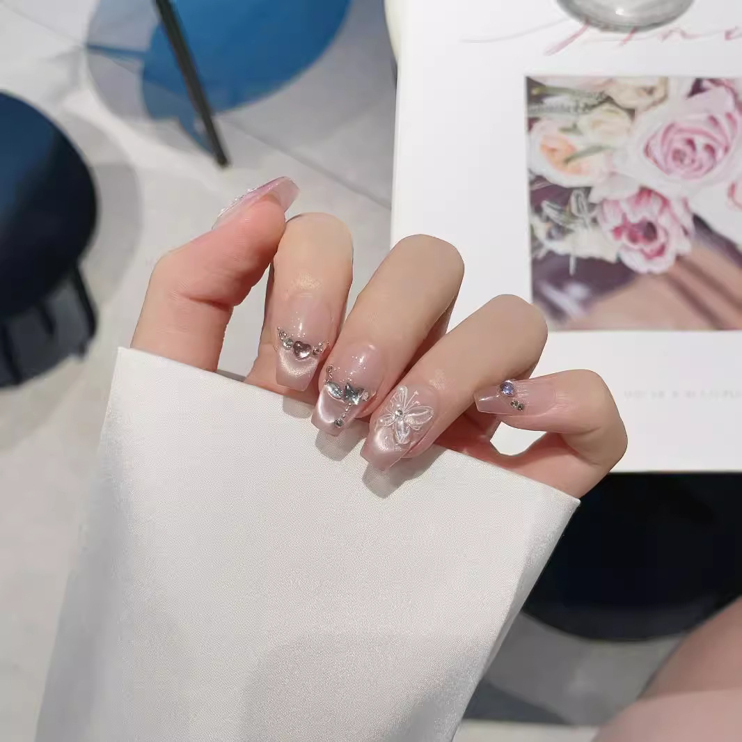 蝴蝶谷 猫眼锆石爆款穿戴式光疗美甲贴片纯手工穿戴甲手工美甲