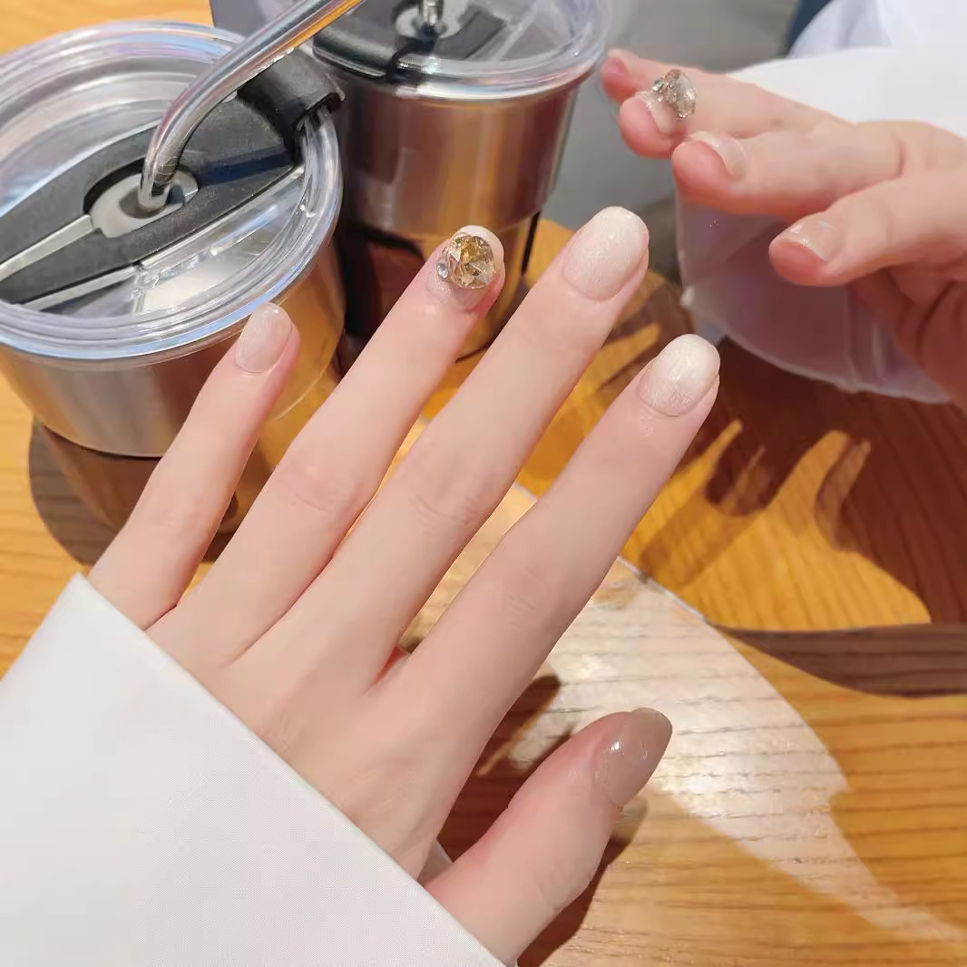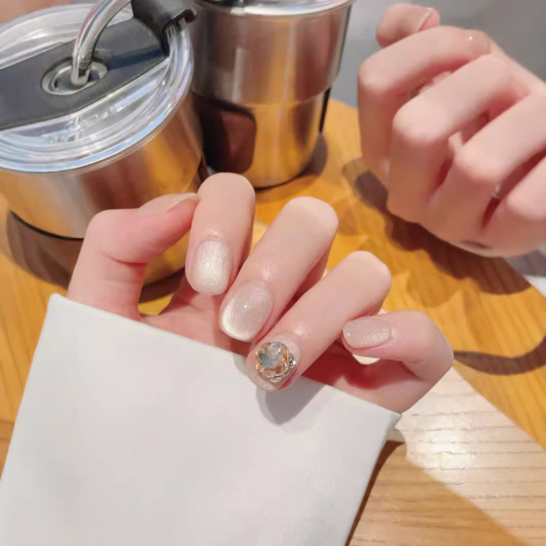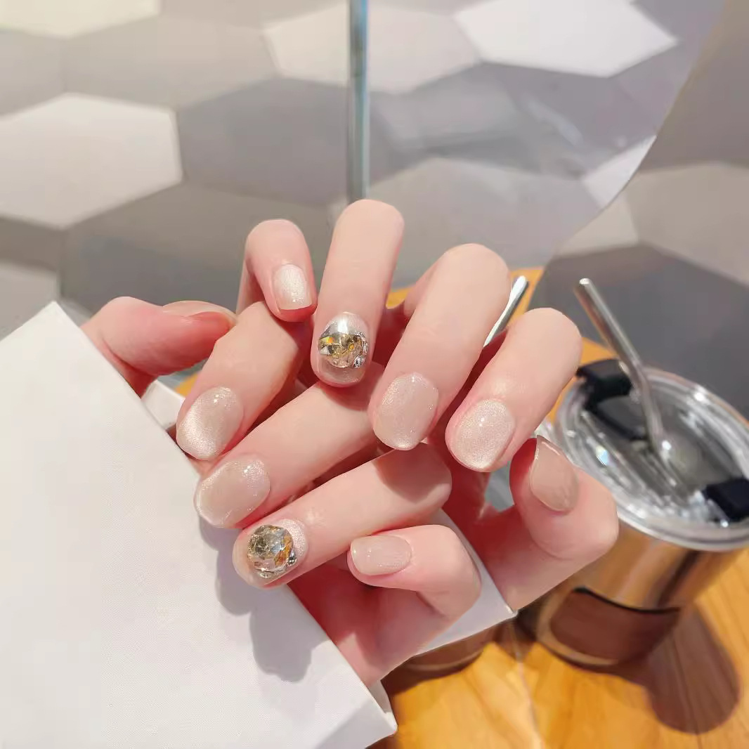 秋冬新款纯手工穿戴甲手绘渐变金猫眼高级感假指甲可拆卸