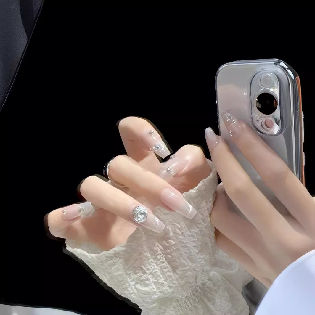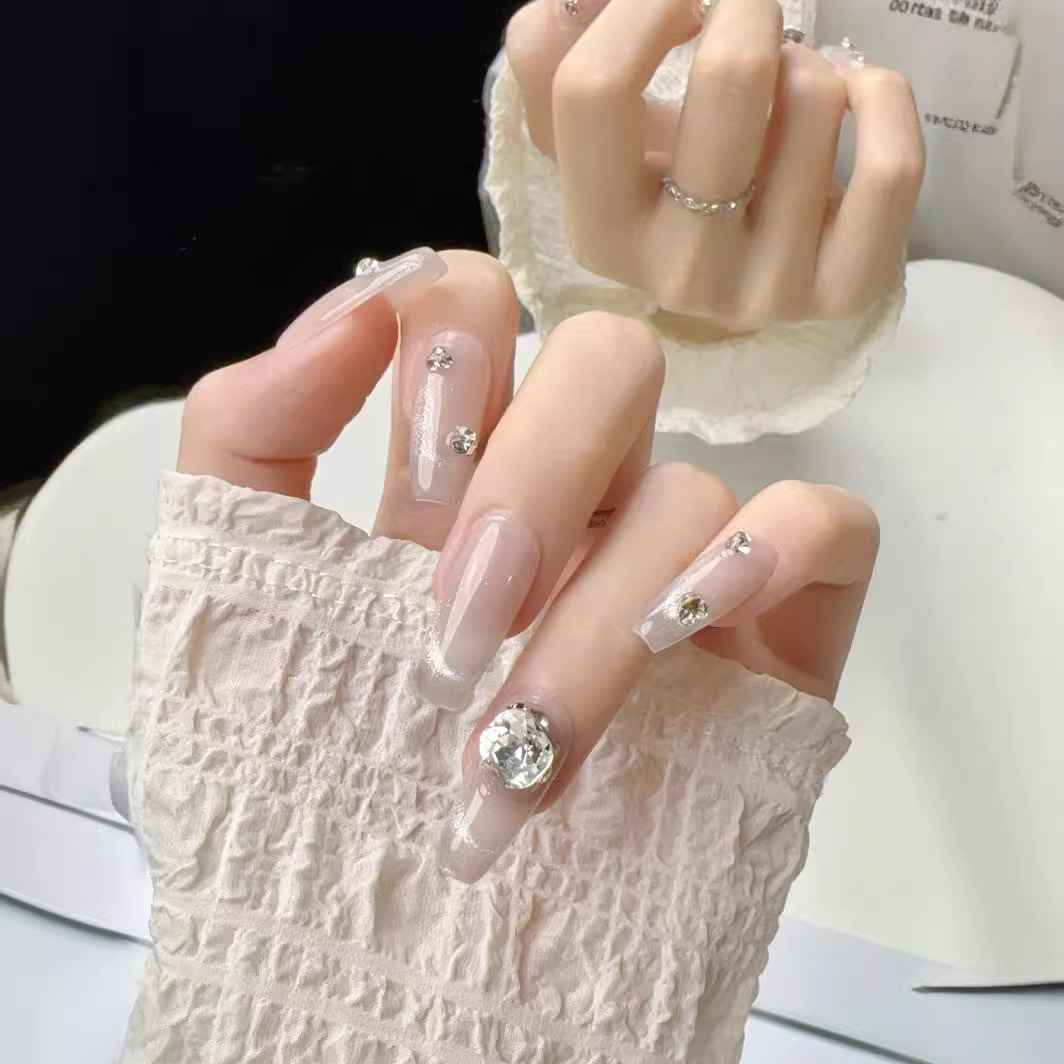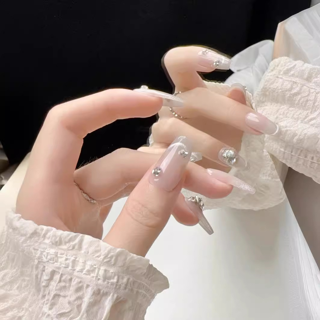 原创实拍纯手工穿戴甲光疗美甲贴片新款猫眼爆闪钻重工中长款甲片