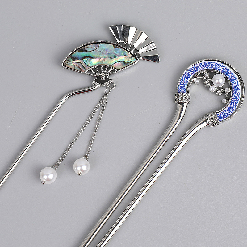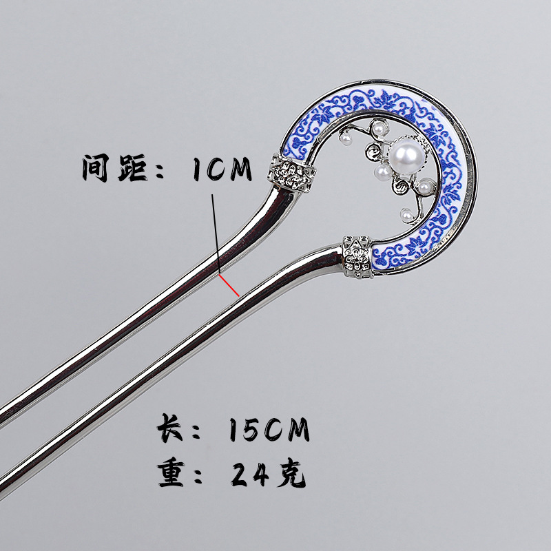 青花瓷古典u型发簪新中式国风盘发发插汉服头饰簪子高级感