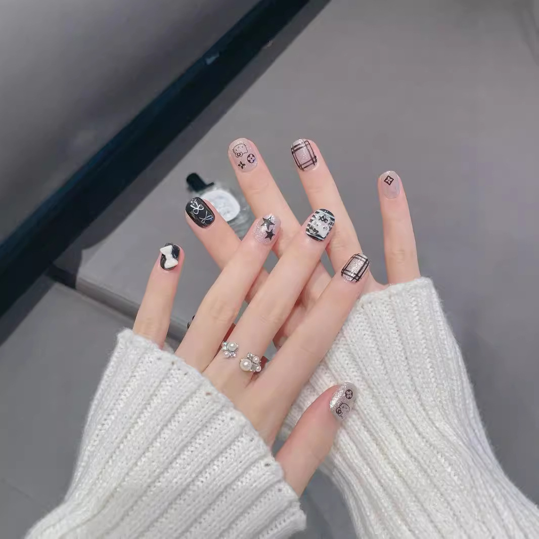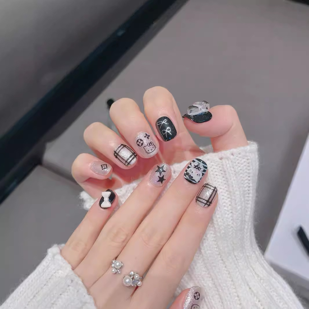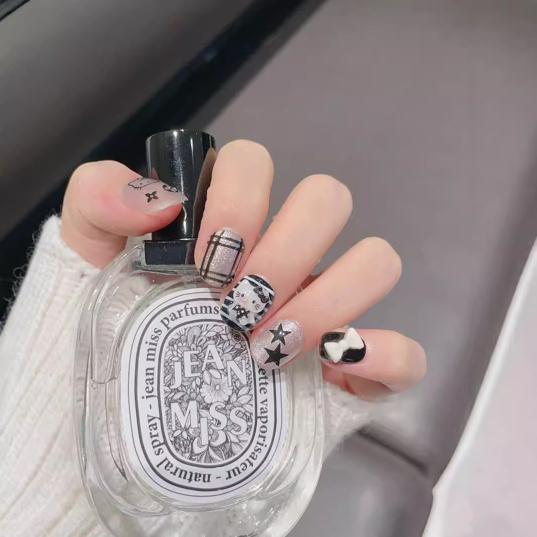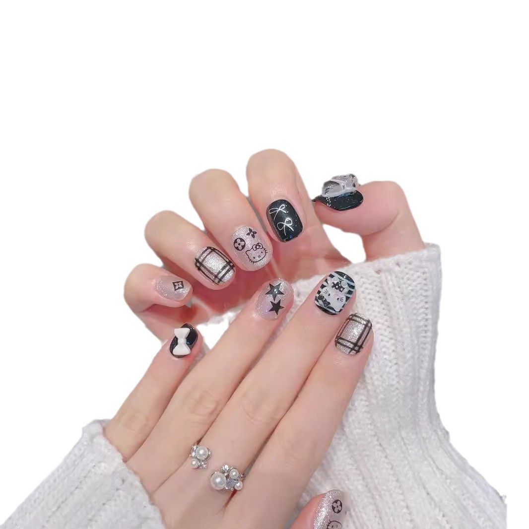 实拍穿戴甲手作ins风可爱暗黑系kitty猫星星灯泡猫眼纯手工穿戴甲