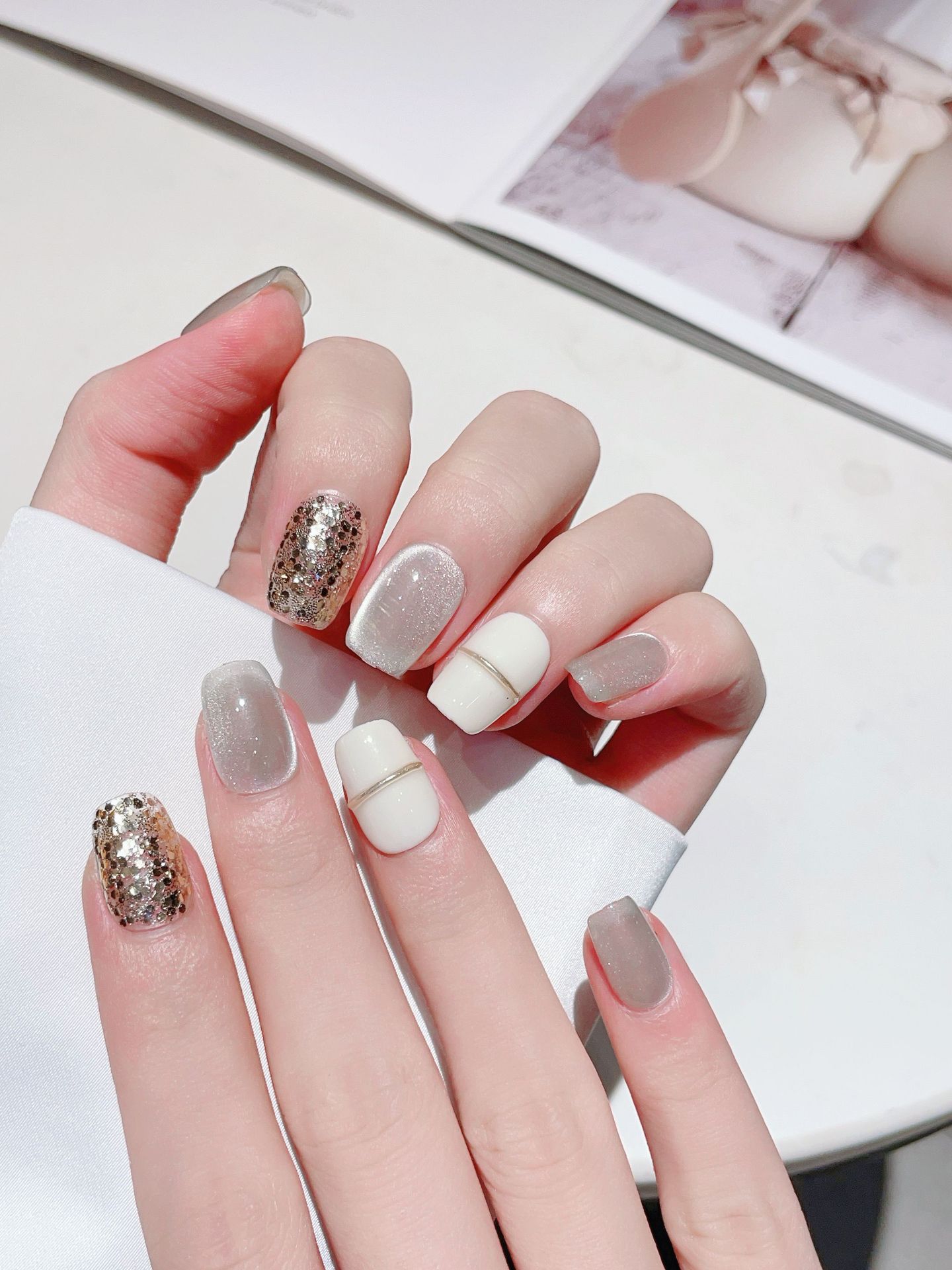 玻璃珠猫眼 简约百搭光疗美甲 纯手工穿戴甲显白甲片短款美甲