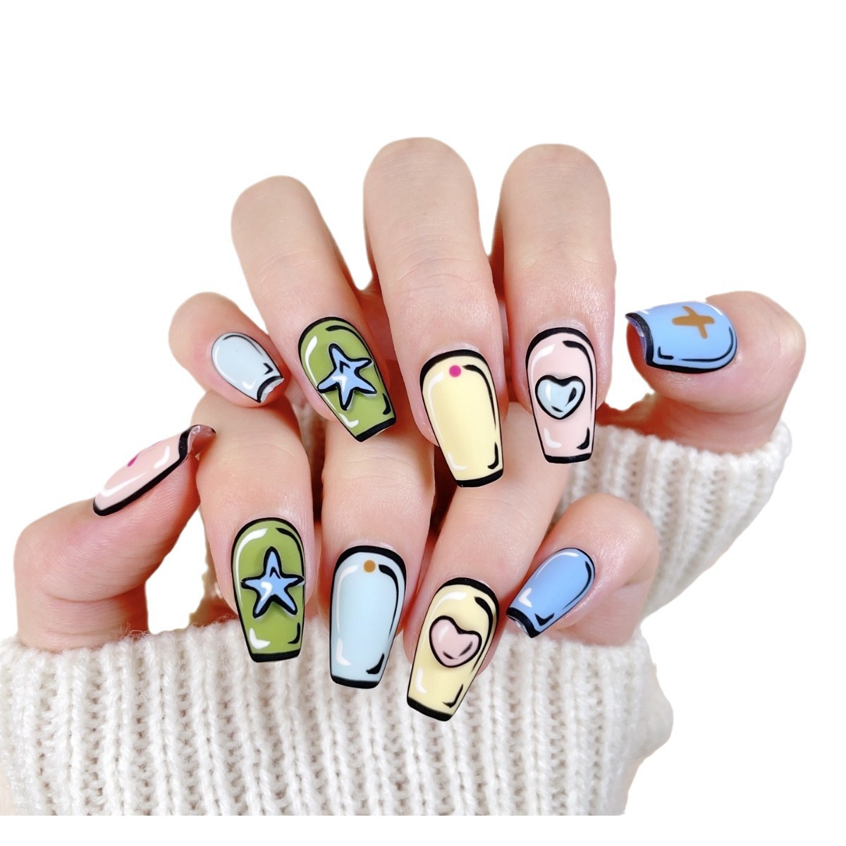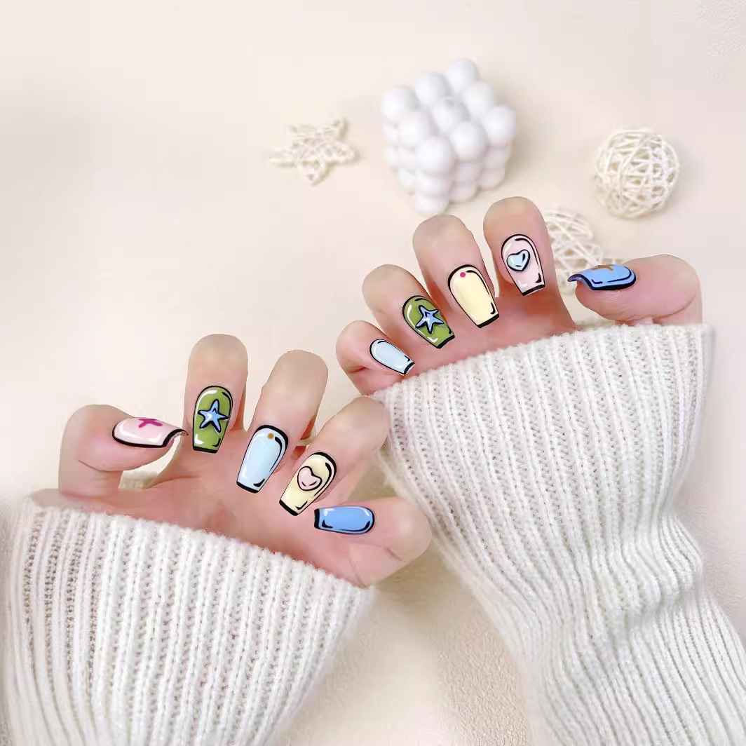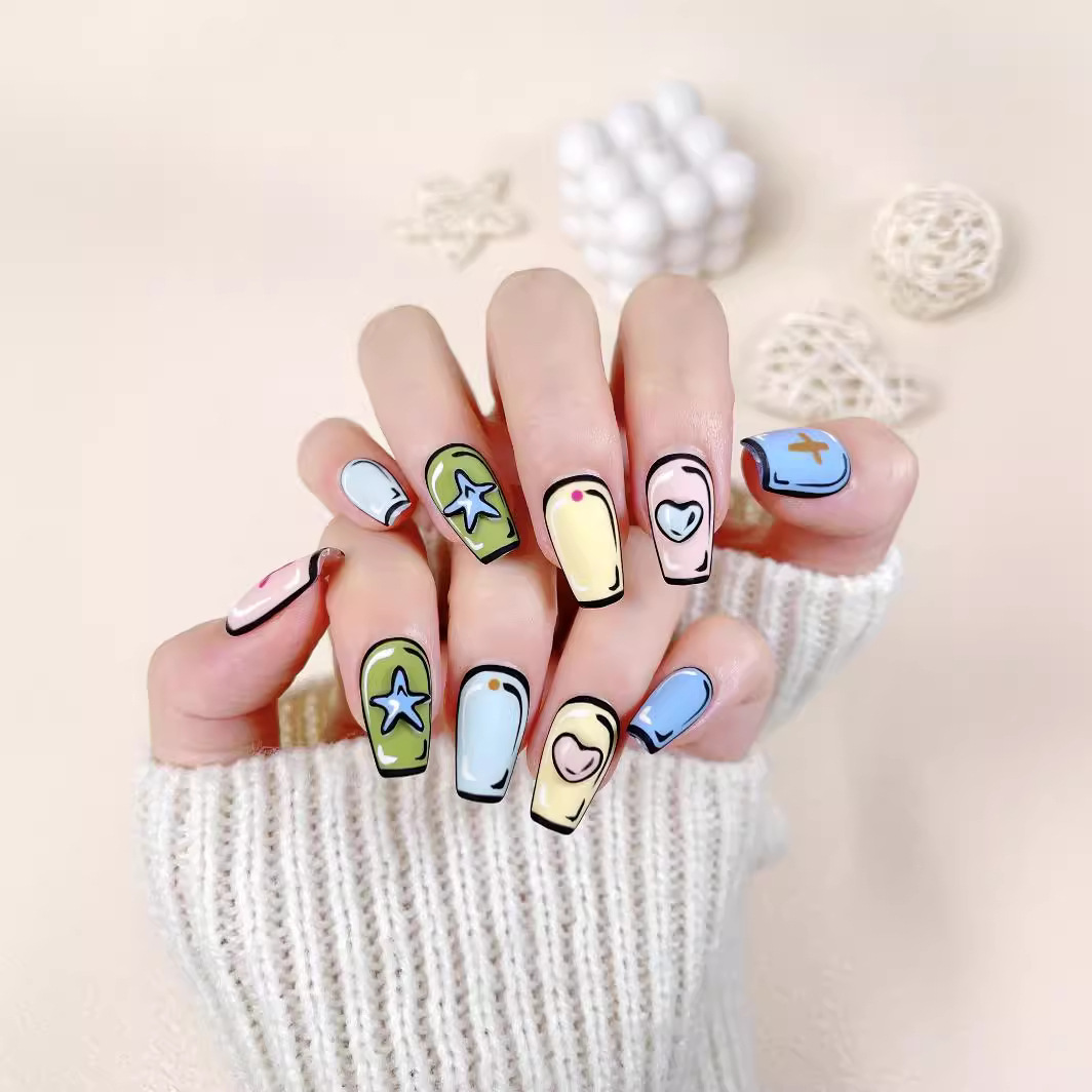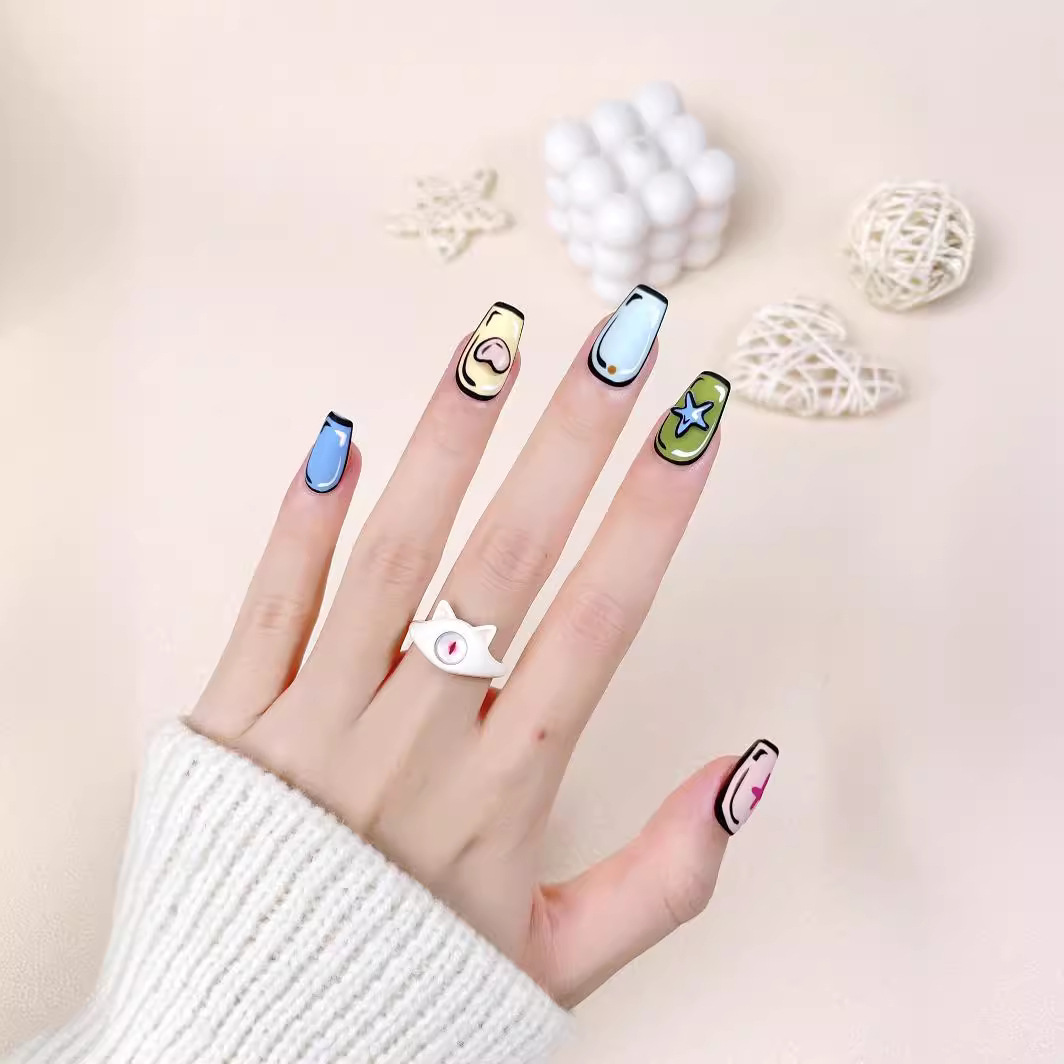 纯手工精品穿戴甲手绘卡通漫画风美甲贴片假指甲欧美