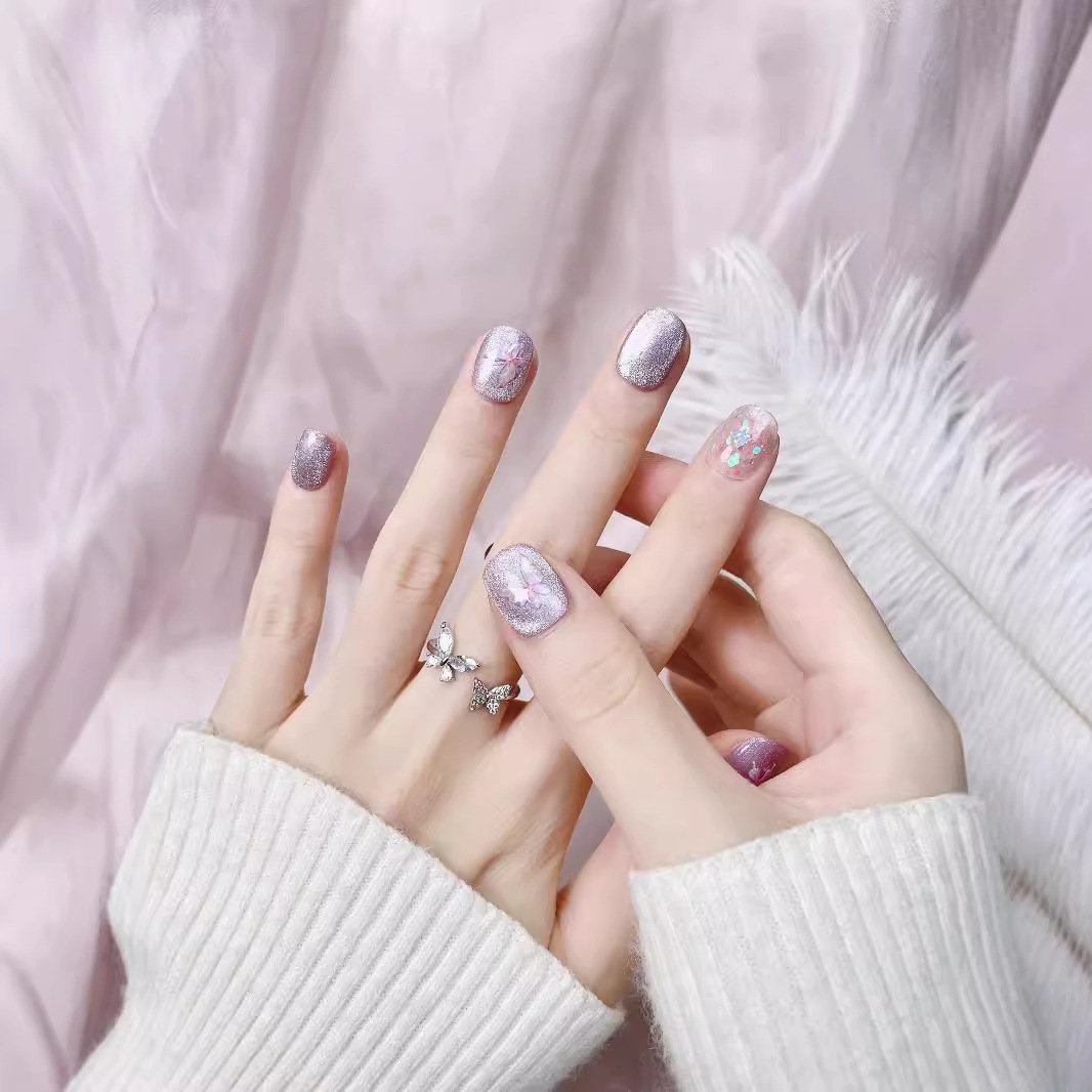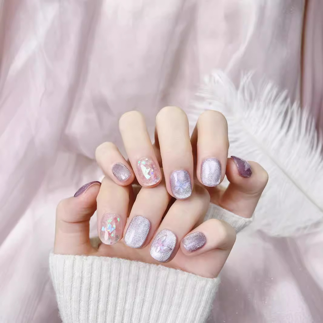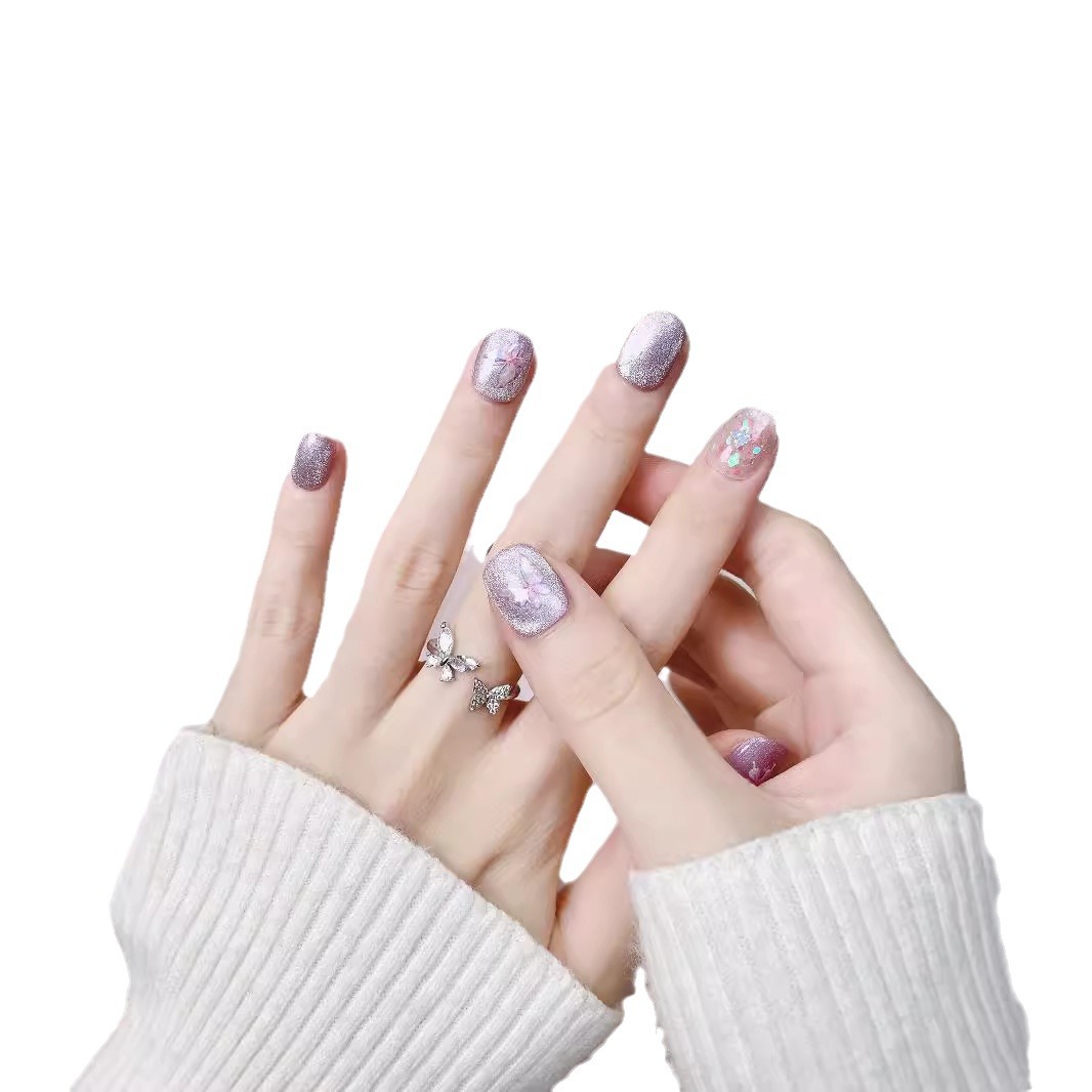 新款纯手工穿戴甲冰晶硬糖猫眼光疗美甲贴片假指甲可拆卸