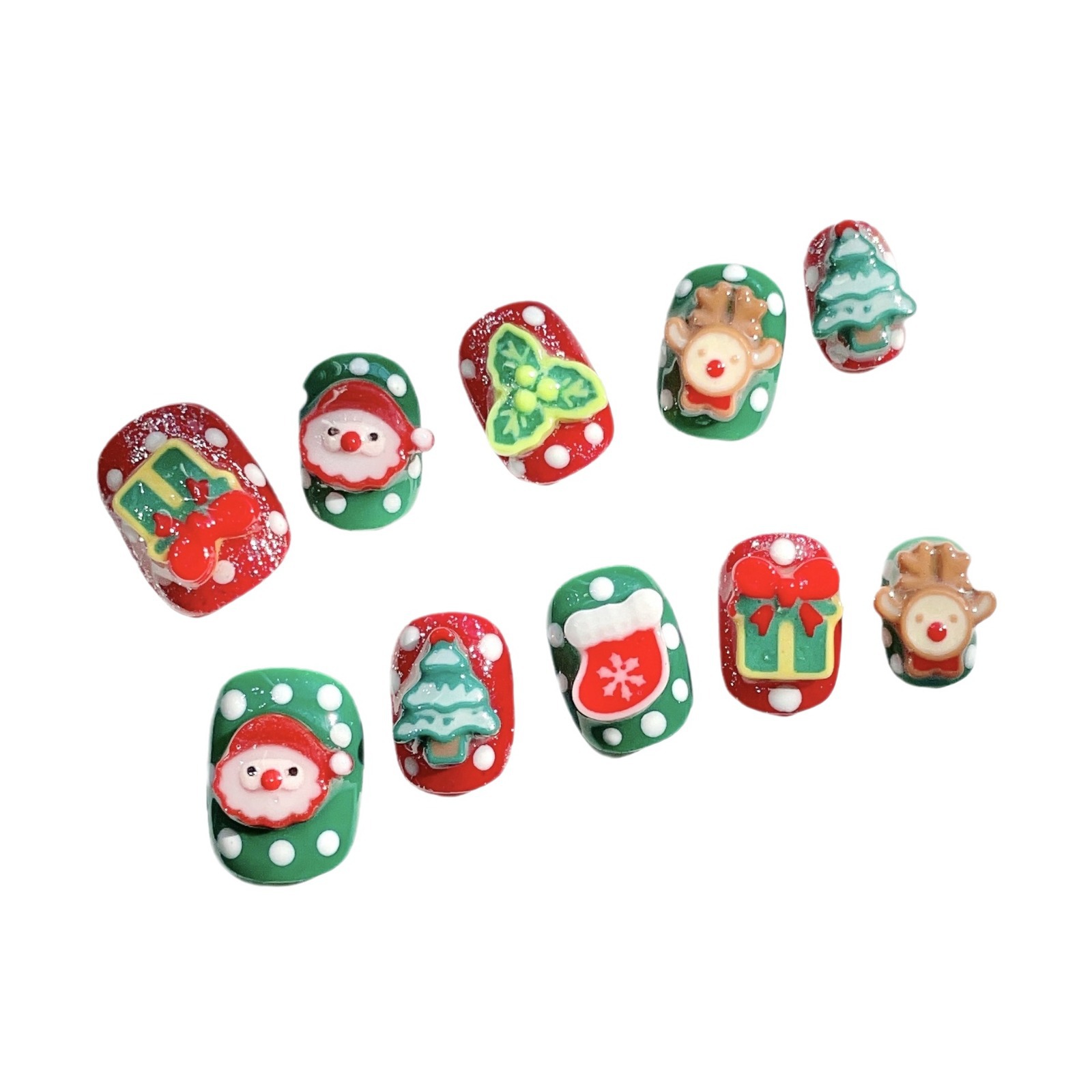 圣诞款穿戴甲片纯手工美甲秋冬新款卡通立体圣诞节圣诞老人圣诞树