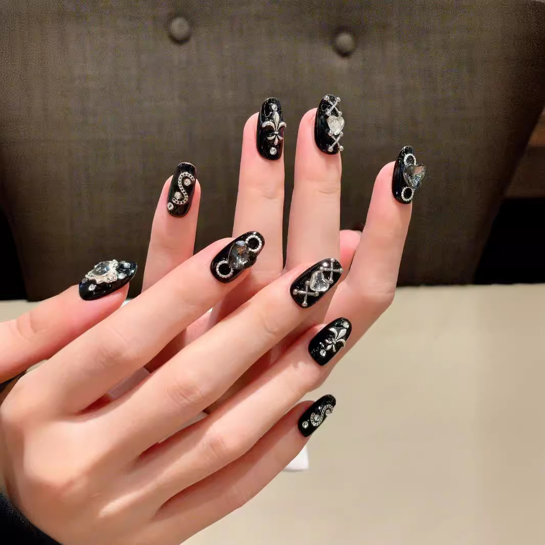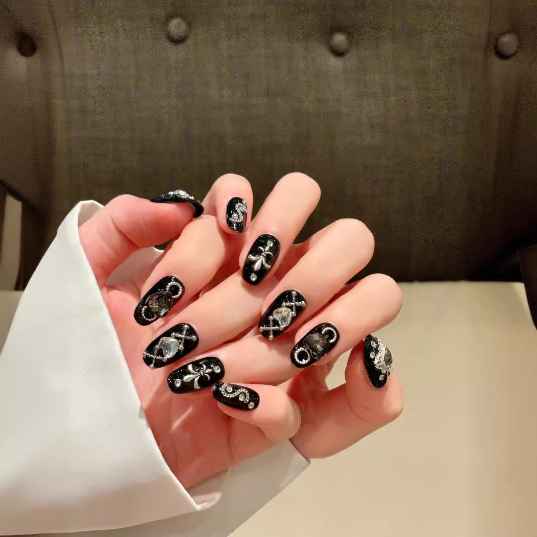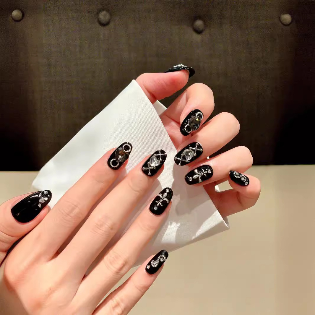 精品纯手工穿戴甲短款假指甲东海美甲贴片暗黑系钻可拆卸