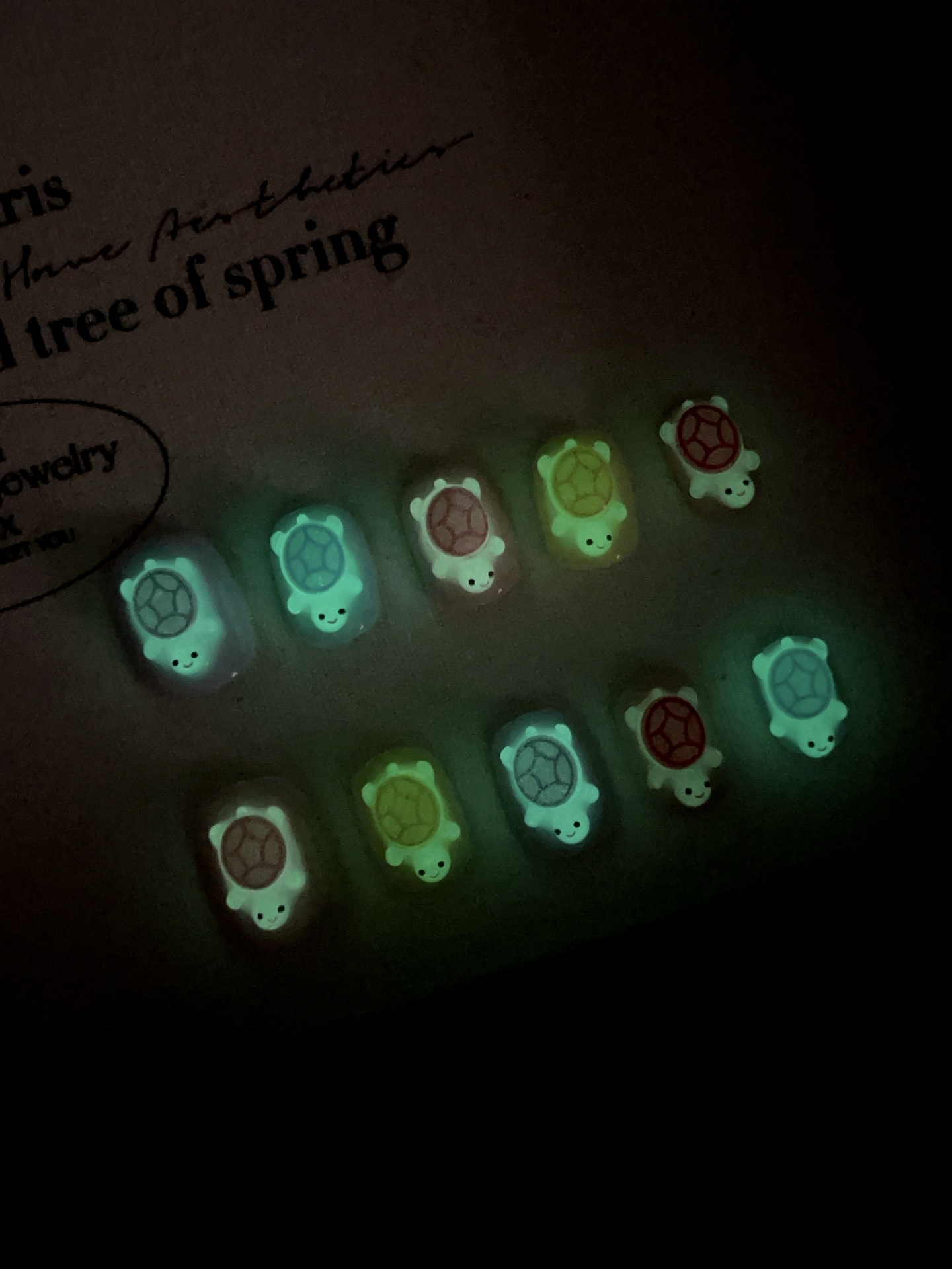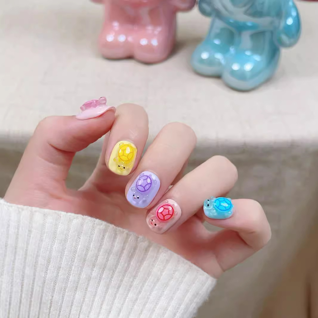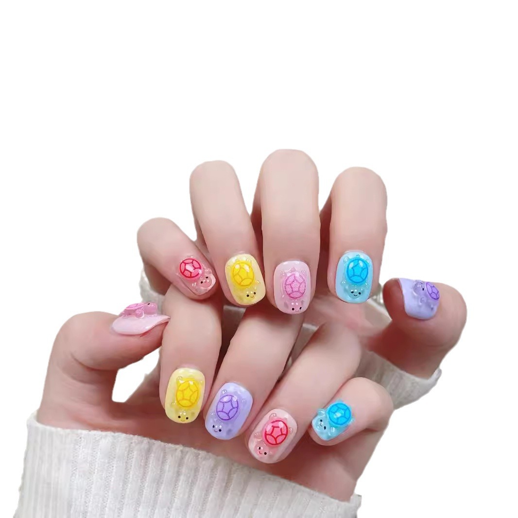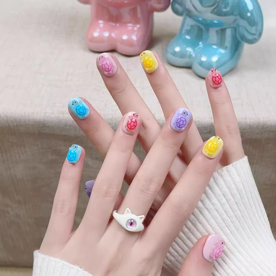 全红婵同款夜光彩色小乌龟对对碰纯手工穿戴甲抖音爆款美甲贴片